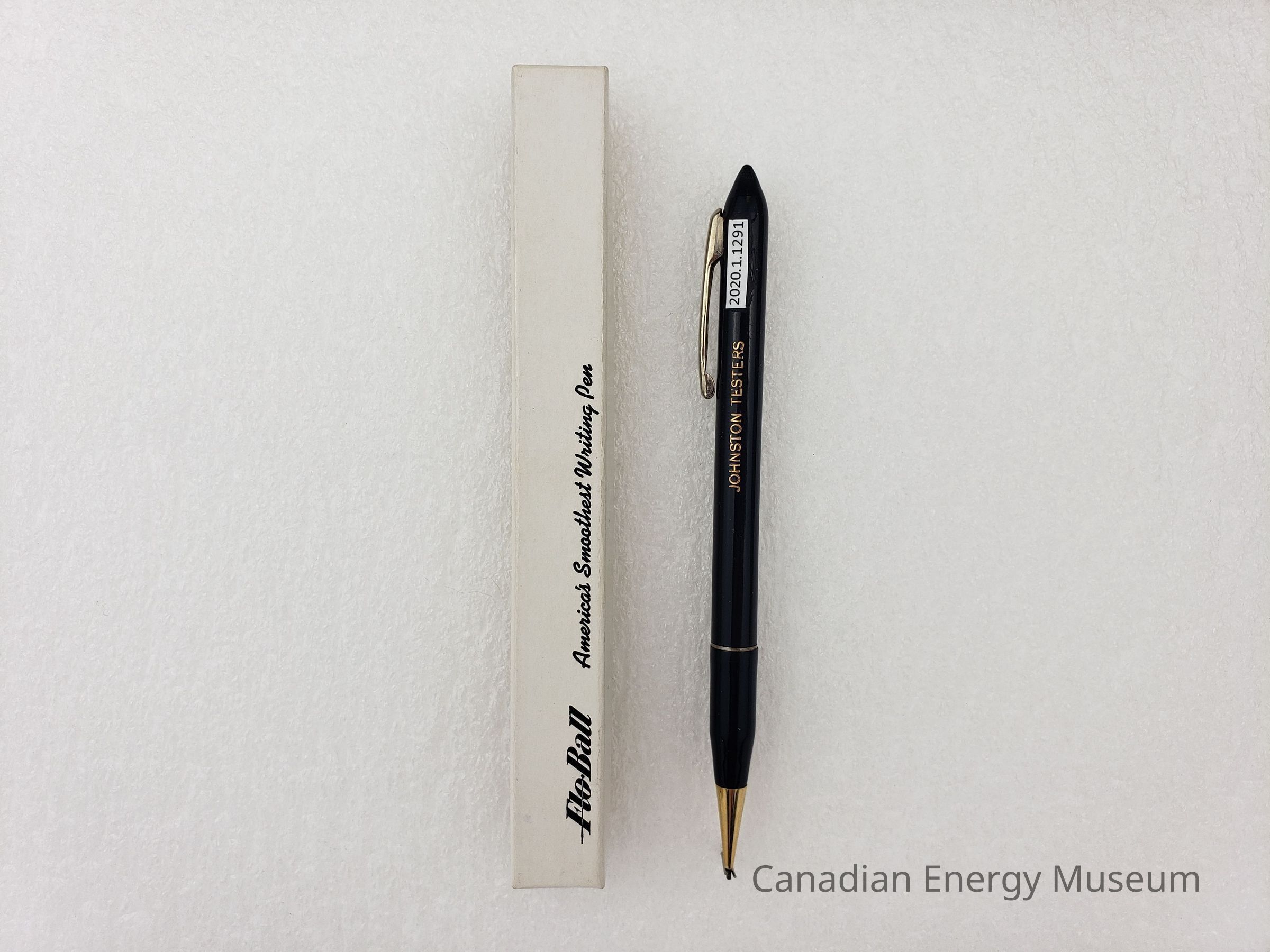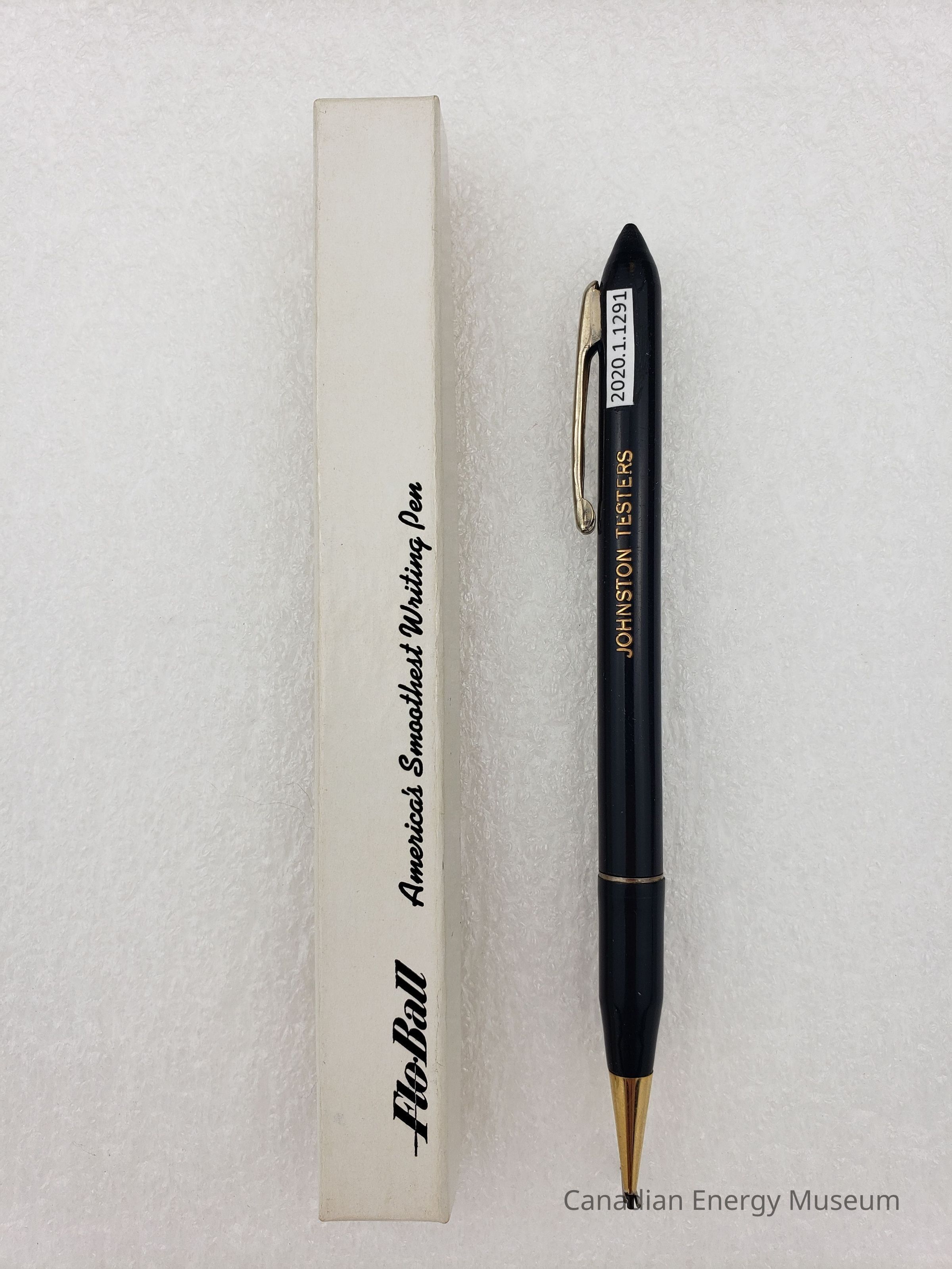 A ballpoint pen, branded to Johnston Tester Ltd.