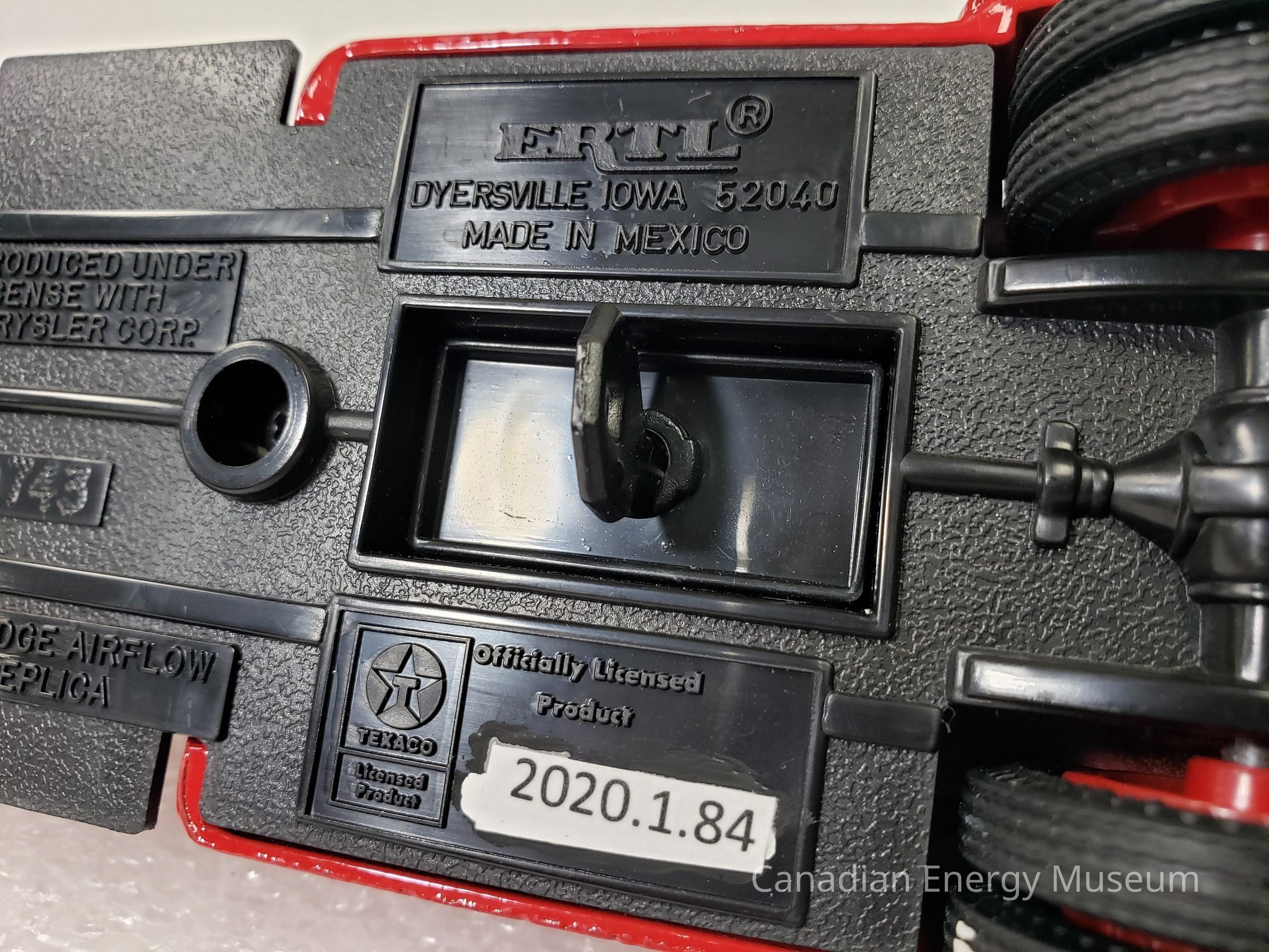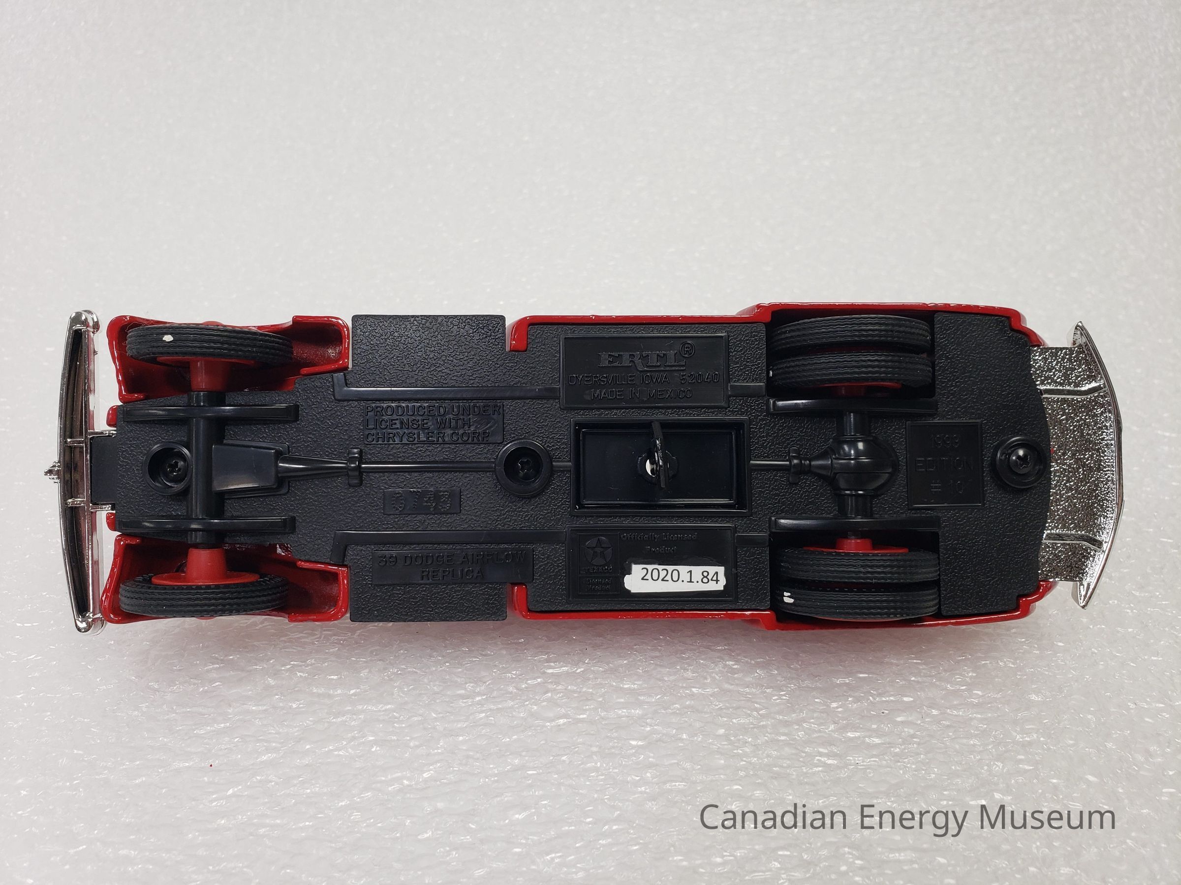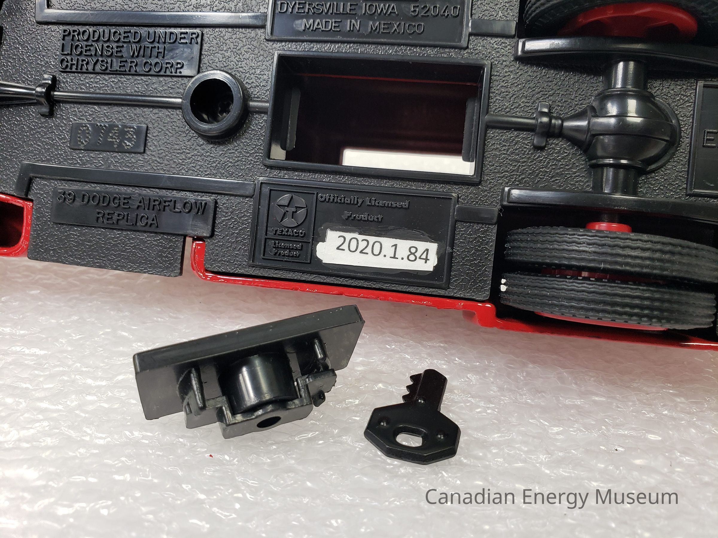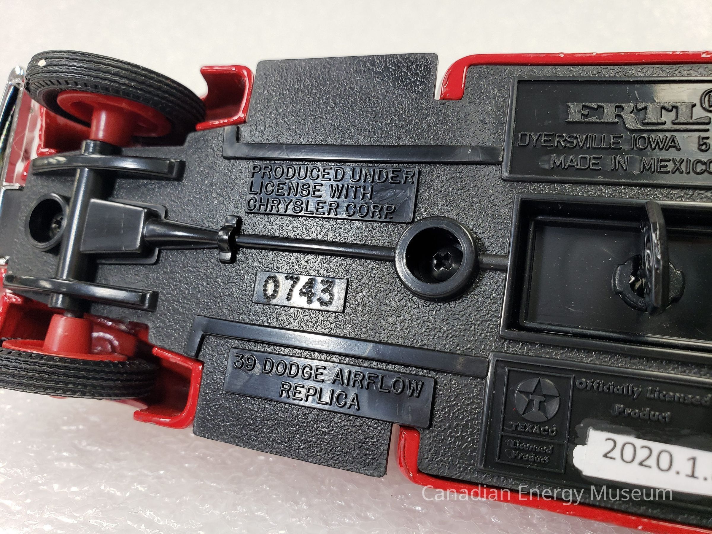 This particular model is a replica of a 1939 Dodge Airflow, which is one of the vehicles used by Texaco Jobbers (the middleman between the company that refines the petroleum products and buyers and retailers) and other distributors when delivering products in the late-1930s and 1940s.