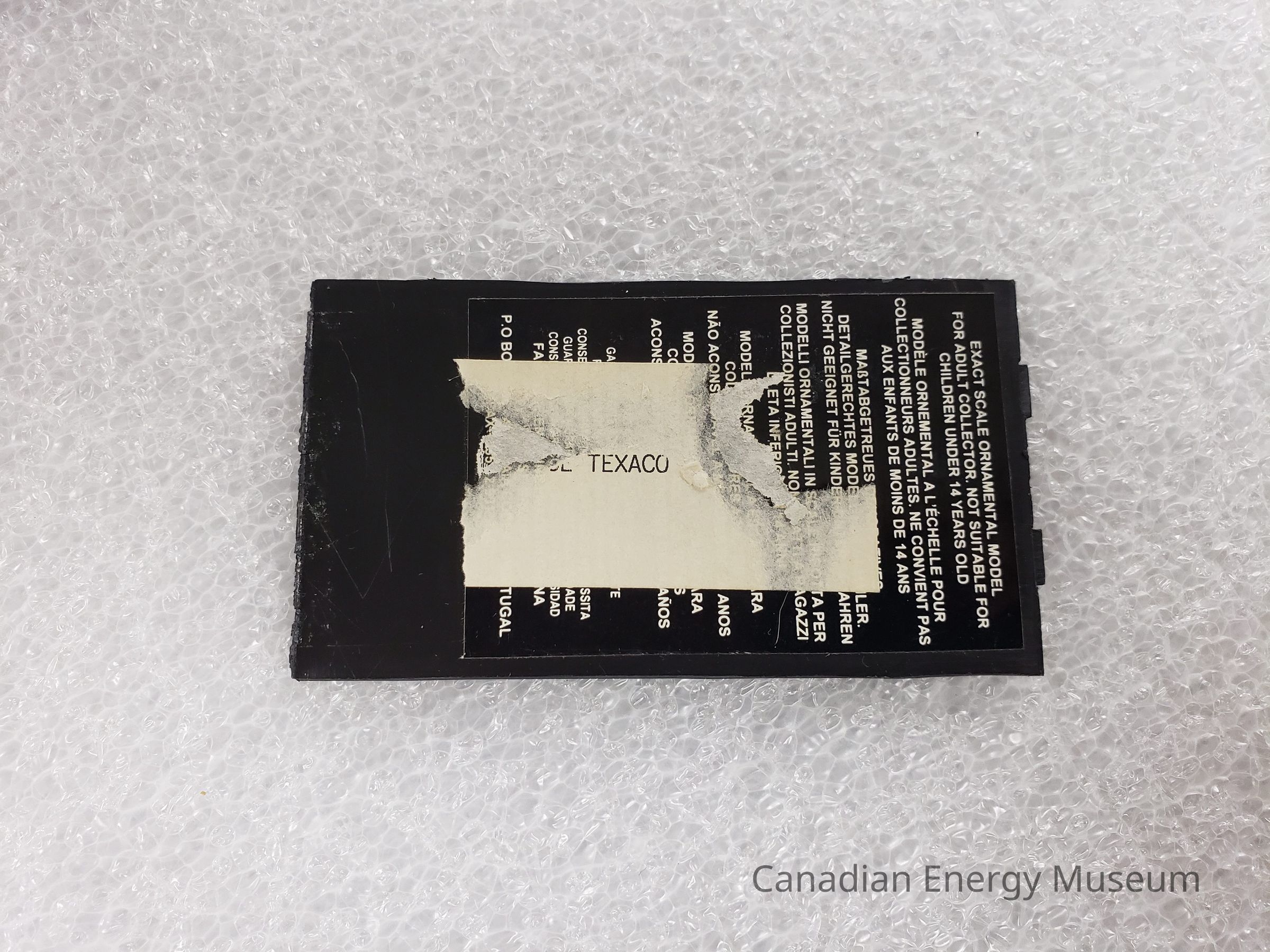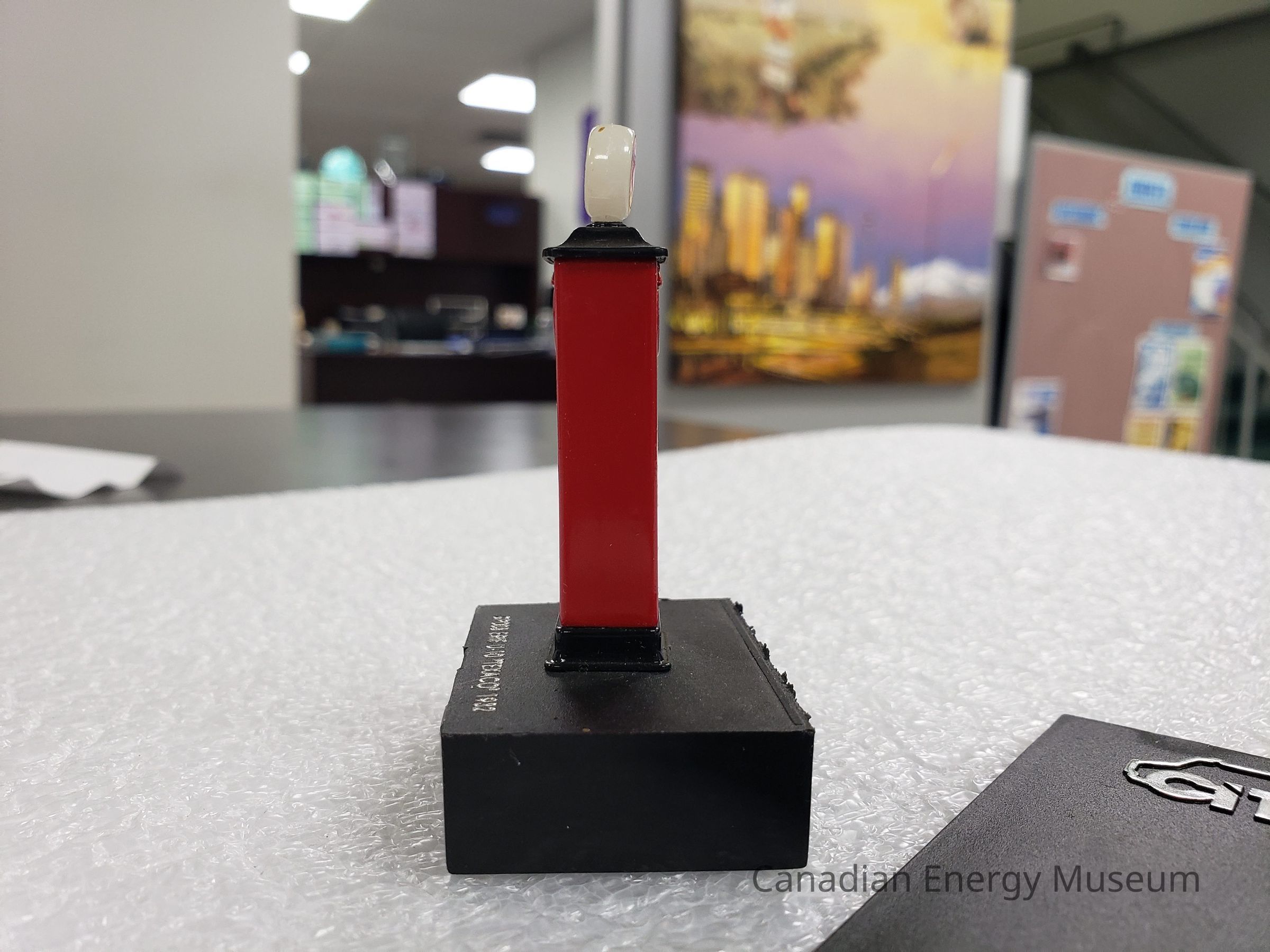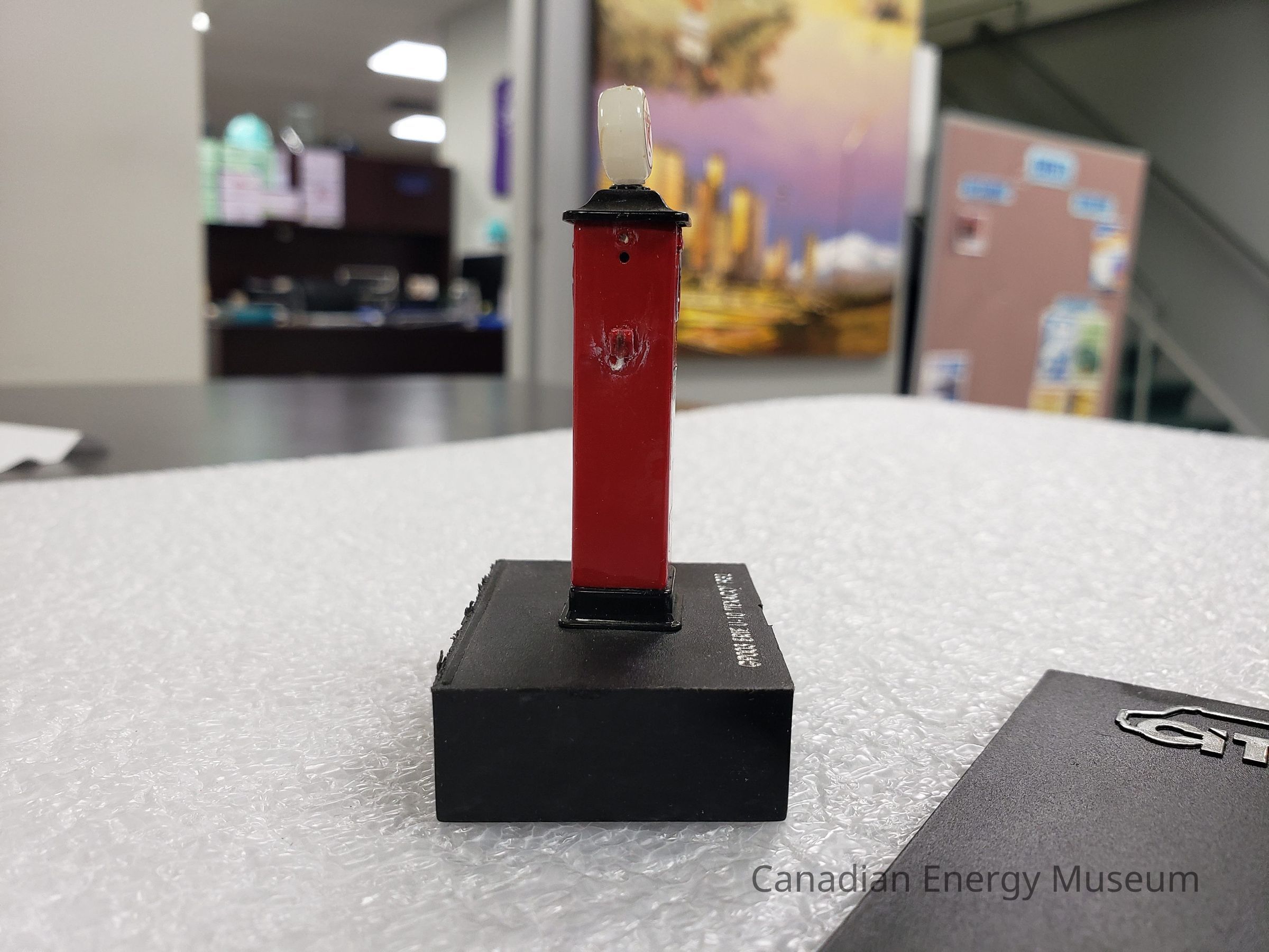 A broken scale model of a Texaco gas pump.
