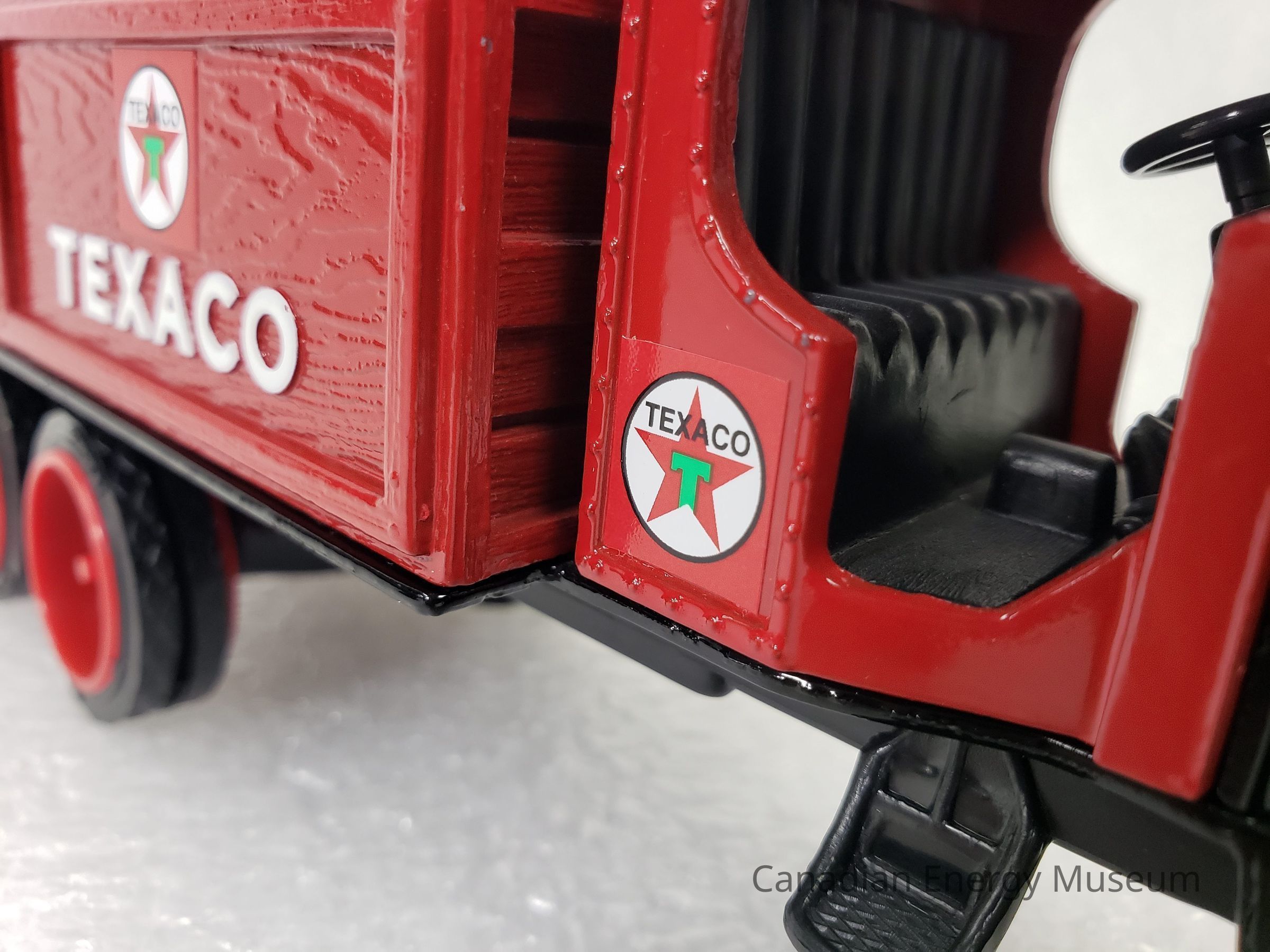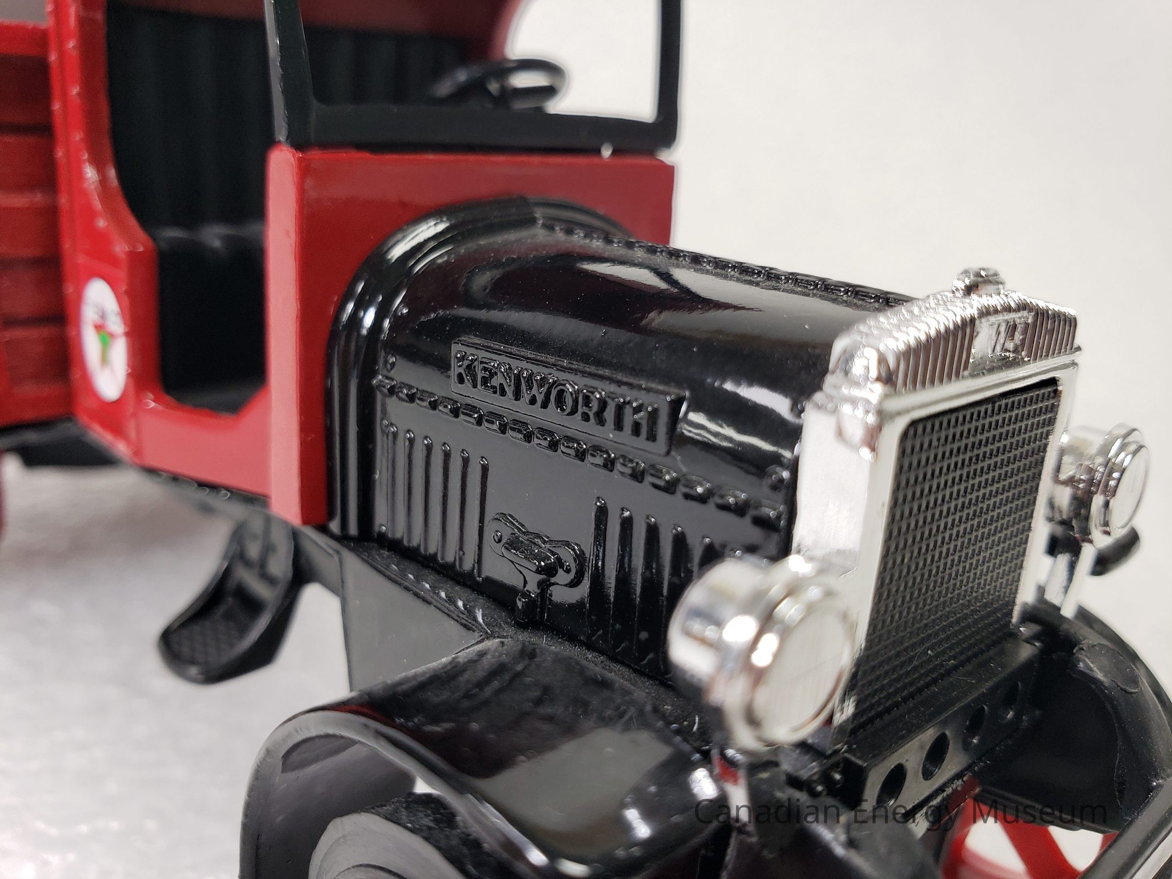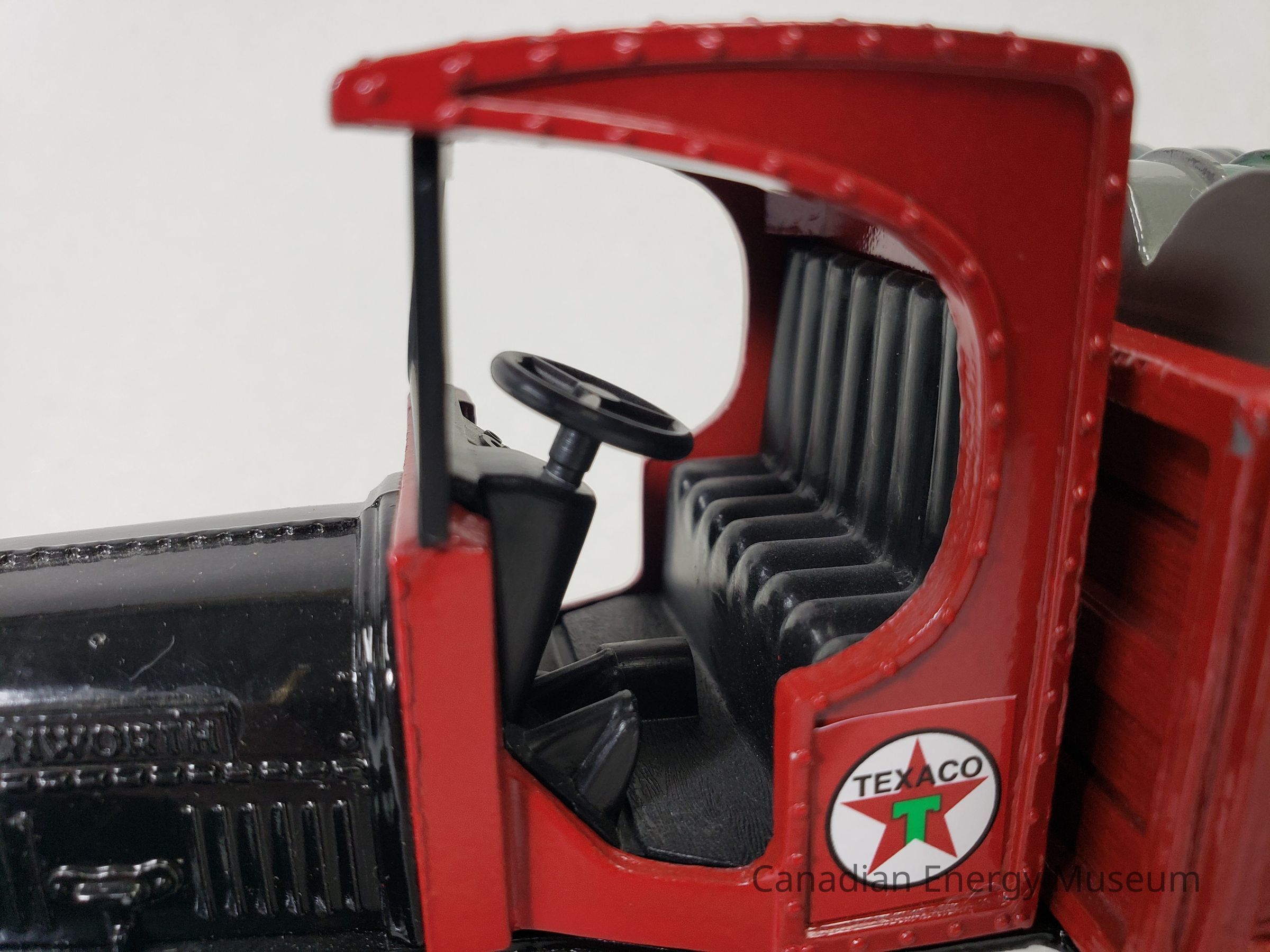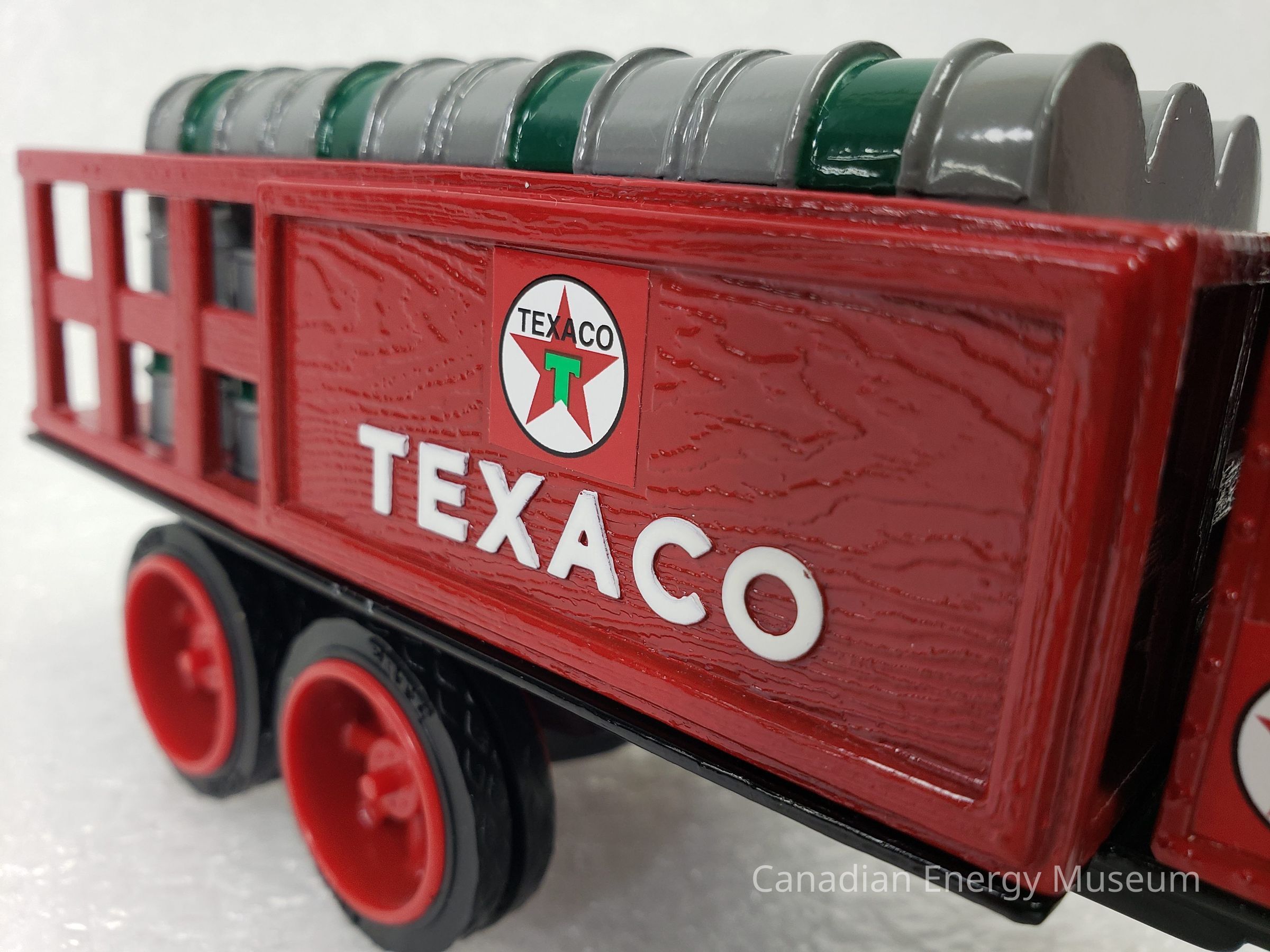 This particular model is a replica of a 1925 Kenworth Stake Truck (with Texaco branded barrels), was one of the vehicles used by Texaco Jobbers (the middleman between the company that refines the petroleum products and buyers and retailers) and other distributors when delivering products in the 1920s and 1930s.