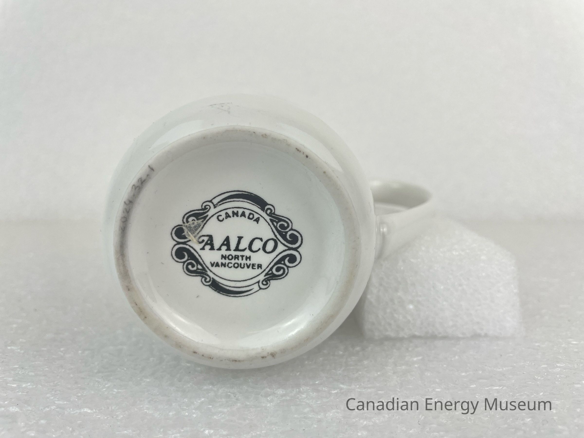 The bottom of the mug features a black logo of the manufacturer. The logo displays a decorative black oval shape with black text inside reading, "CANADA / AALCO / NORTH VANCOUVER".Collection