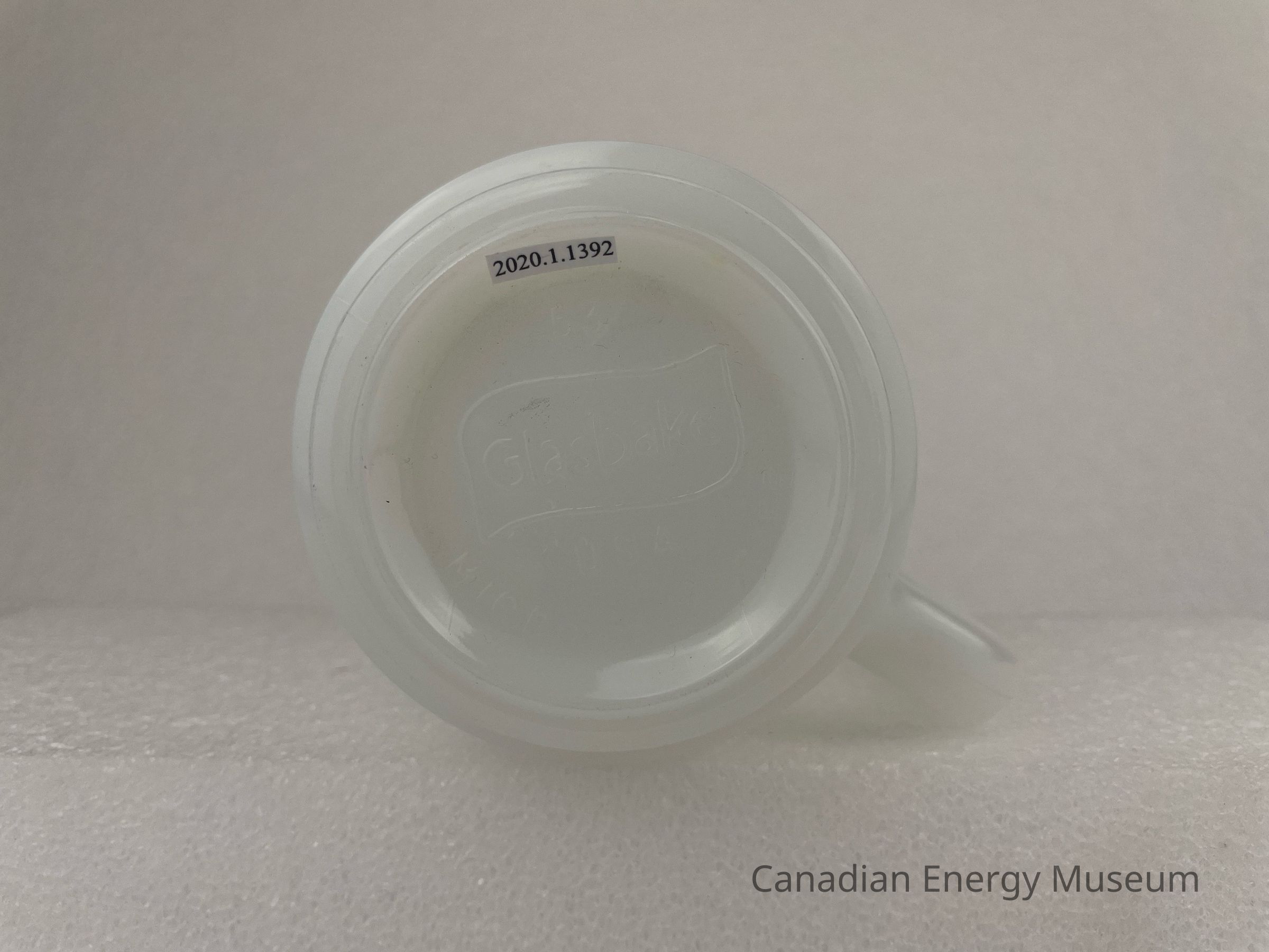 The bottom of the mug displays a raised banner in the center with text, "Glasbake". Raised text underneath reads, "USA / MICROWAVE SAFE".Collection