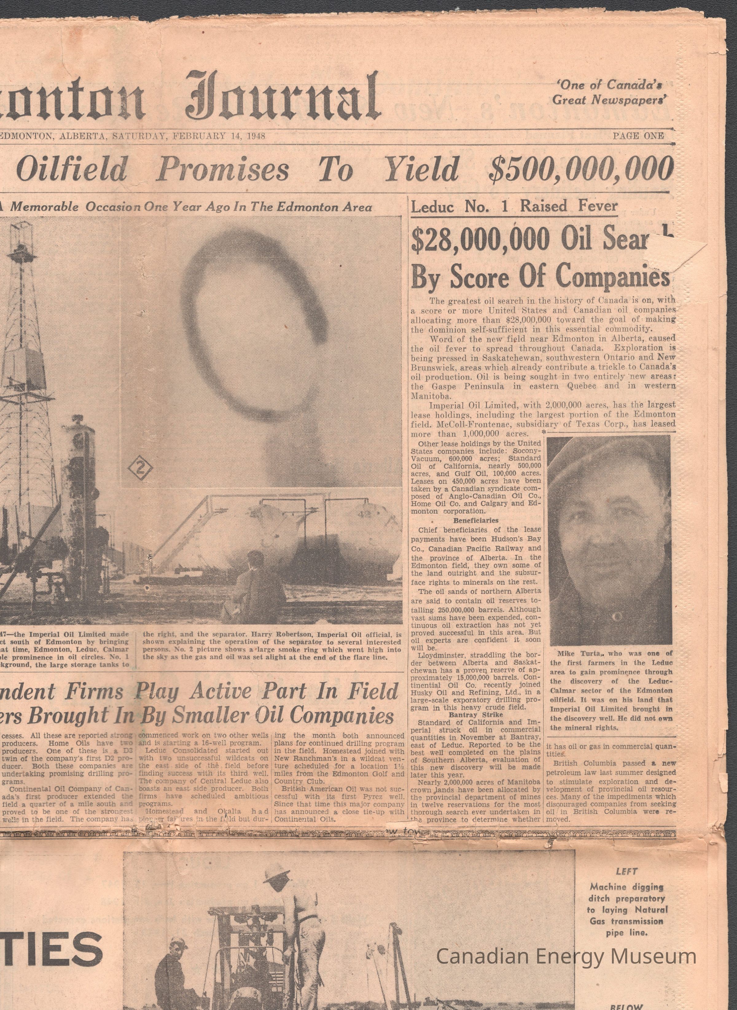 Newspaper, Leduc #1, Leduc-Woodbend Oilfield, History, Oil, Edmonton, 1940sDescription