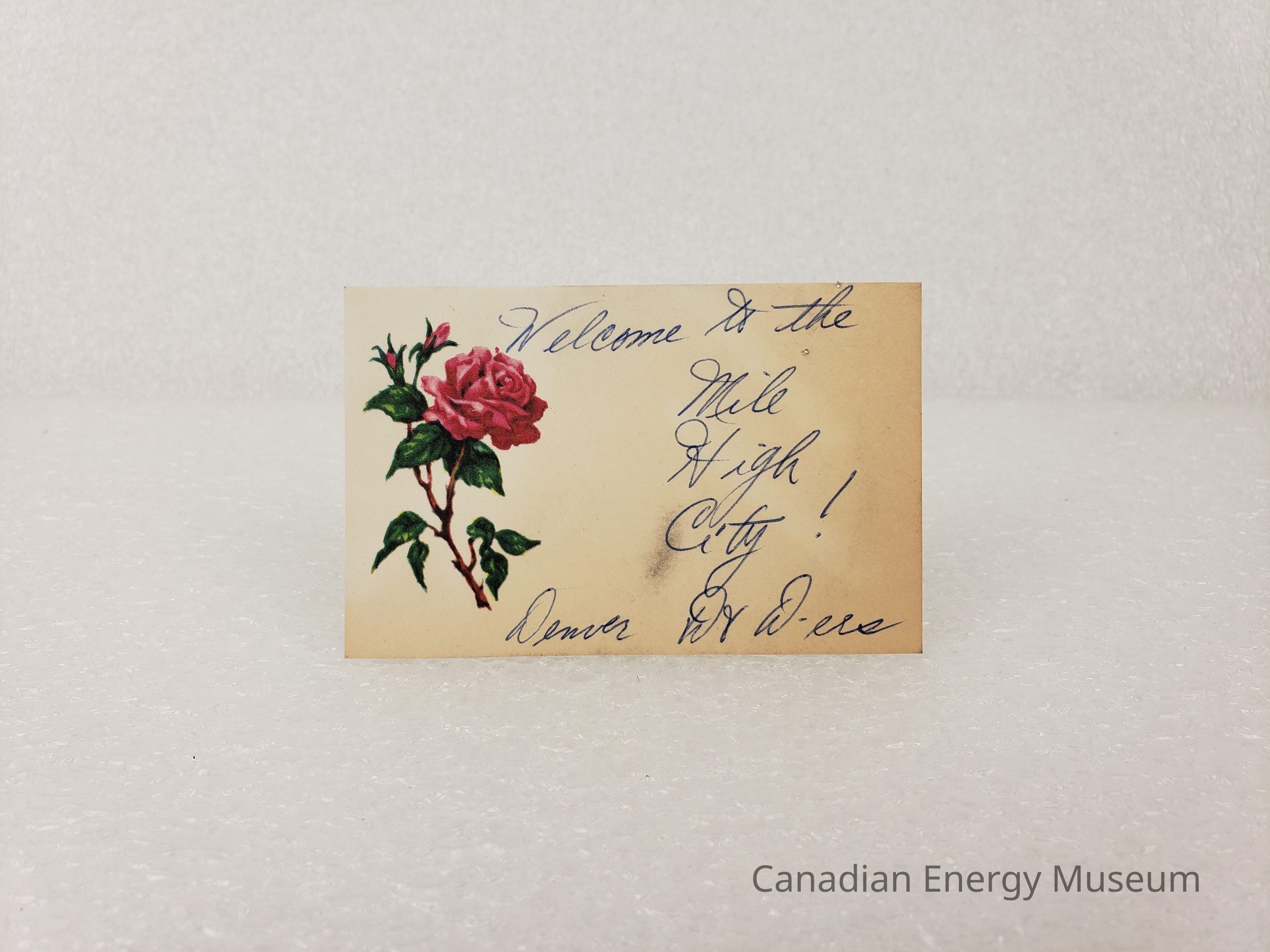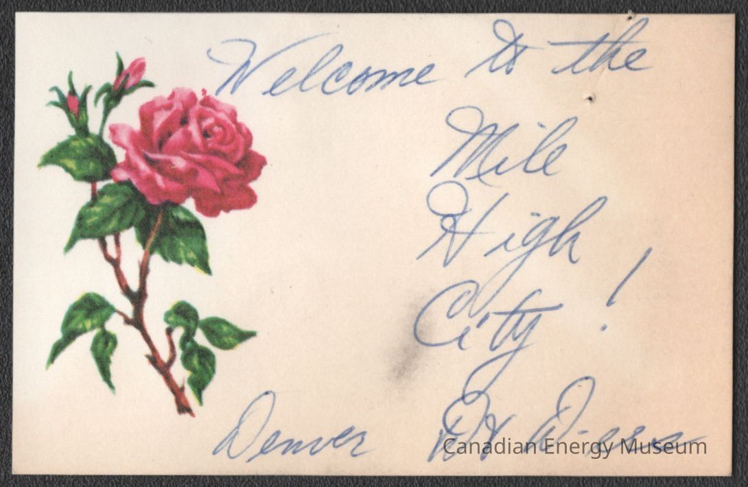 [Note Card] "Welcome to the mile High City!", Flower, Association of Desk and Derrick Clubs, Tulsa Oklahoma, September, 1972Entry/Object ID
