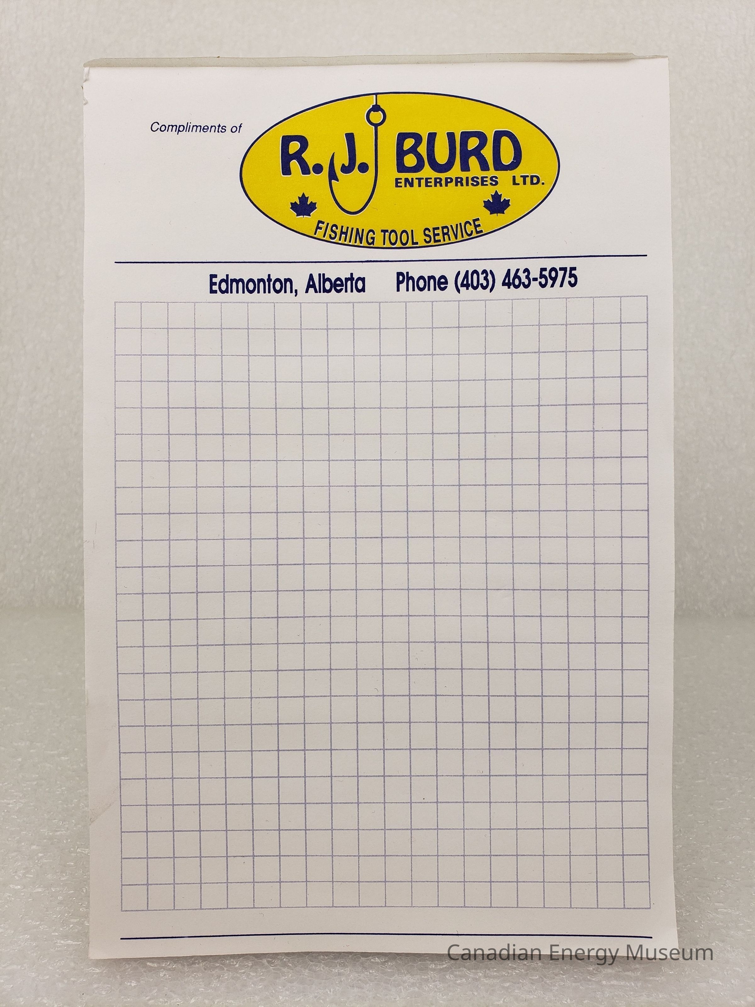 Oil, Oil Industry, Promotional Item, Branded Stationery, Paper, Notepad, Stationery, Paper Ephemera, Alberta, R.J. Burd Enterprises Ltd., Blue, Yellow, EdmontonDescription