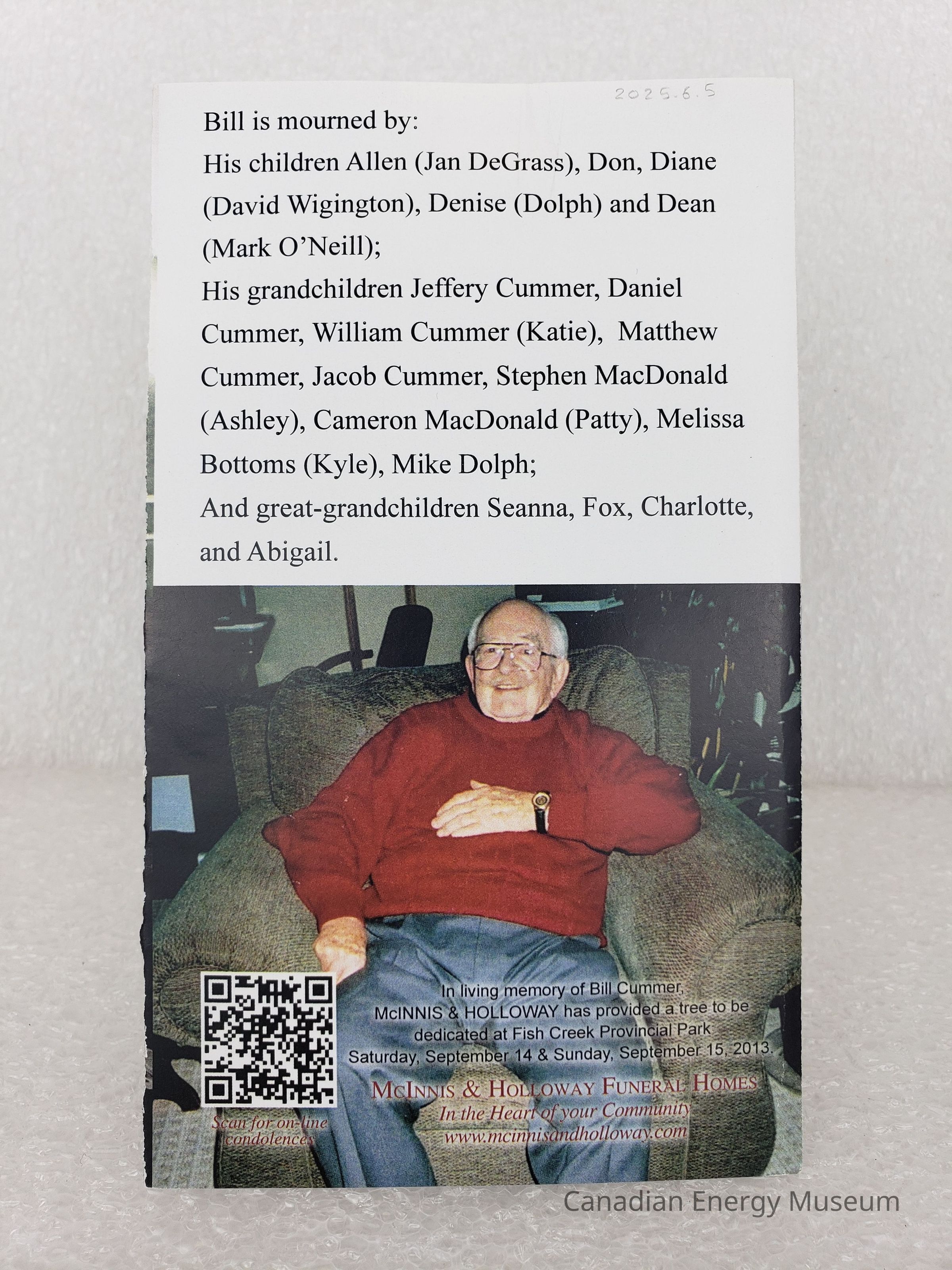 [Pamphlet] Bill Cummer, Lovingly Remembered 1922-2013Entry/Object ID