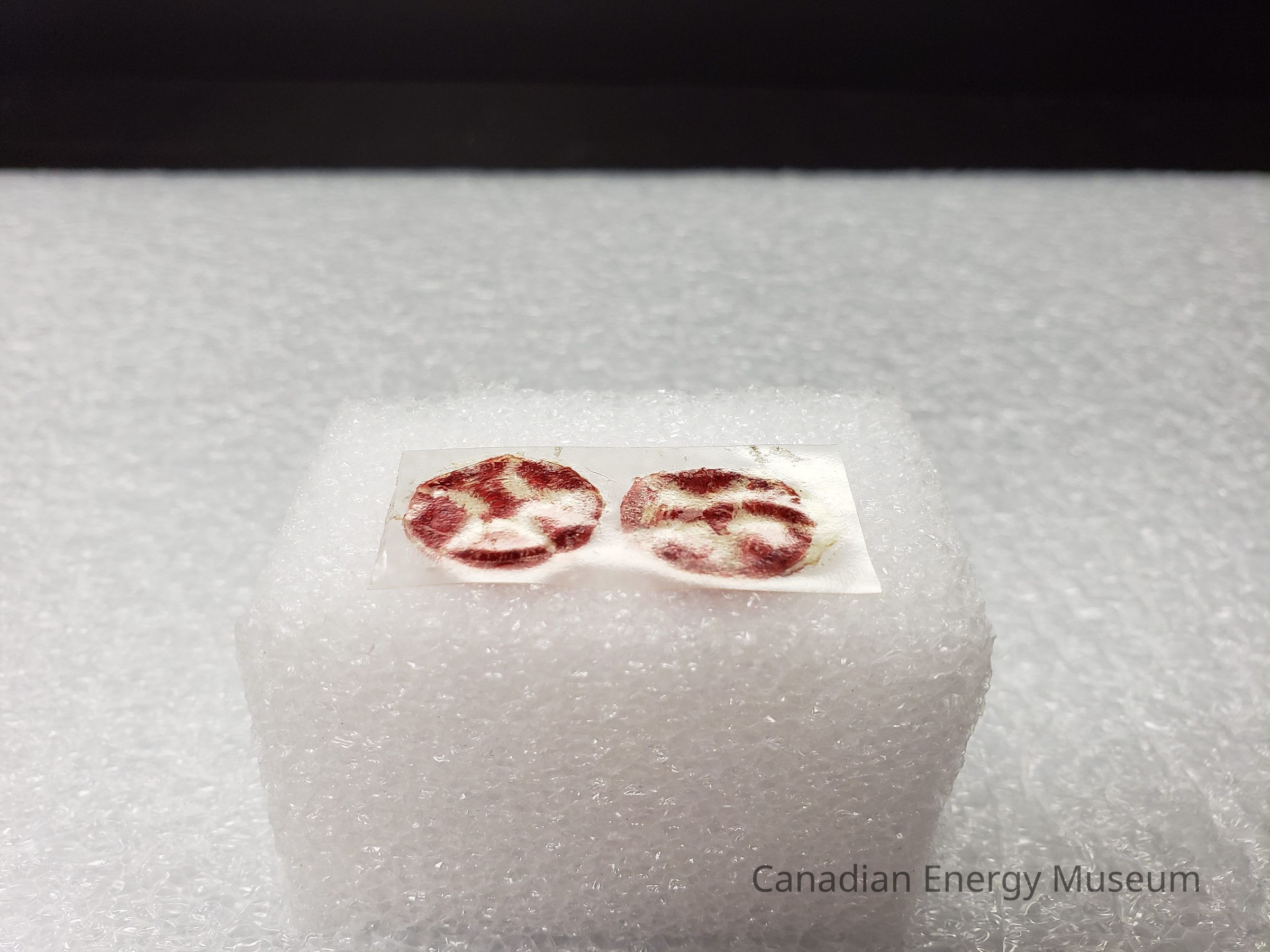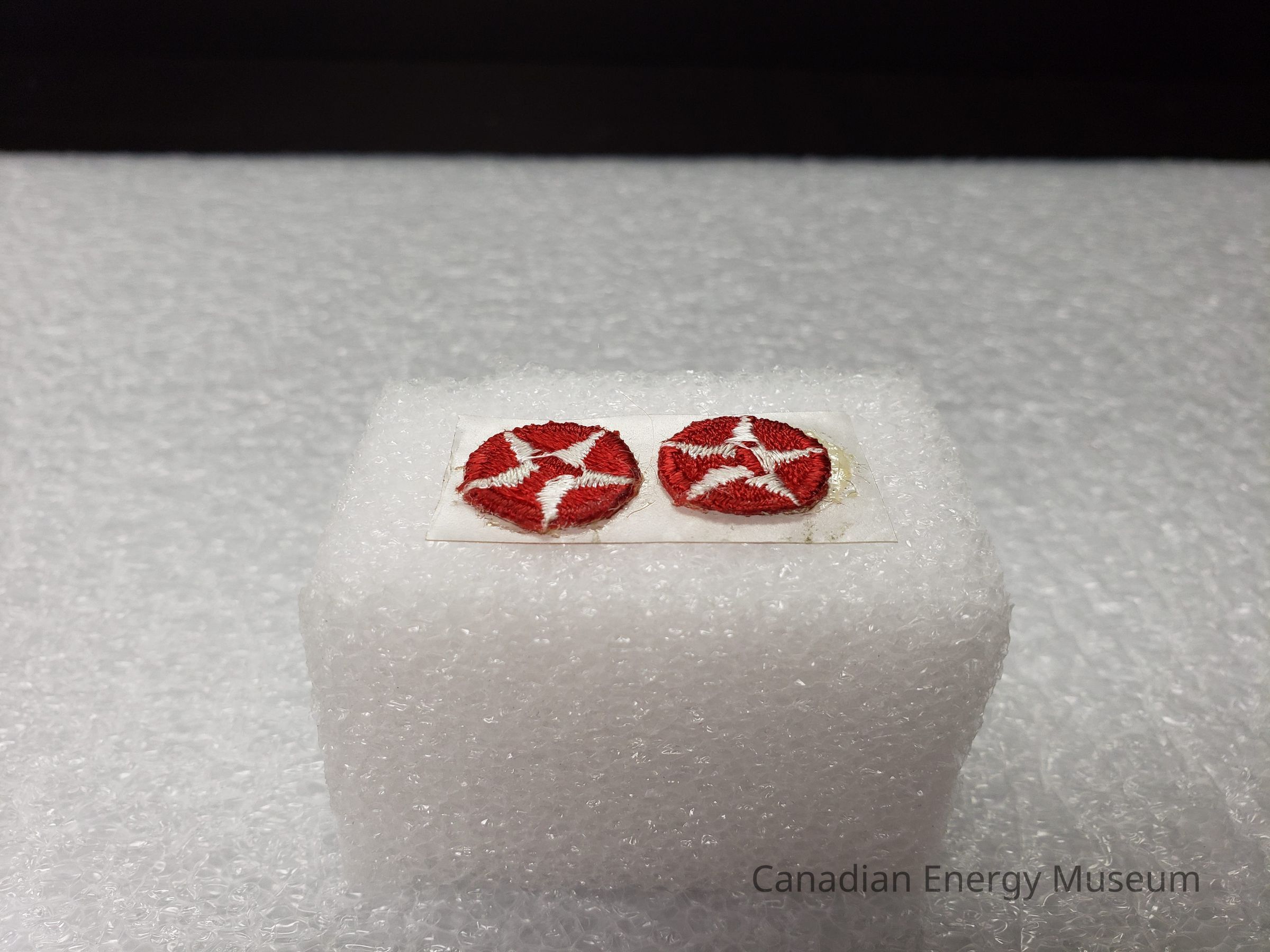 Two mini patches (15mm diam.) branded to Texaco's round logo. Are adhered to a slip of clear acetate.Collection