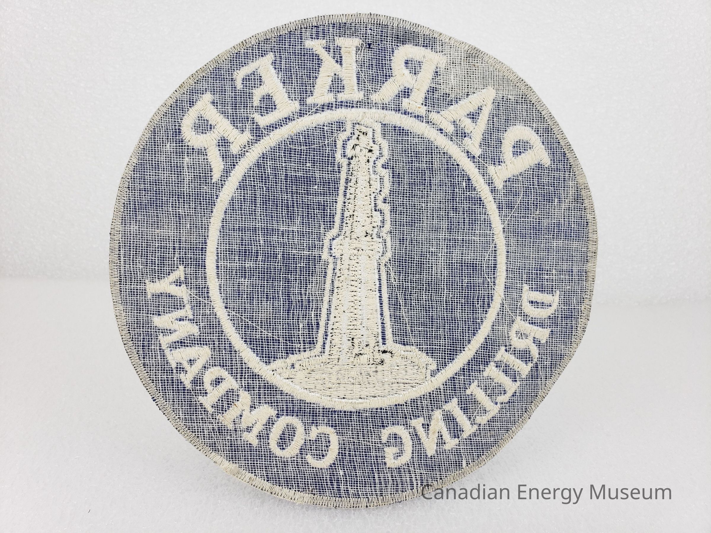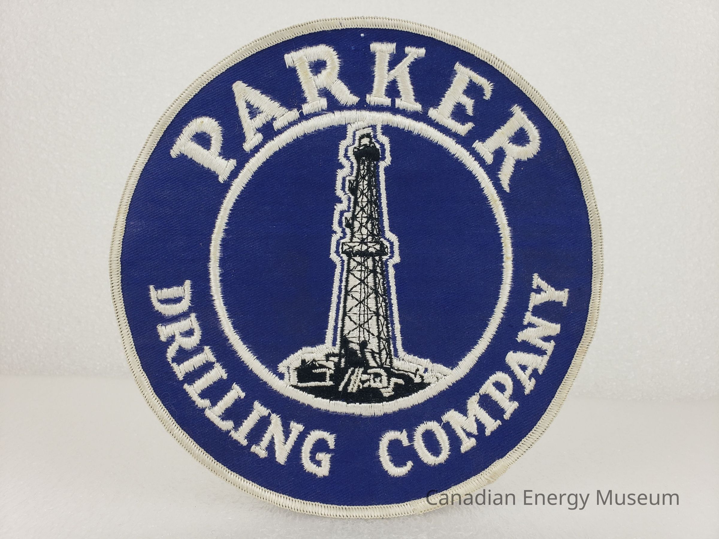 Textile, Patch, Embroidery, Blue, White, Parker Drilling Company, Derrick, Drilling, Oil RigDescription
