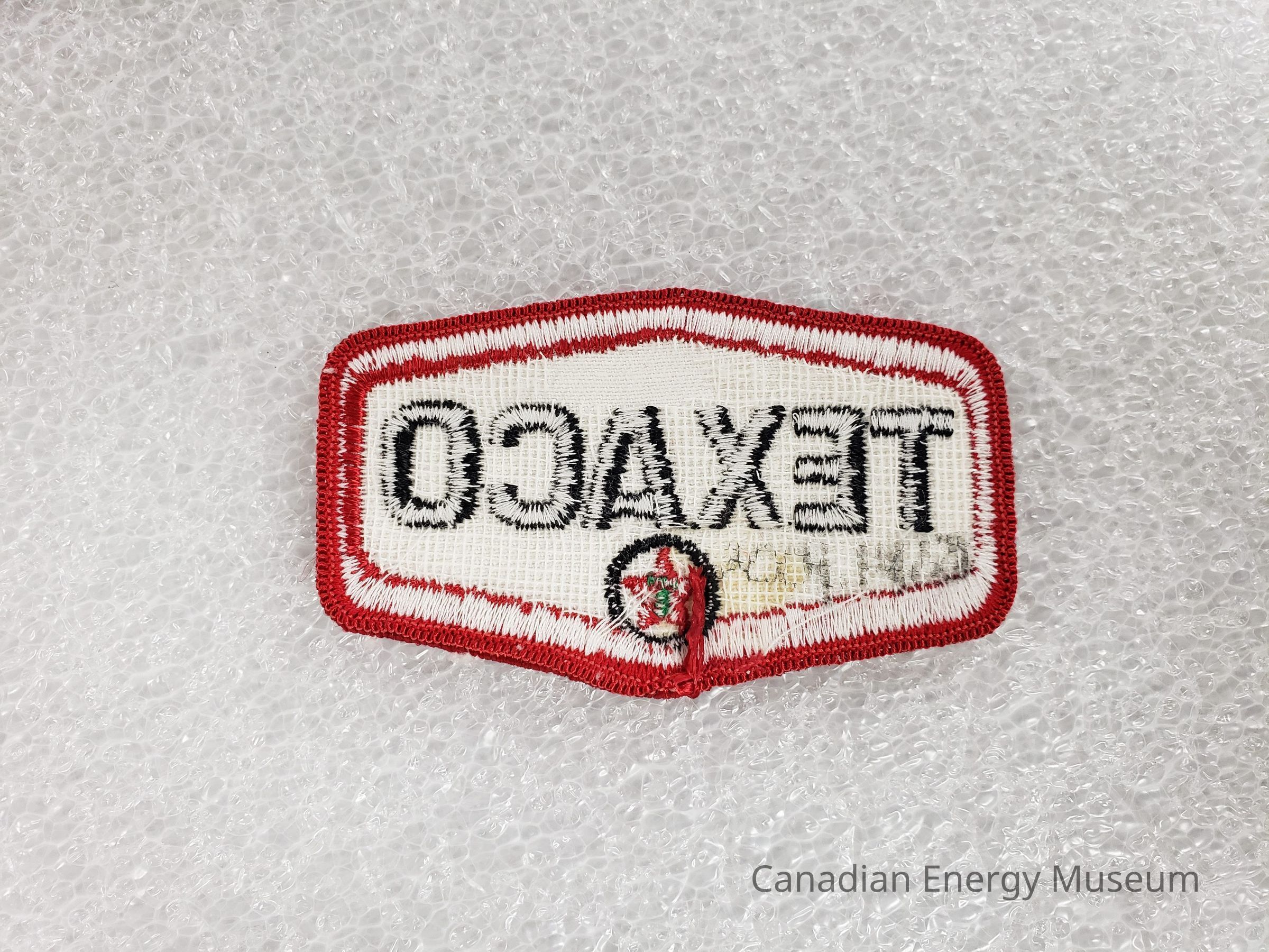 Embroidered patch of Texaco elongated hexagon logo.