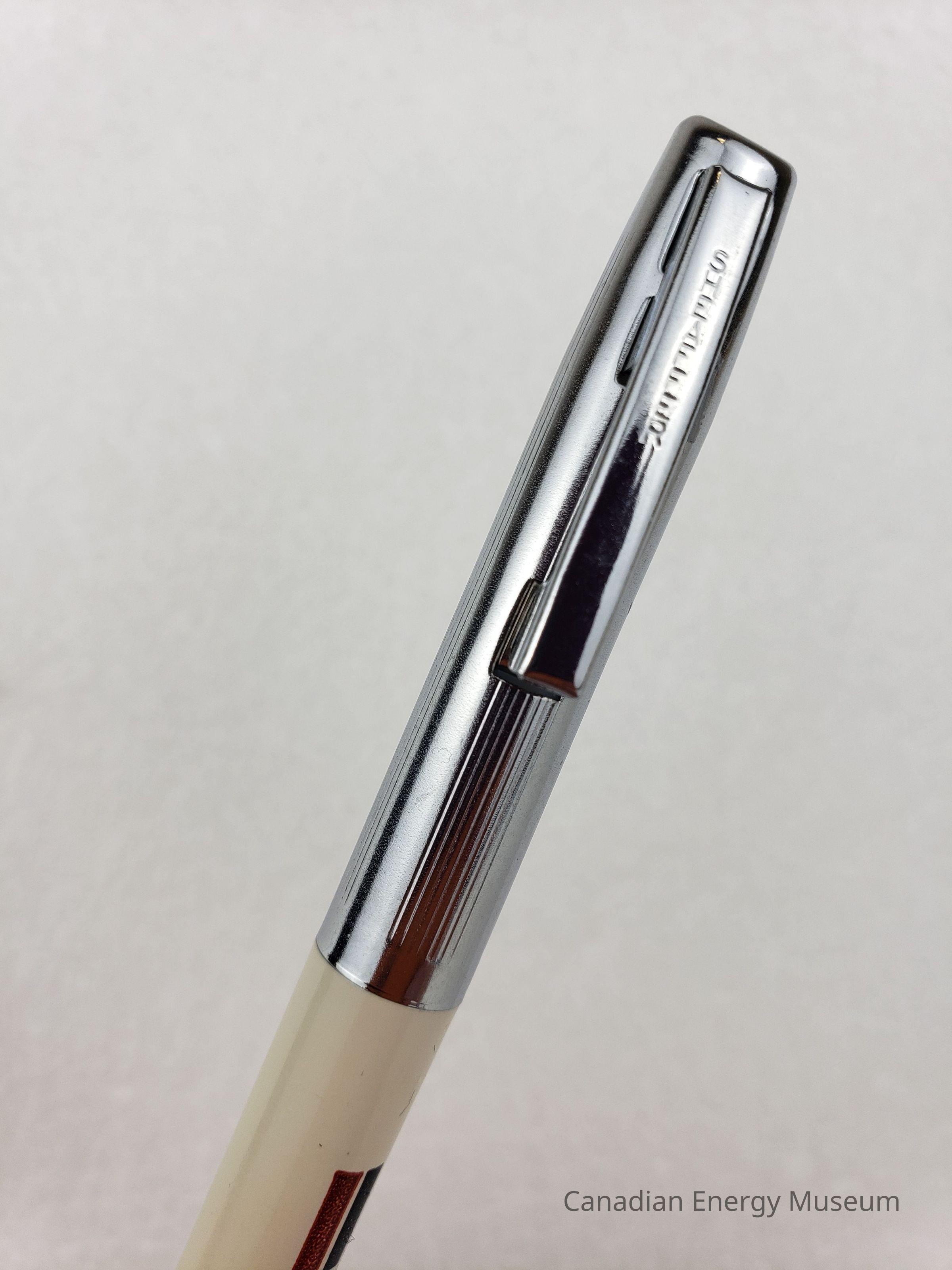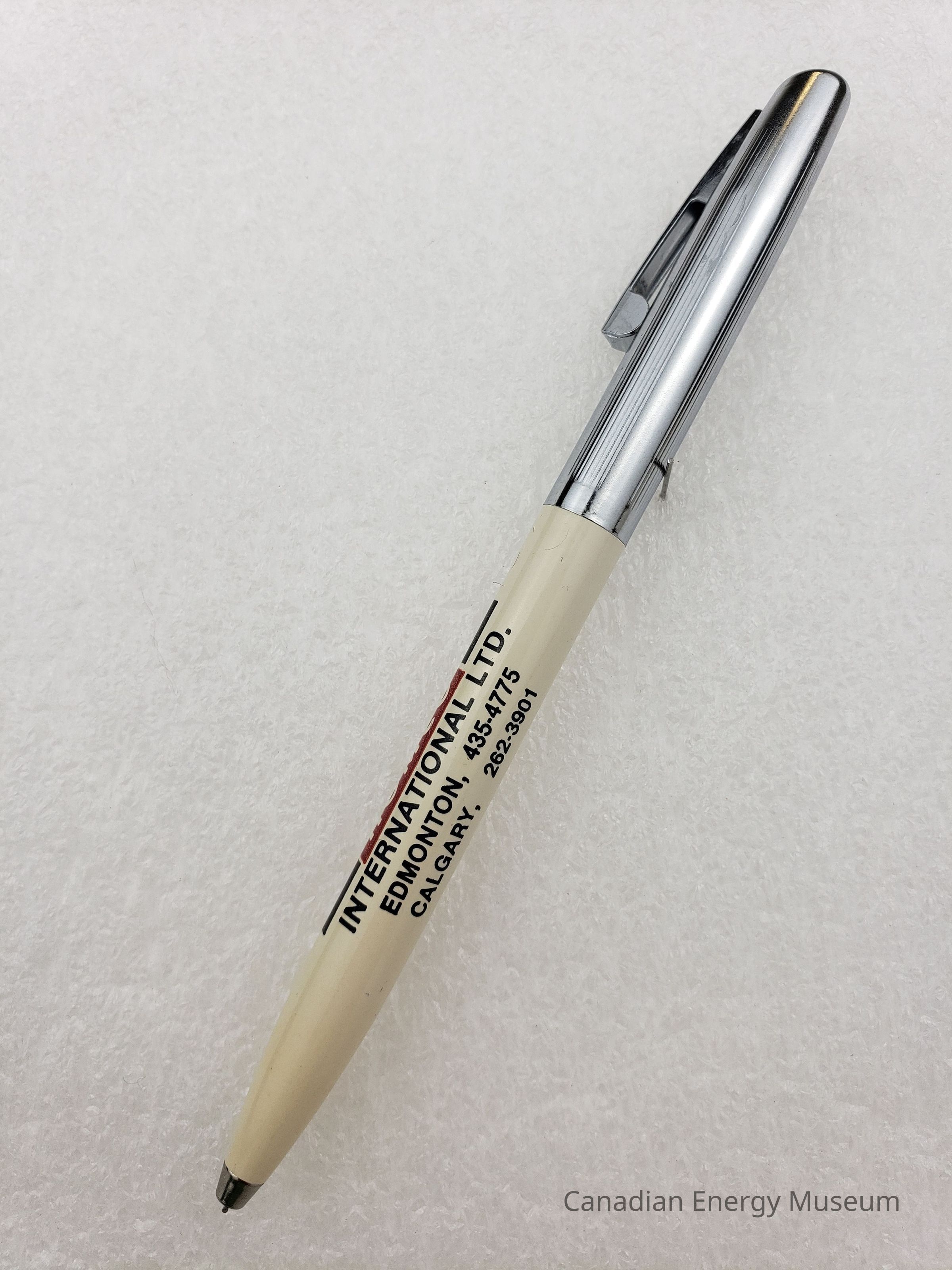 Oil, Oil Industry, Metal, Silver, Black, Pen, Ballpoint, Plastic, White, Red, Canada, Edmonton, Calgary, Homco International Ltd.Description