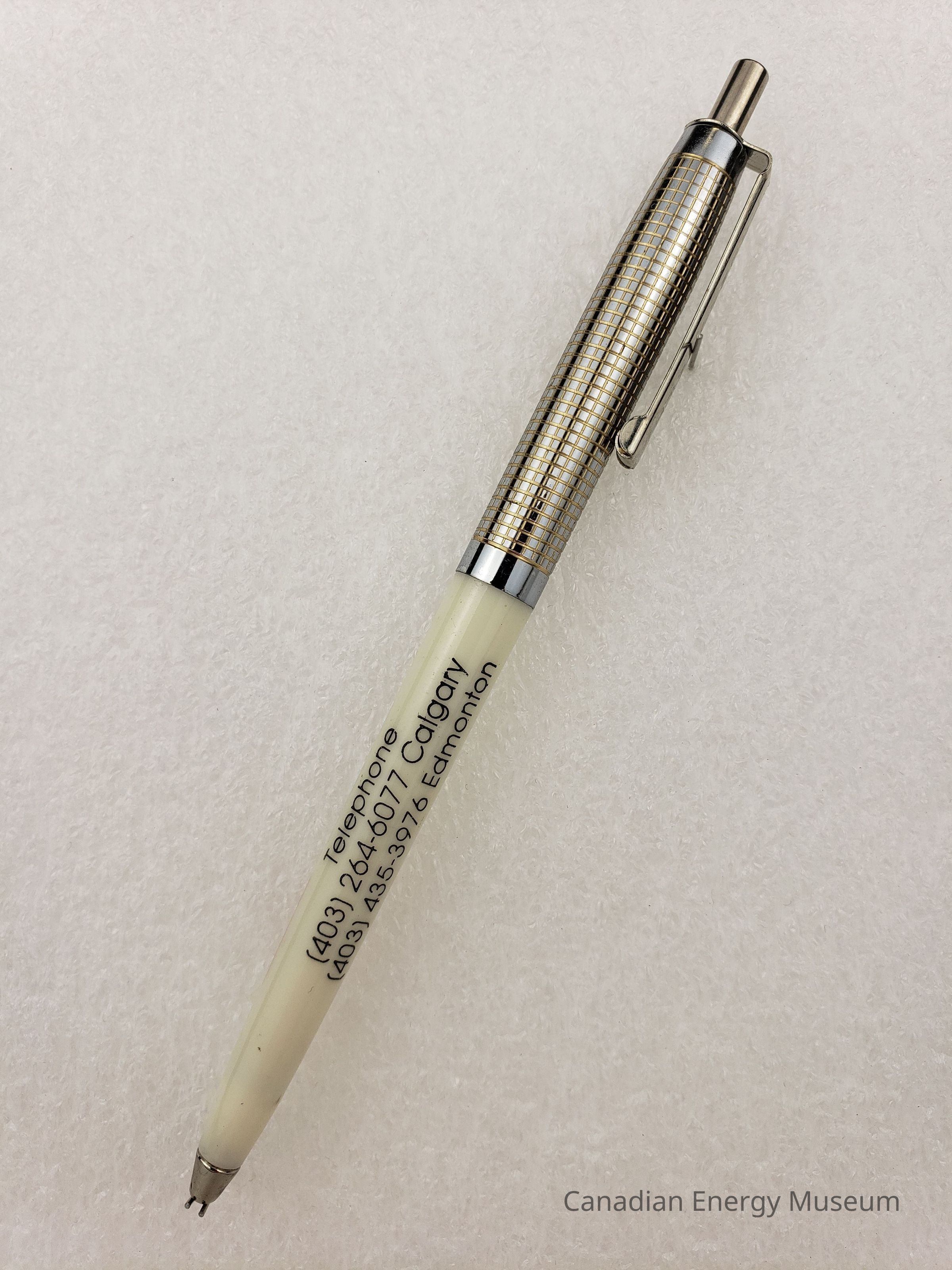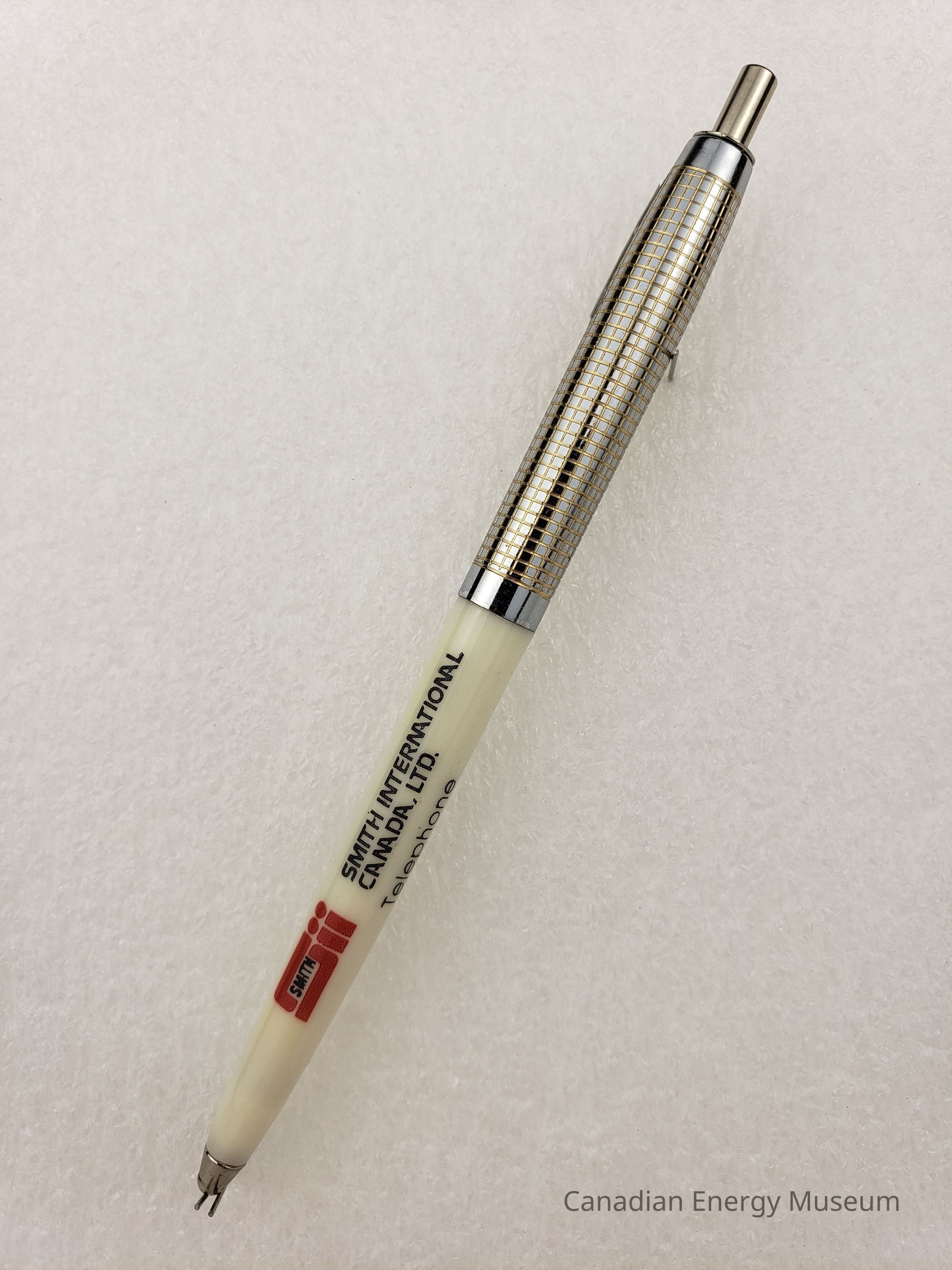Oil, Oil Industry, Metal, Silver, Pen, Ballpoint, Plastic, Black, White, Red, Smith International Canada, Calgary, EdmontonDescription
