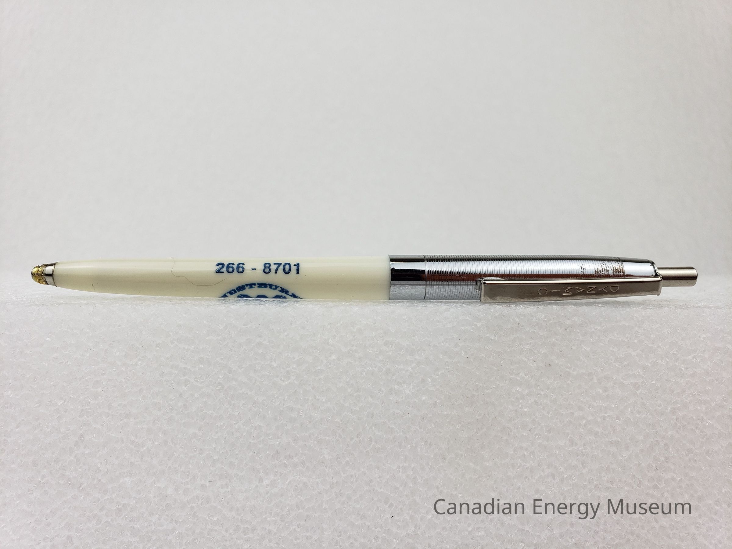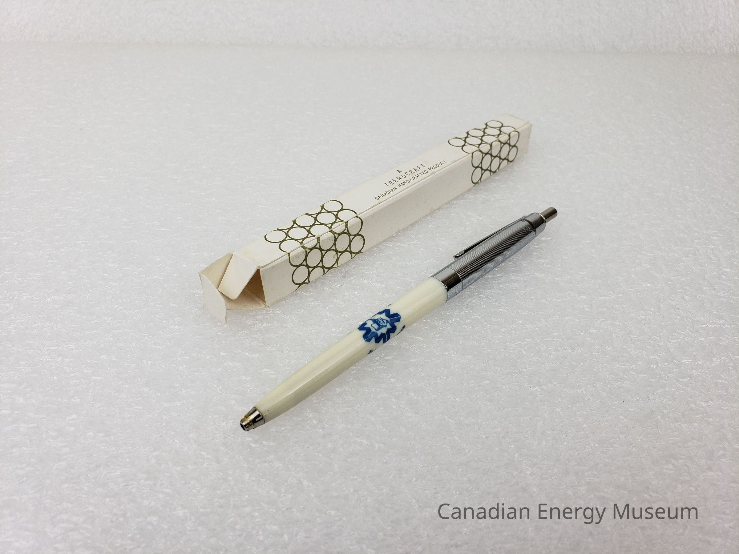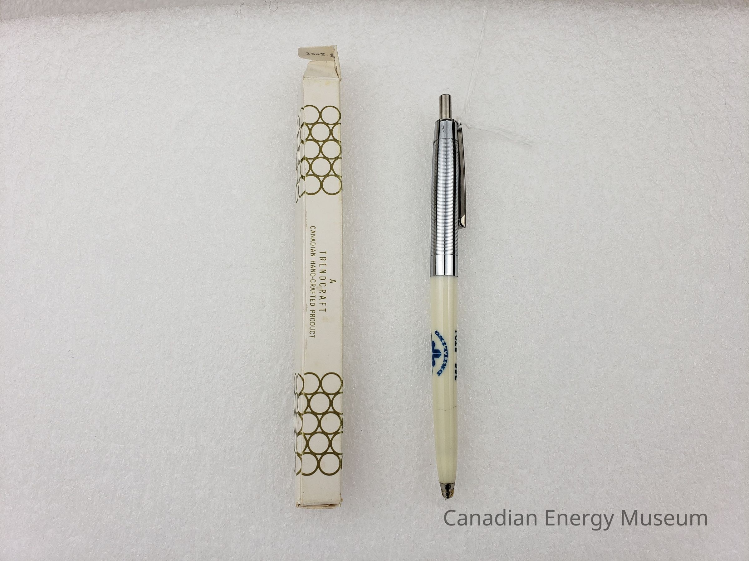 Oil, Oil Industry, Westburne Drilling, Westburne International Industries Ltd., Metal, Silver, Plastic, Blue, White, Off-White, Paper, Box, Gold, Pen, BallpointDescription