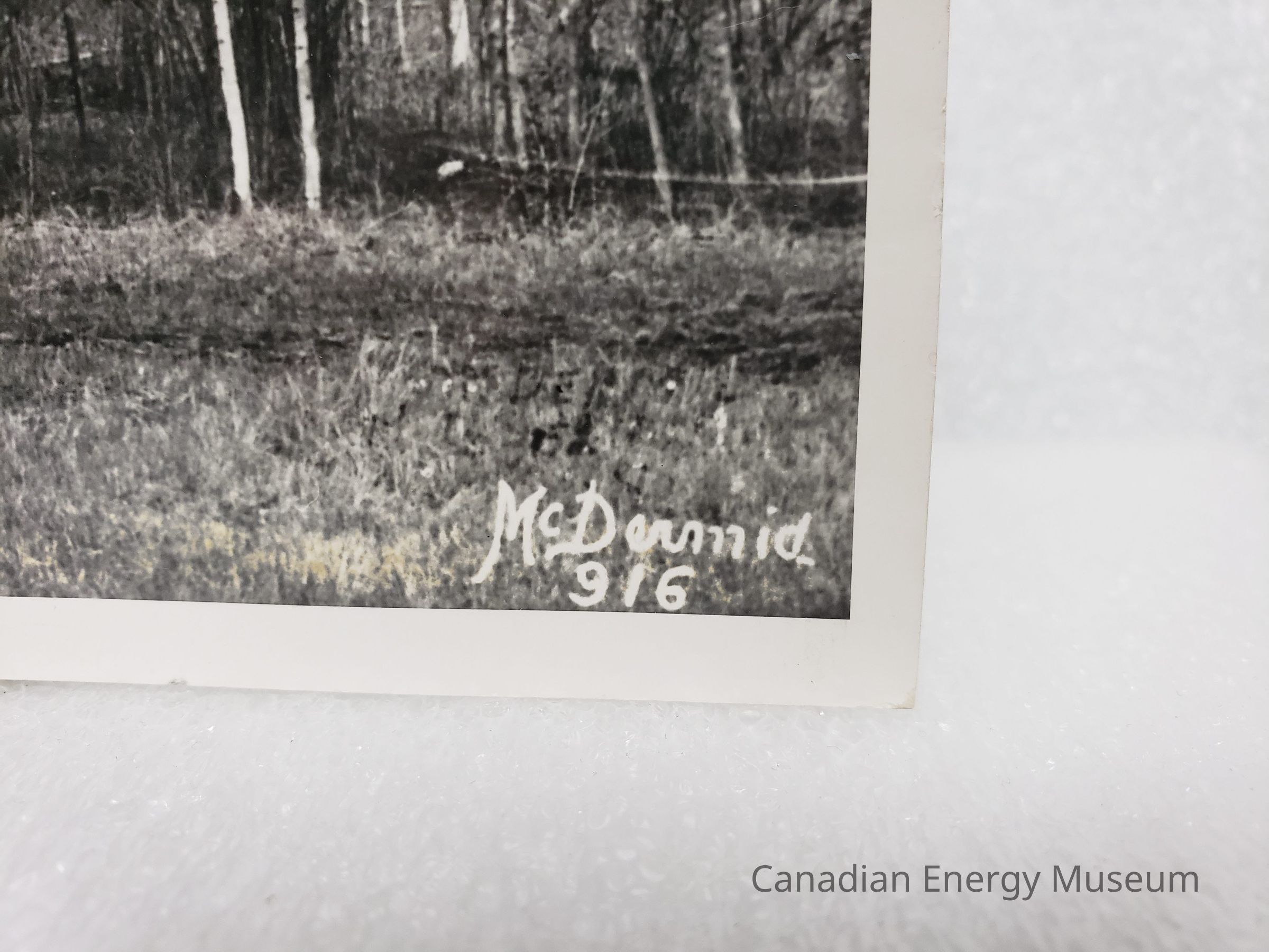 In the bottom-right is the handwritten (onto the negative) text reading "McDermid; 916", with the latter number believed to be the date (1916), but this is unconfirmed, though the dress of the figures in the photograph would support such a date. On the reverse in red ballpoint in written "167".