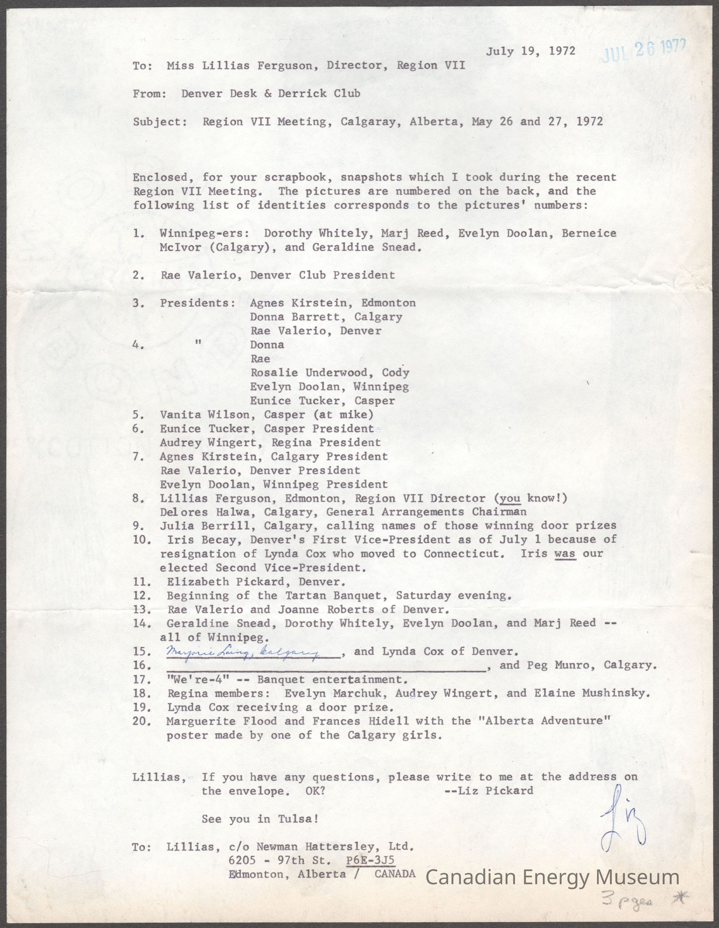 1970s, Photograph, Paper, Desk and Derrick Club, Women's Associations, Women's Group, Calgary, AlbertaDescription