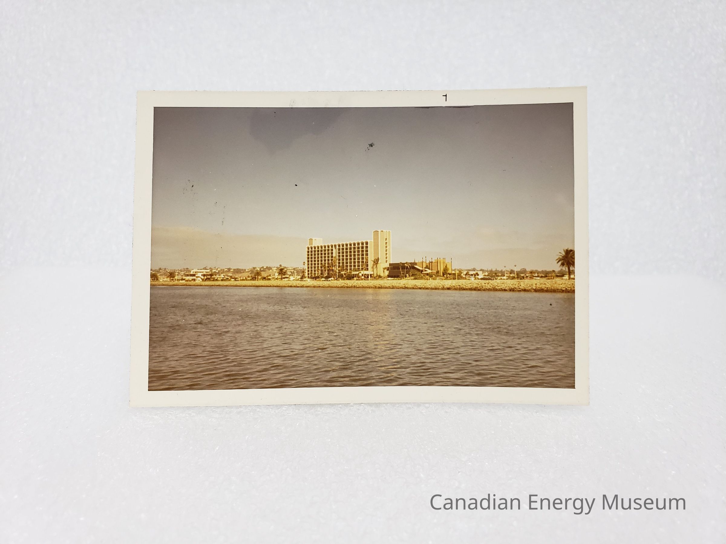A white-bordered photograph of a hotel being viewed from across (what is believed to be) the San Diego Bay.