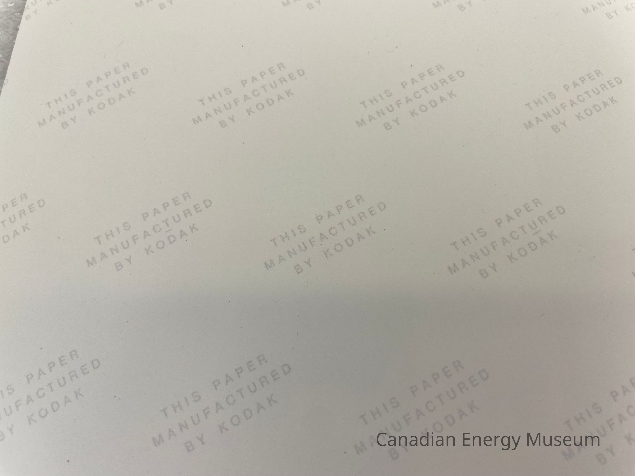 In light grey, a printed pattern runs across the back of the photograph reading, "THIS PAPER / MANUFACTURED / BY KODAK".Collection