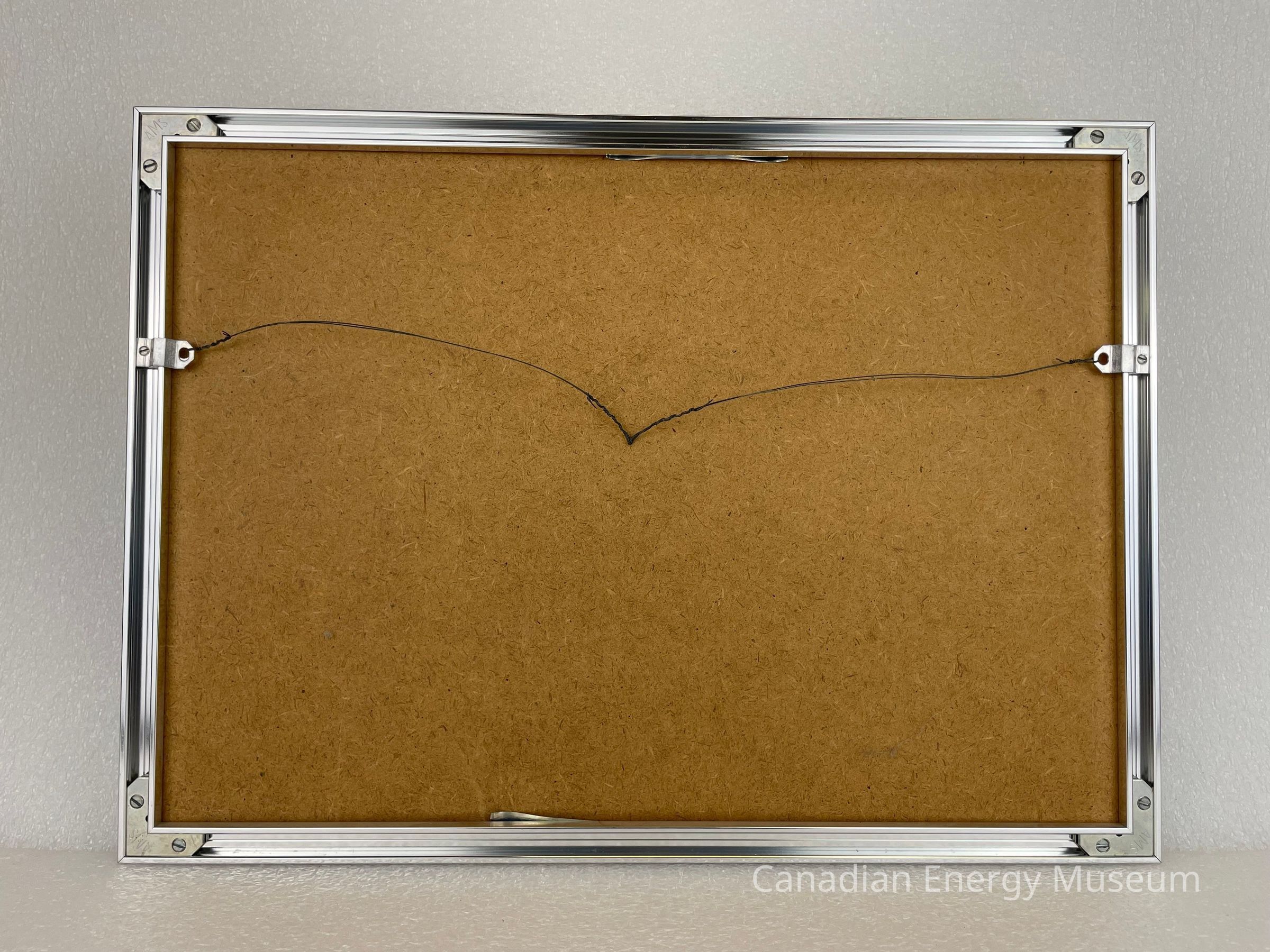 Framed within a silver metal material, it rests upon a green matboard.Collection