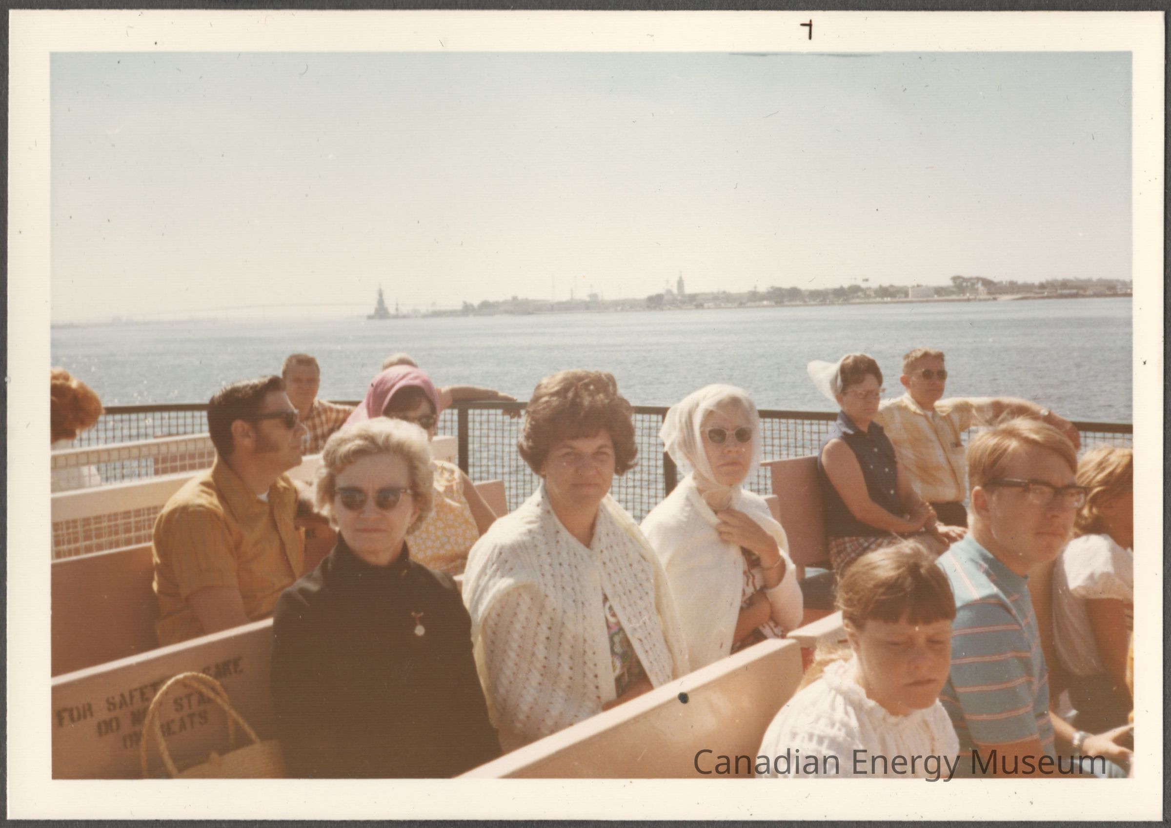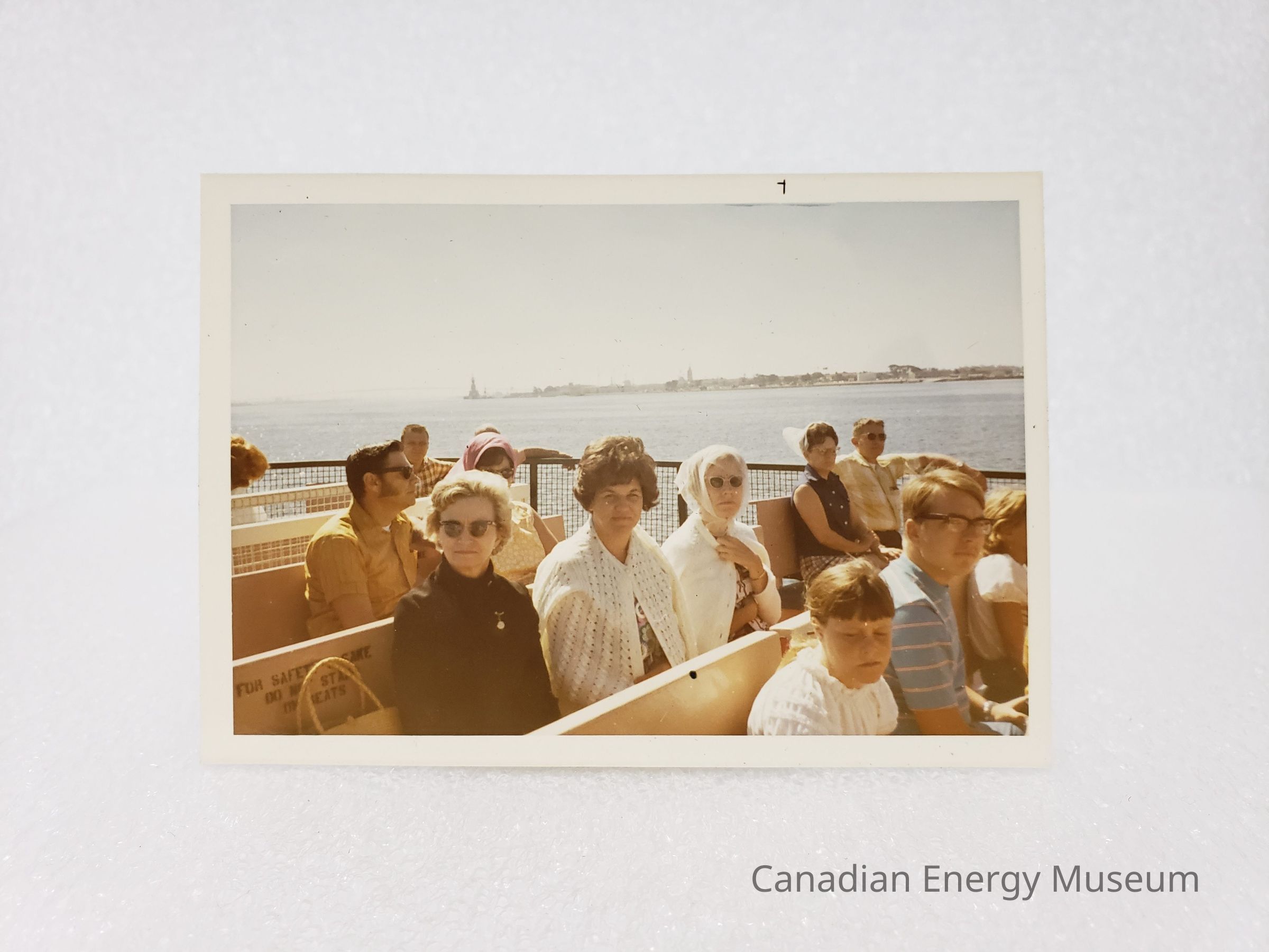 [Photo] Three Ladies and Others on Open Top Ferry, Landscape, White Border, c.1971Entry/Object ID
