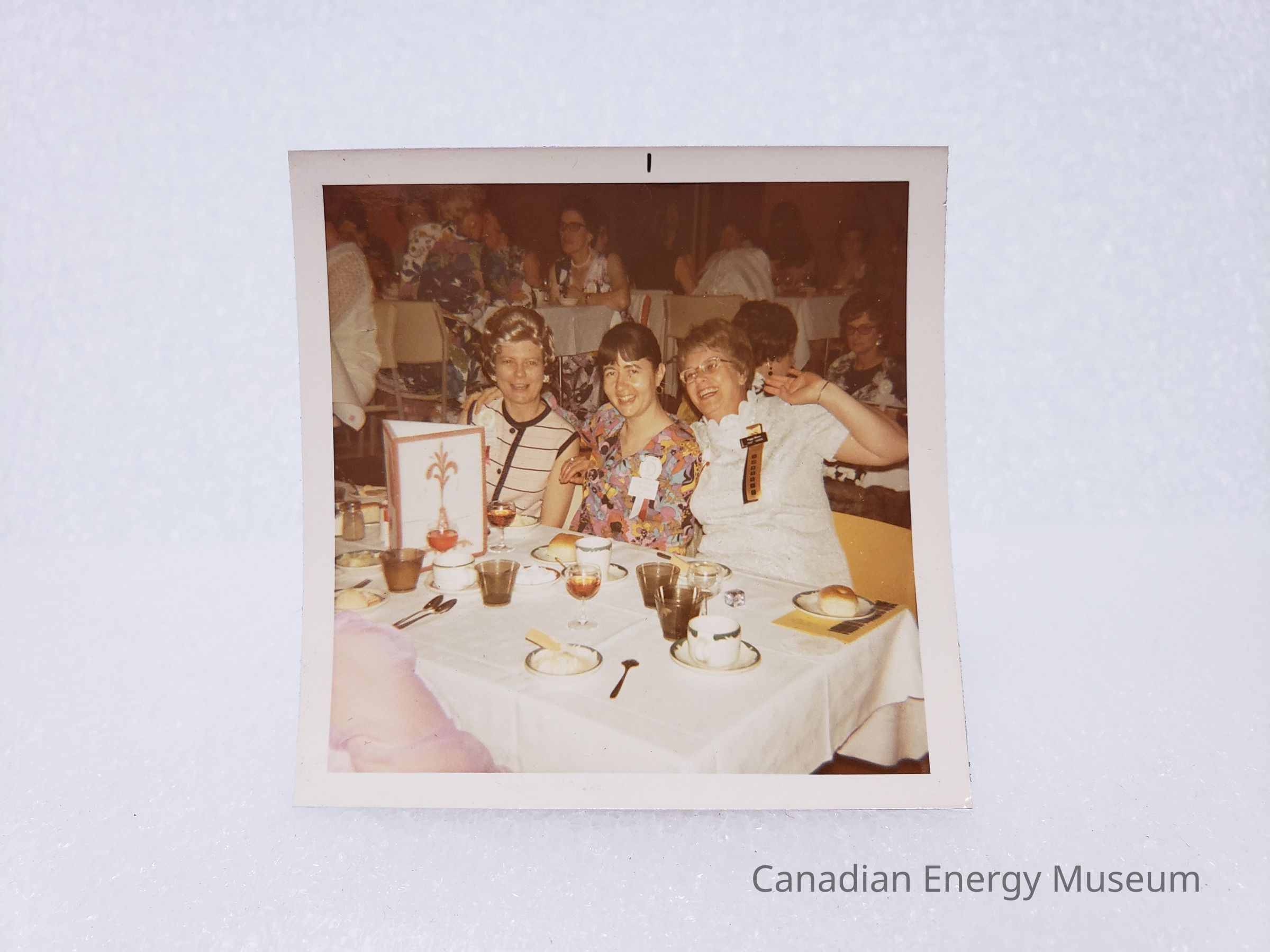 [Photo] Three Ladies Seated at Dining Table, Association of Desk and Derrick Clubs, Square, White Border, c.1972Entry/Object ID