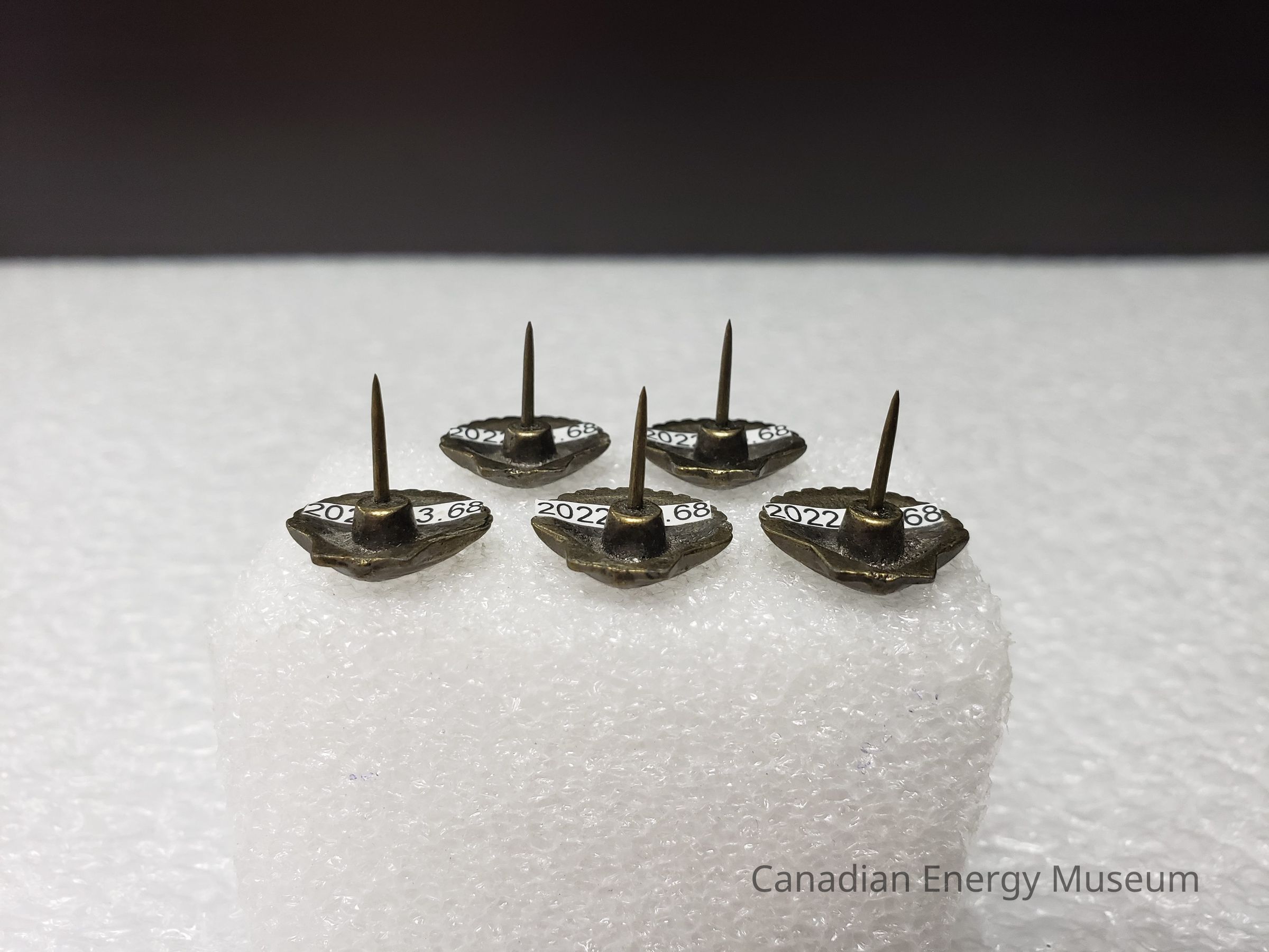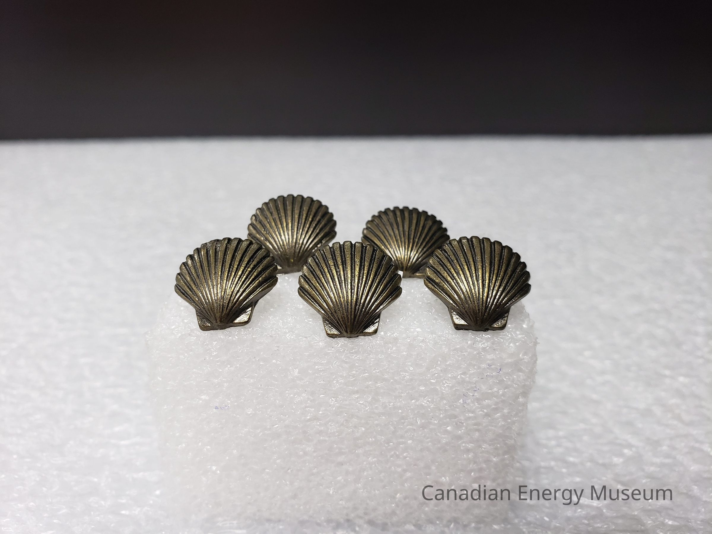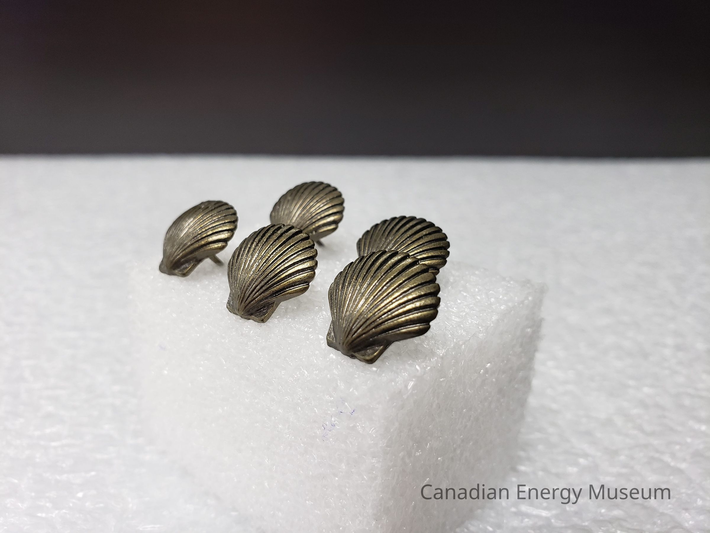 The pins are a cast bronze pin of a clam style shell like the Shell Oil logo. All pins have no backingsCollection