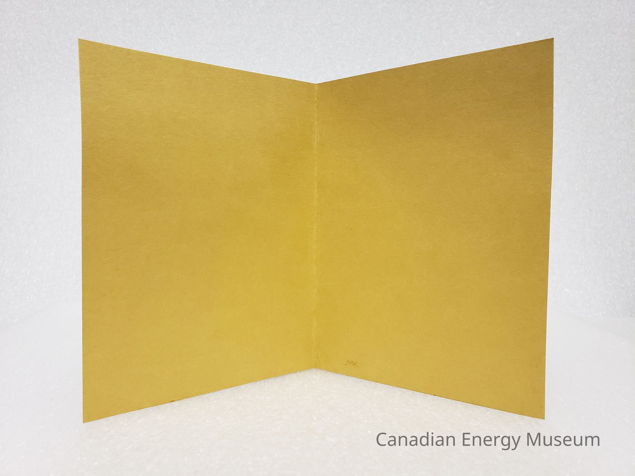 Material: Medium-weight cardstock, Mustard-yellow with white paper stock, black ink writing.