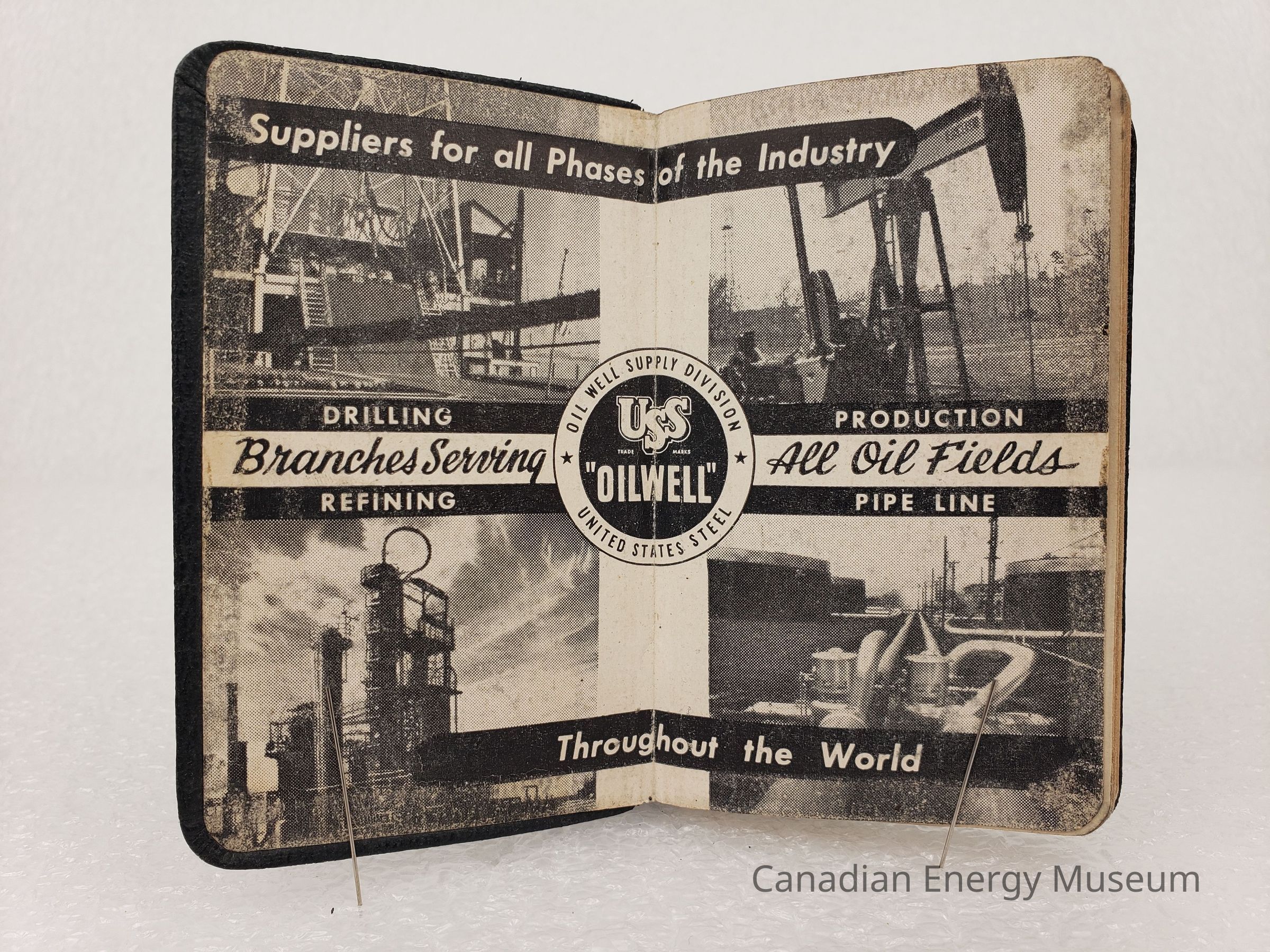 1950s, USS Oilwell, Oil, Oil Industry, Oil Well Supply Co., Promotional Item, Branded Stationery, Black, Gold, Planner, Booklet, Pocket Book, Pocket Calendar, Pocket Diary, Appointment Book, Paper, Plastic, United States Steel, USA, America, Calculations Table, Conversion Chart, Fishing Calendar, First Aid, HandwritingDescription