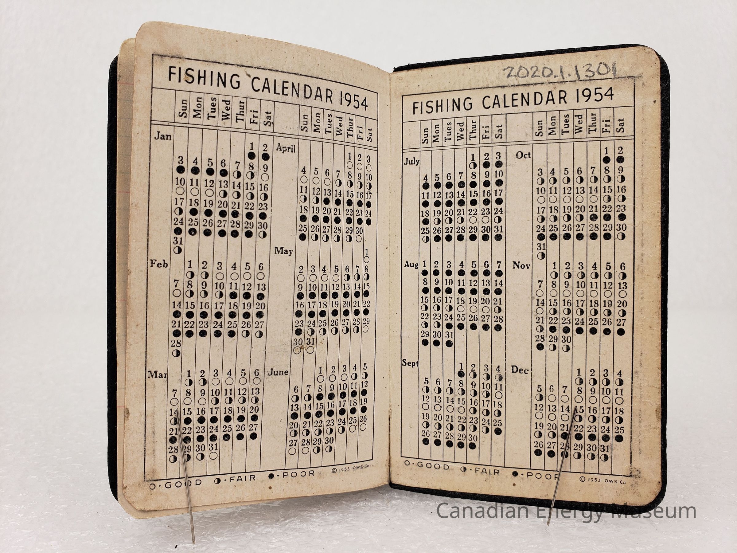 A pocket-sized planner/appointment book for 1954, branded to USS Oilwell.