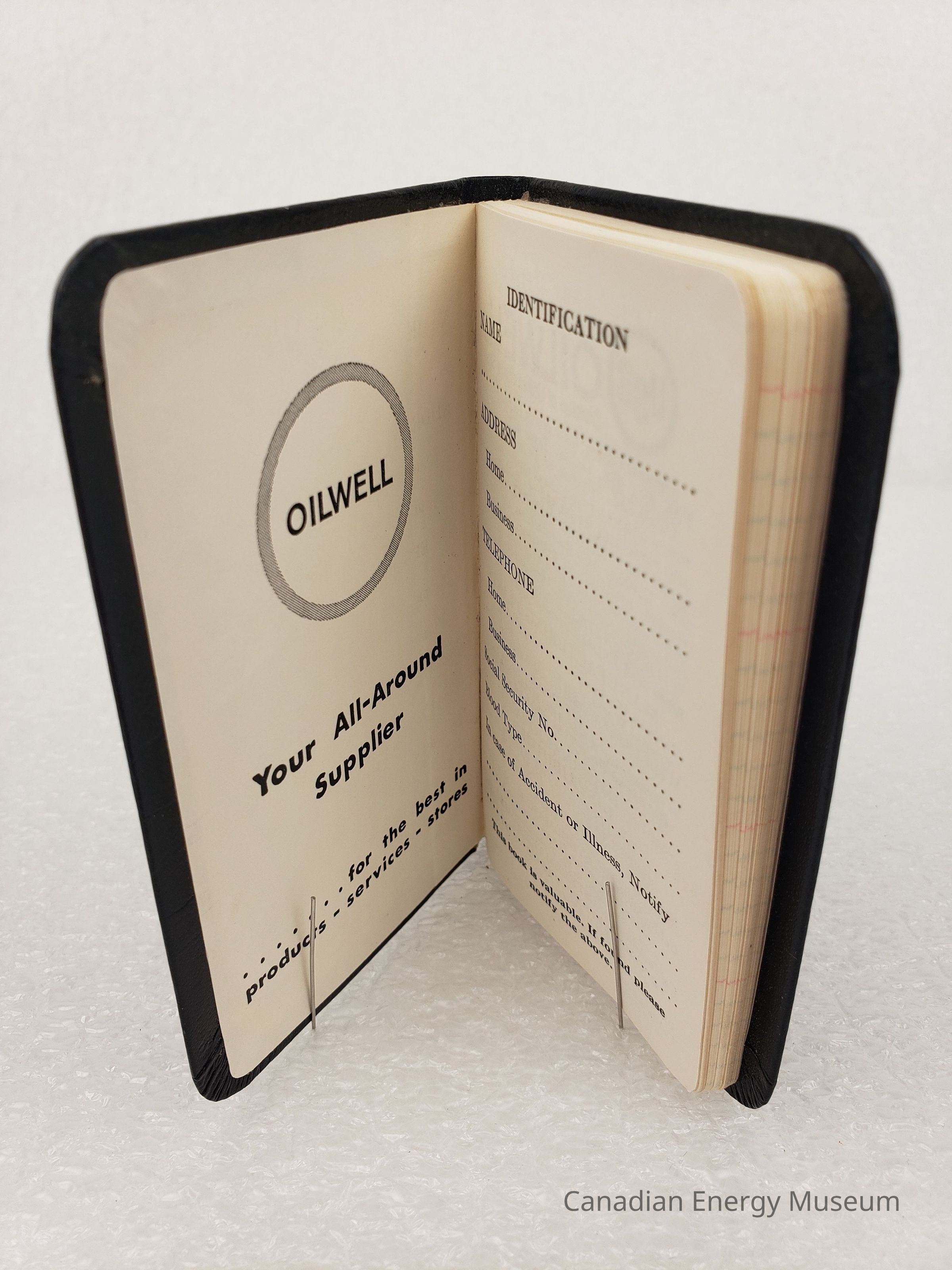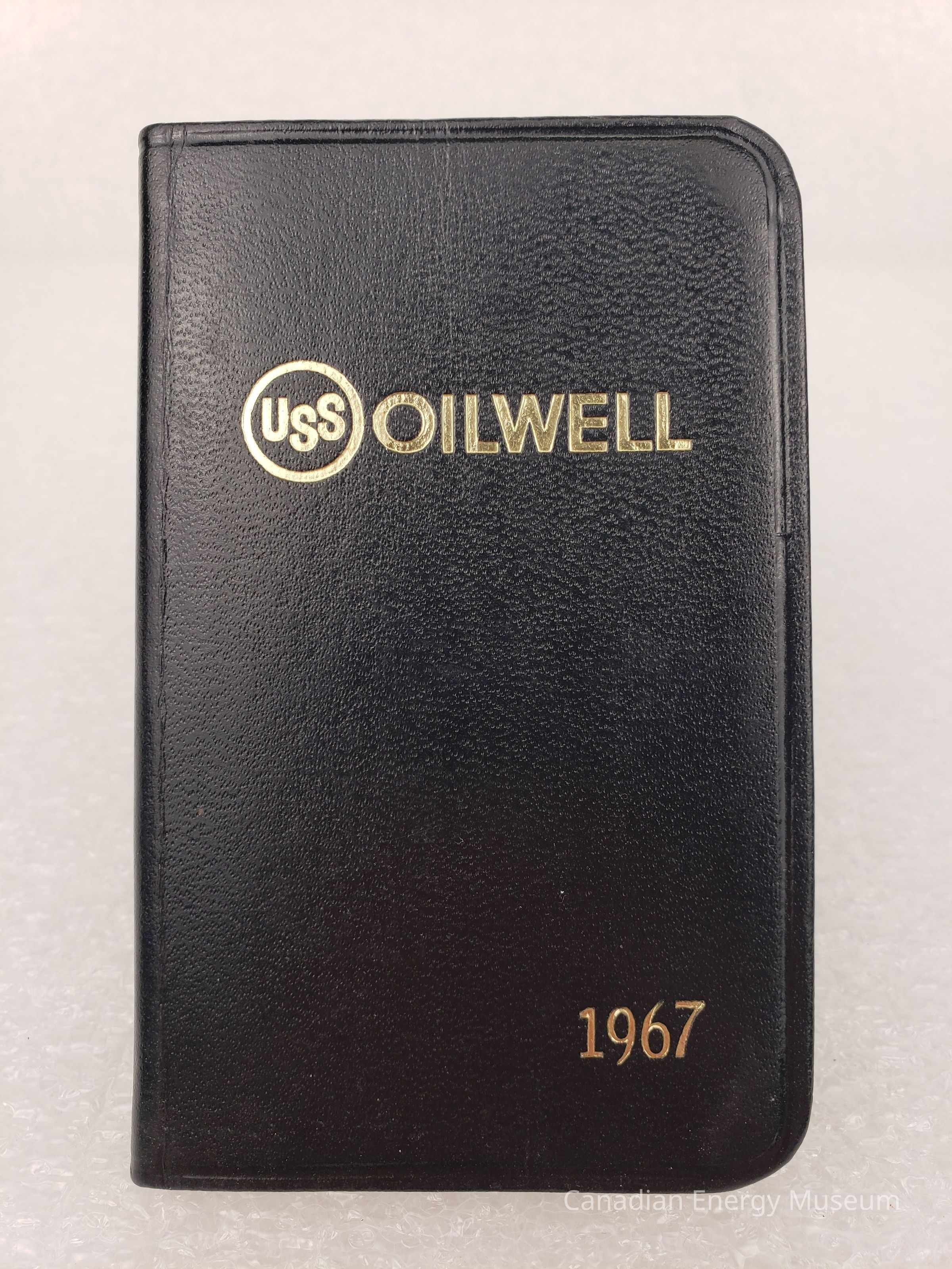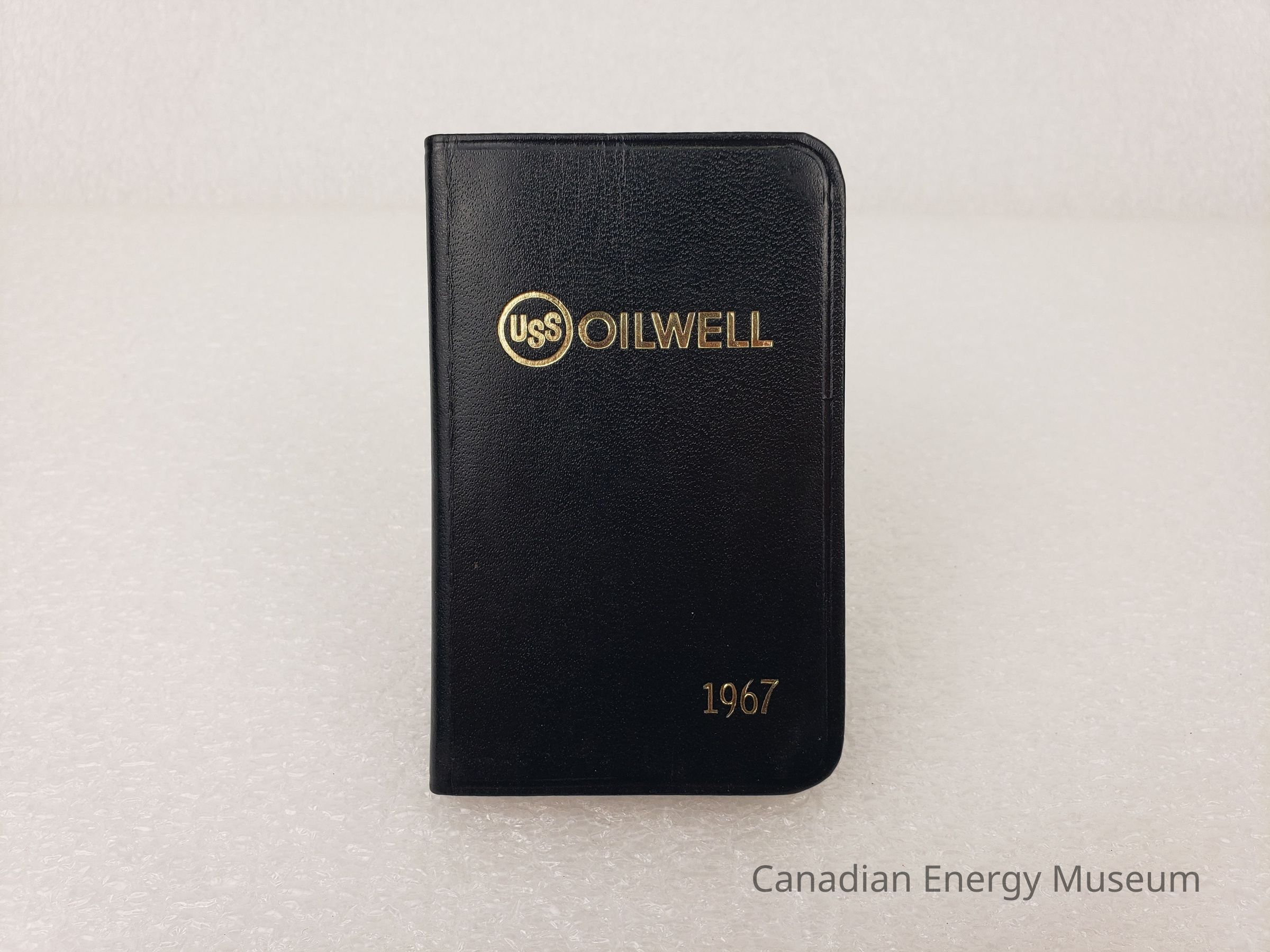 1950s, USS Oilwell, Oil, Oil Industry, Oil Well Supply Co., Promotional Item, Branded Stationery, Black, Gold, Planner, Booklet, Pocket Book, Pocket Calendar, Pocket Diary, Appointment Book, Paper, Plastic, United States Steel, USA, America, Calculations Table, Conversion Chart, Fishing Calendar, First Aid, HandwritingDescription