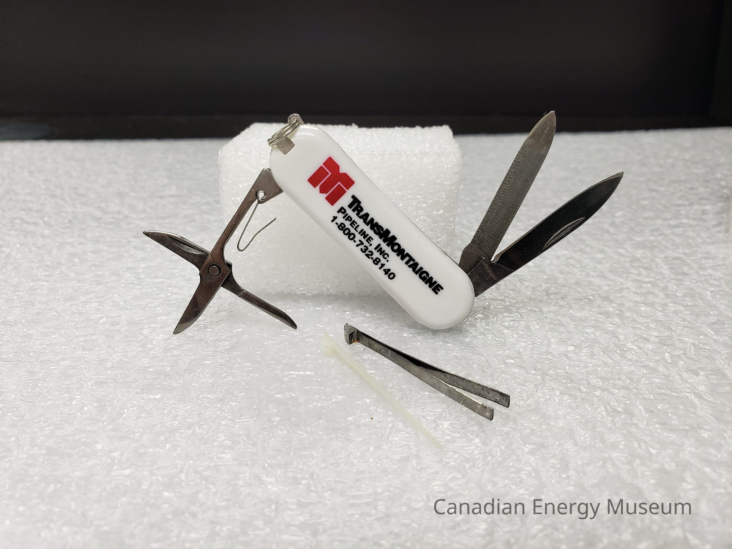 Knife, Pocket Knife, Blade, Tool, TransMontaigne Pipeline Inc., Plastic, Metal, Scissors, File, Tweezers, Toothpick, White, RedDescription