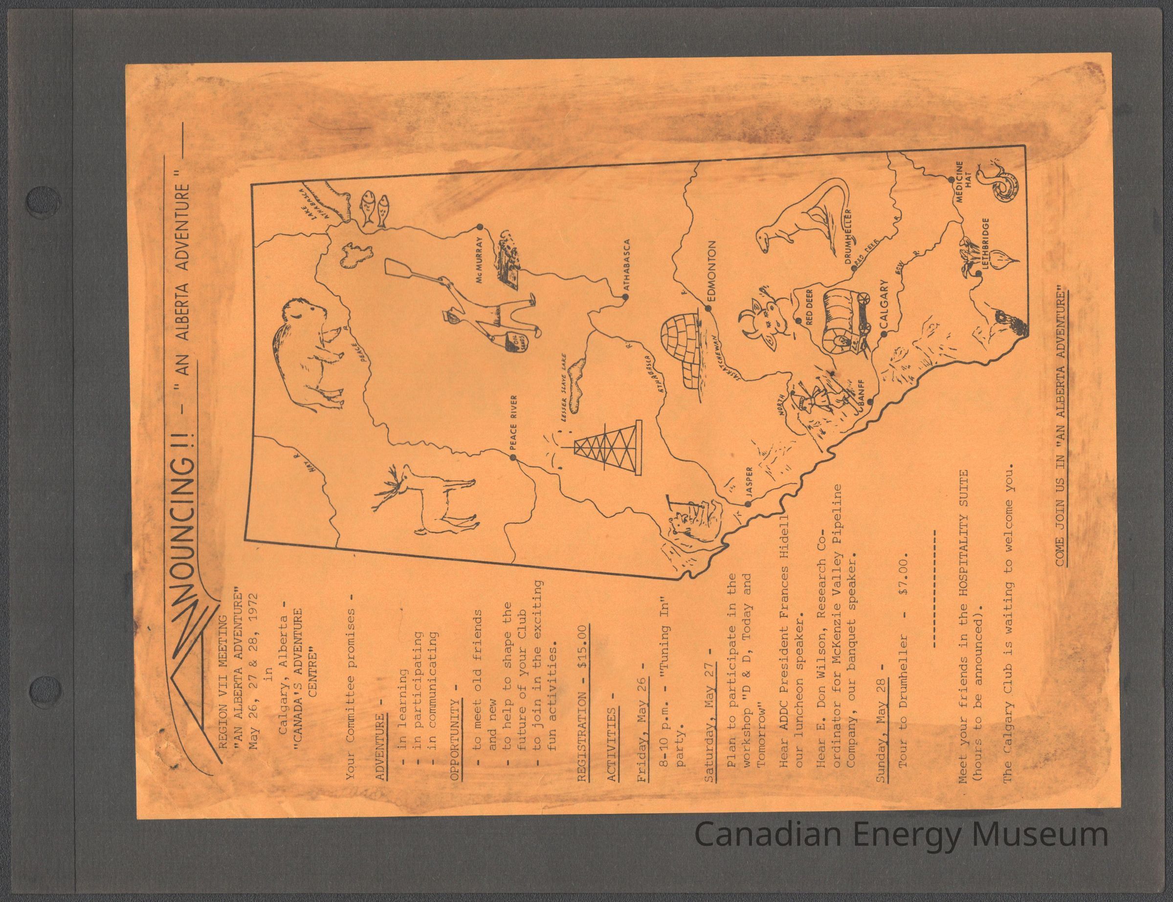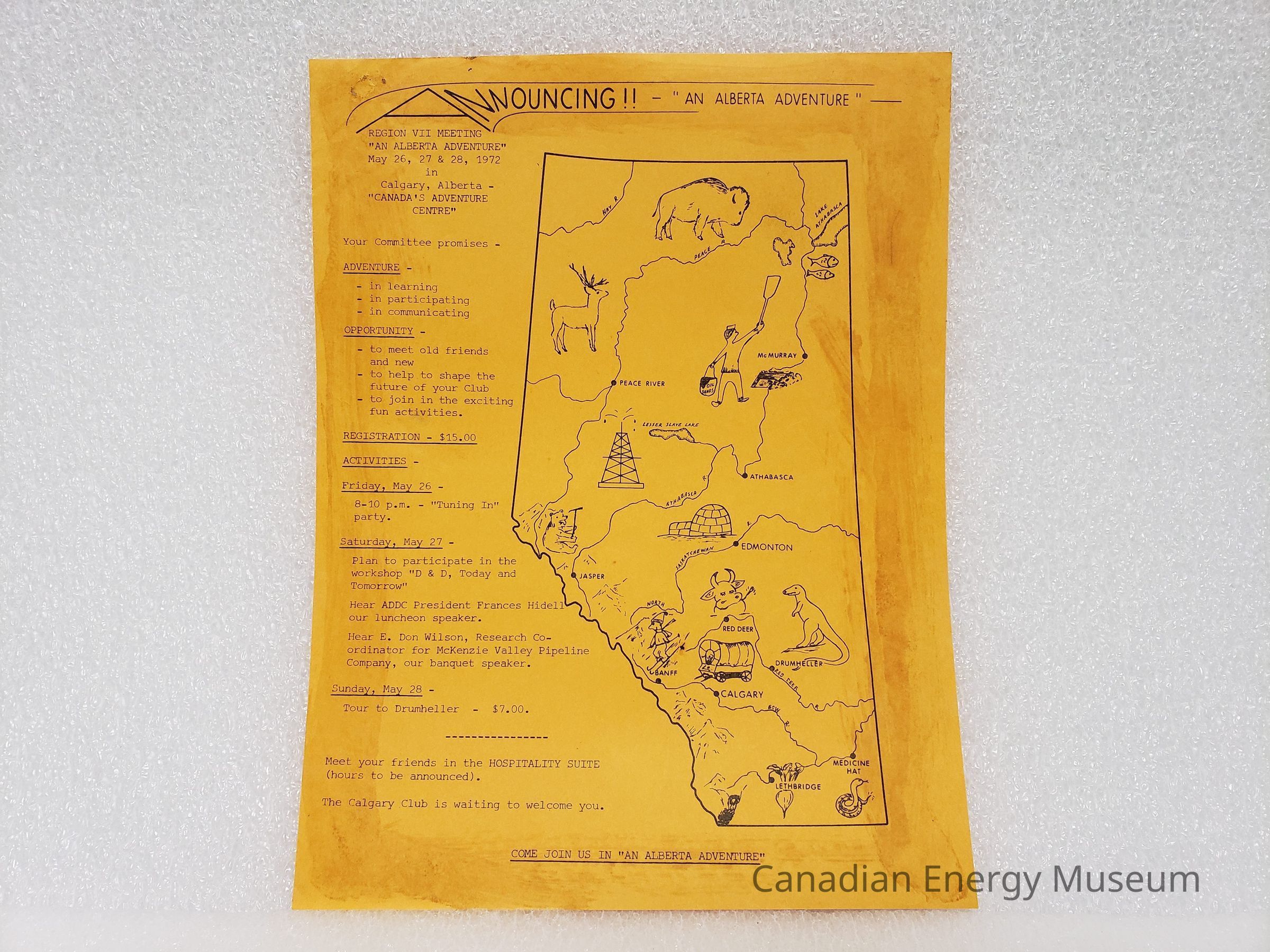 [Poster] Region VII Meeting "An Alberta Adventure", Association of Desk and Derrick Clubs, Yellow Printout, 26-28 May, 1972Entry/Object ID
