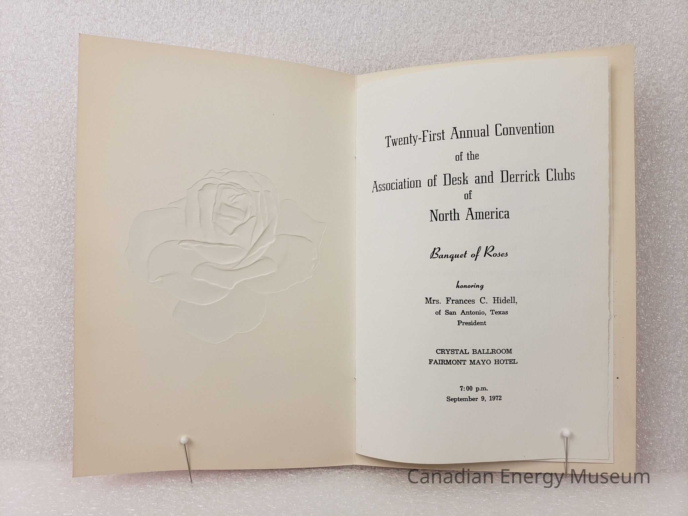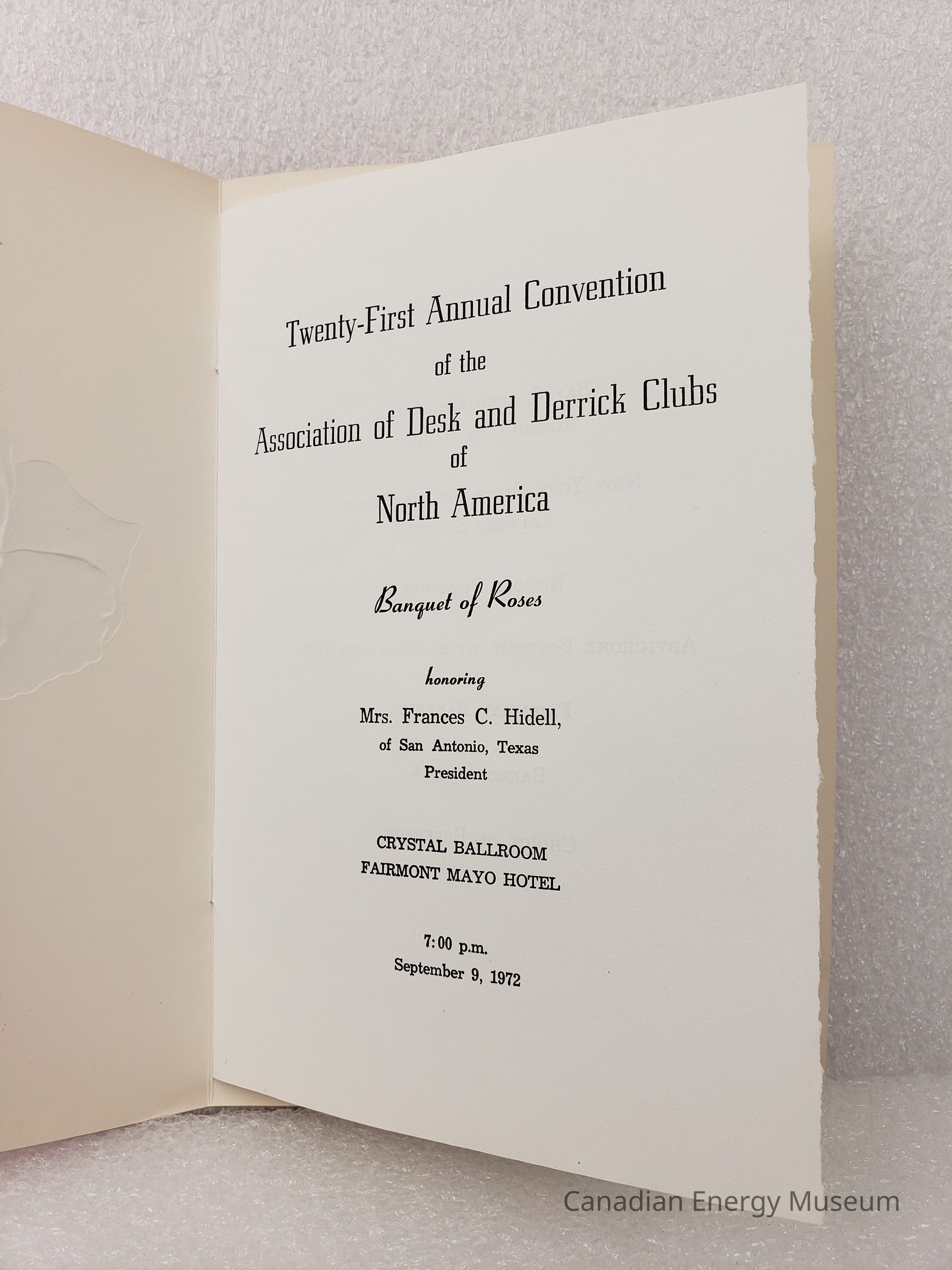 [Programme] Banquet of Roses, Crystal Ballroom, Fairmont Mayo Hotel, Association of Desk and Derrick Clubs, Tulsa Oklahoma, 9 September, 1972Entry/Object ID