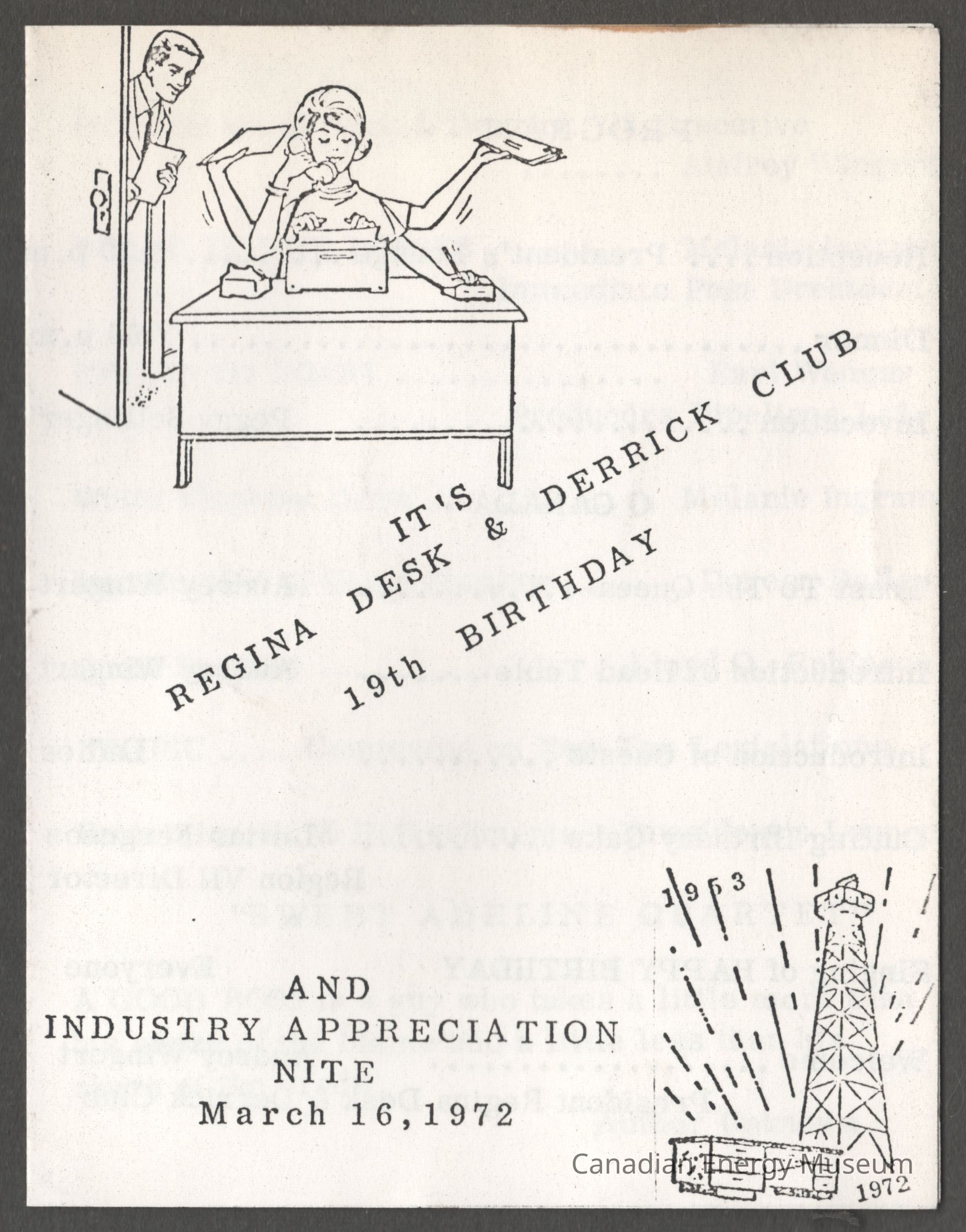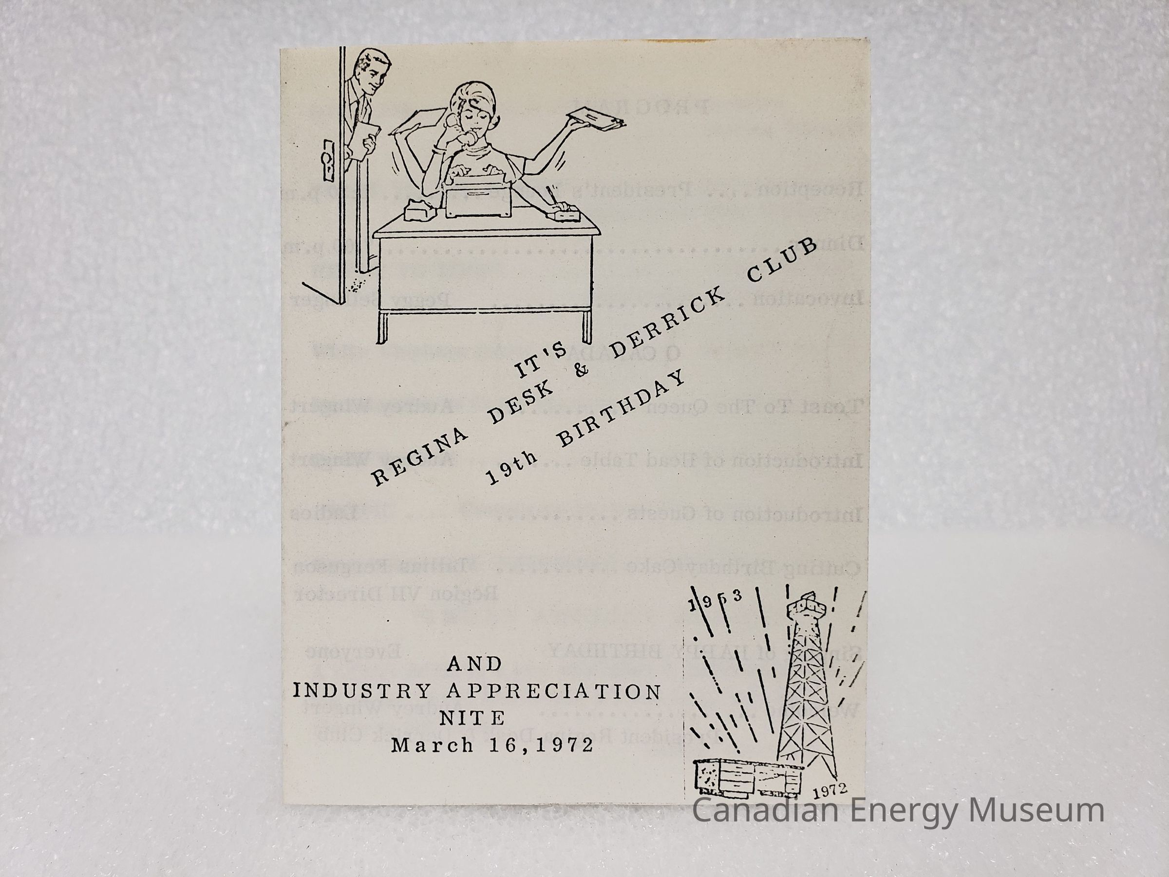 [Programme] Regina Desk and Derrick Club 19th Birthday and Indusyry Approcoation Note, 16 March, 1972Entry/Object ID