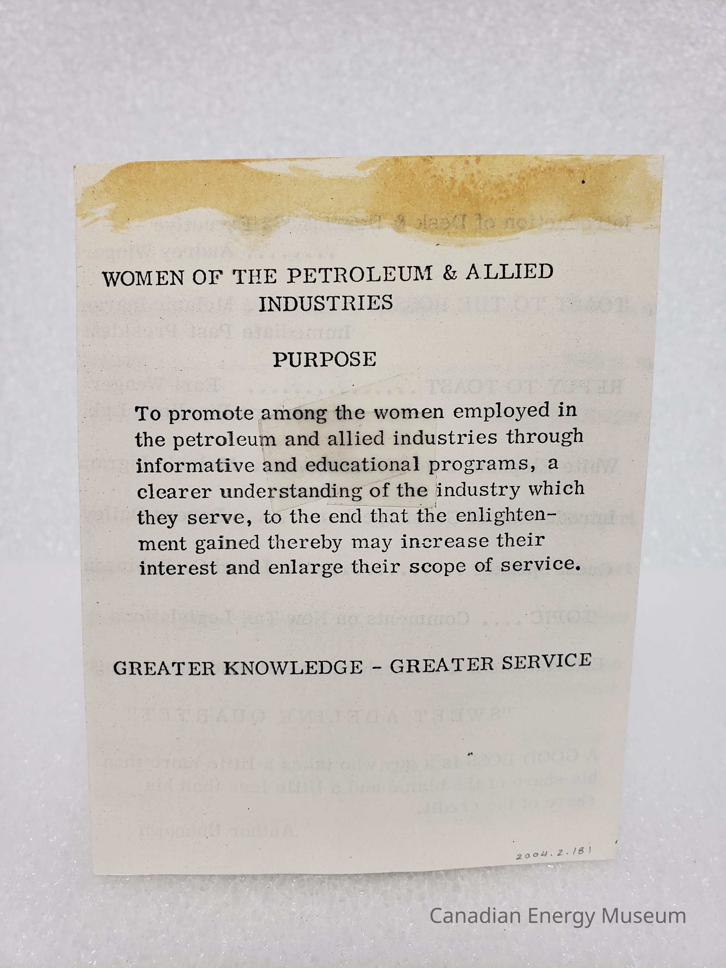 Part of a collection of objects scrapbooked in 1972 by Lillias Ferguson (2004.2.1).Collection