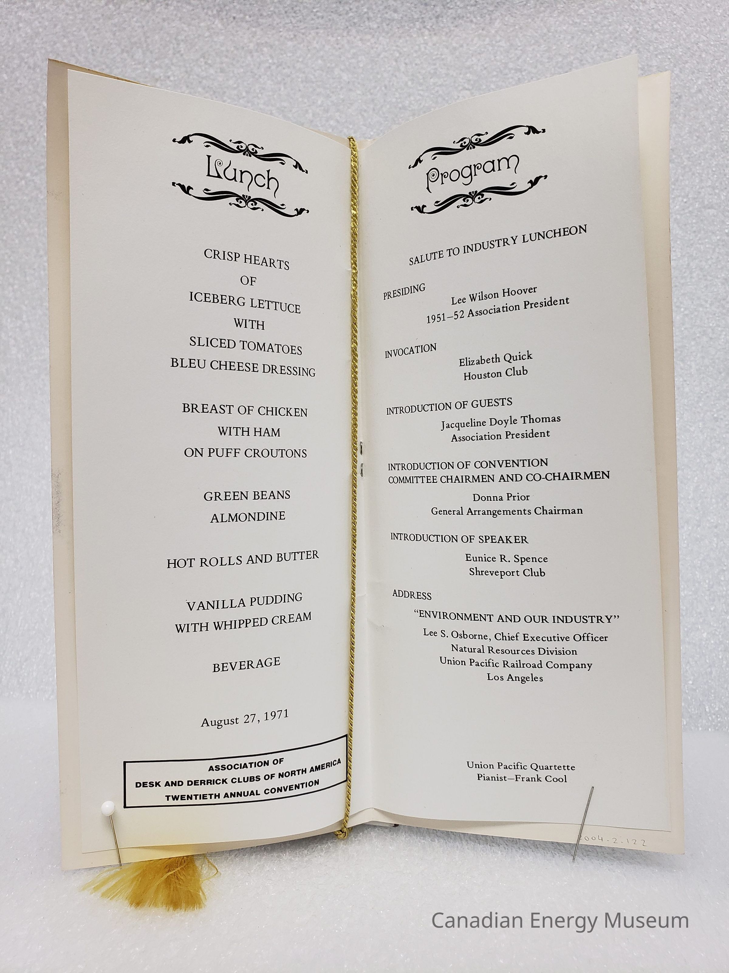 [Programme] Salute to Industry Luncheon, Association of Desk and Derrick Clubs, 20th Annual Convention, 27 August, 1971Entry/Object ID