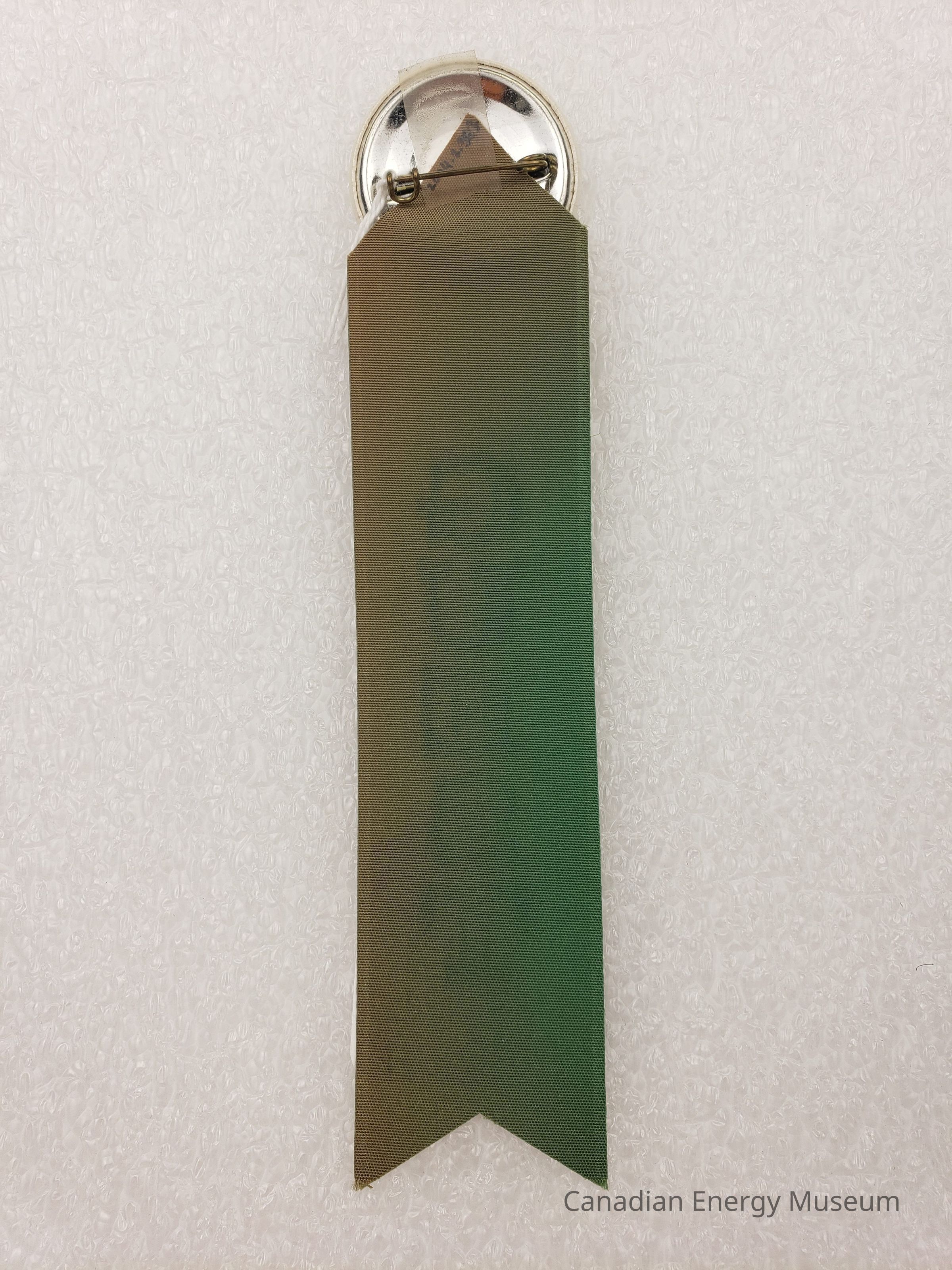 1970s, Pin, Ribbon, Textile, Green, Desk and Derrick Club, Women's Associations, Women's Group, Owl, Corsage, Pin-back ButtonDescription