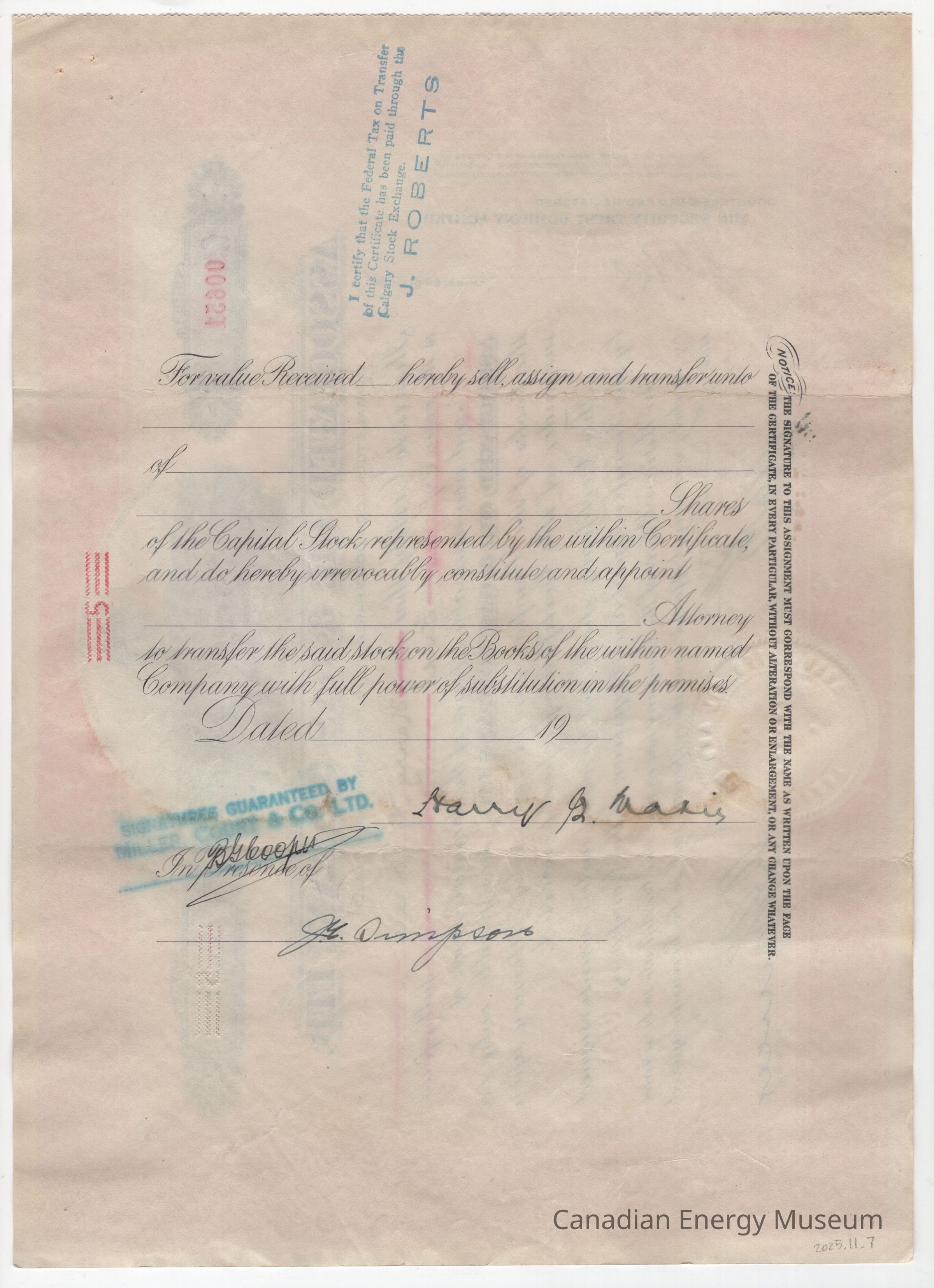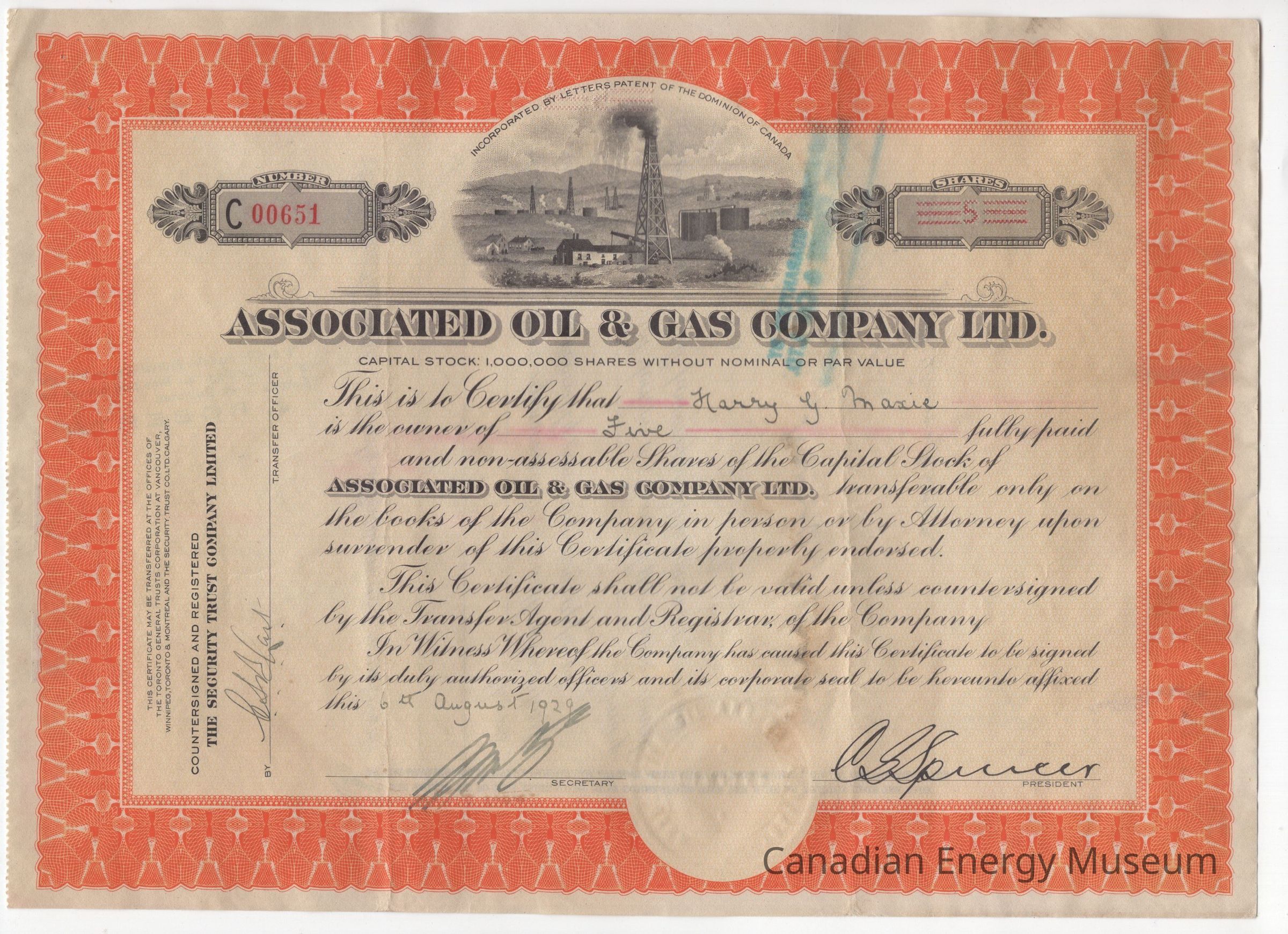 Share Certificate, Orange, Associated Oil & Gas Company Ltd., Certificate, 1920sDescription