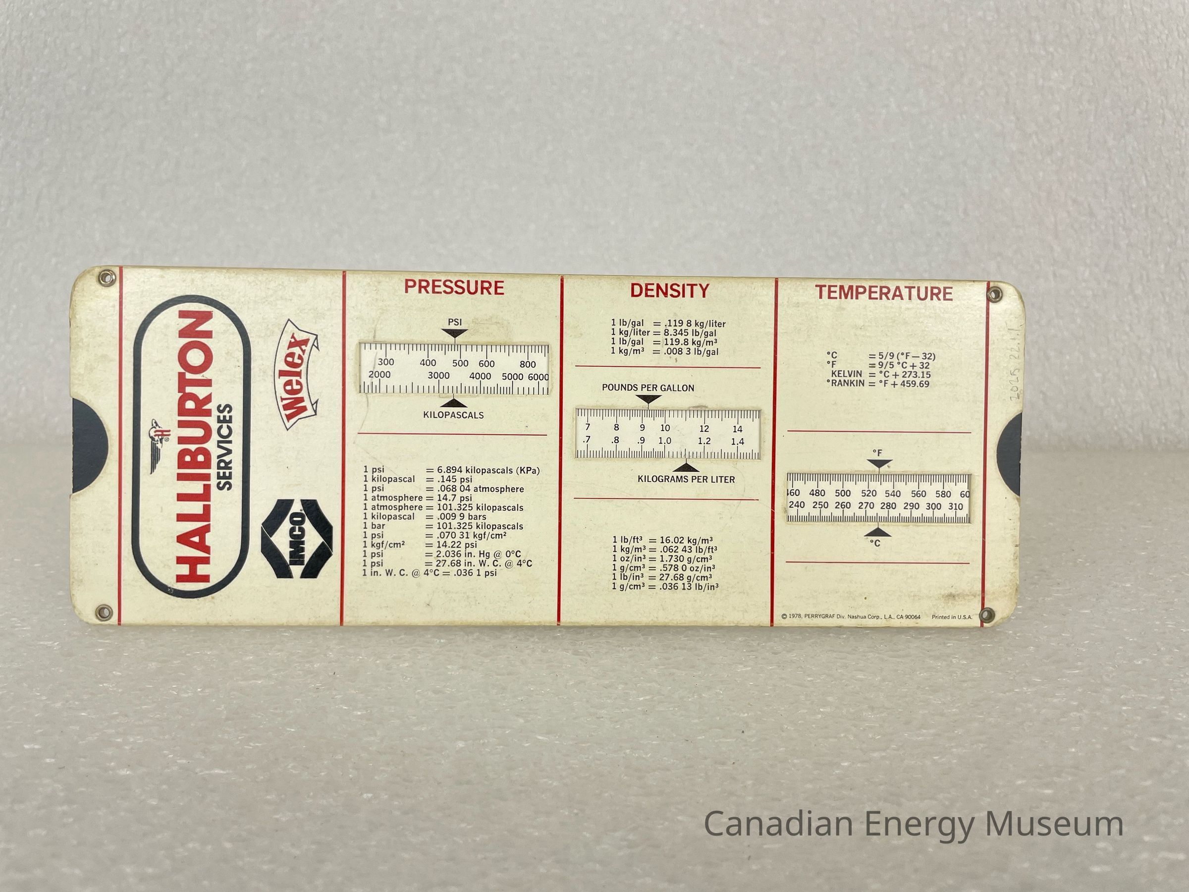 A cream coloured conversion slide chart branded to Halliburton Services.