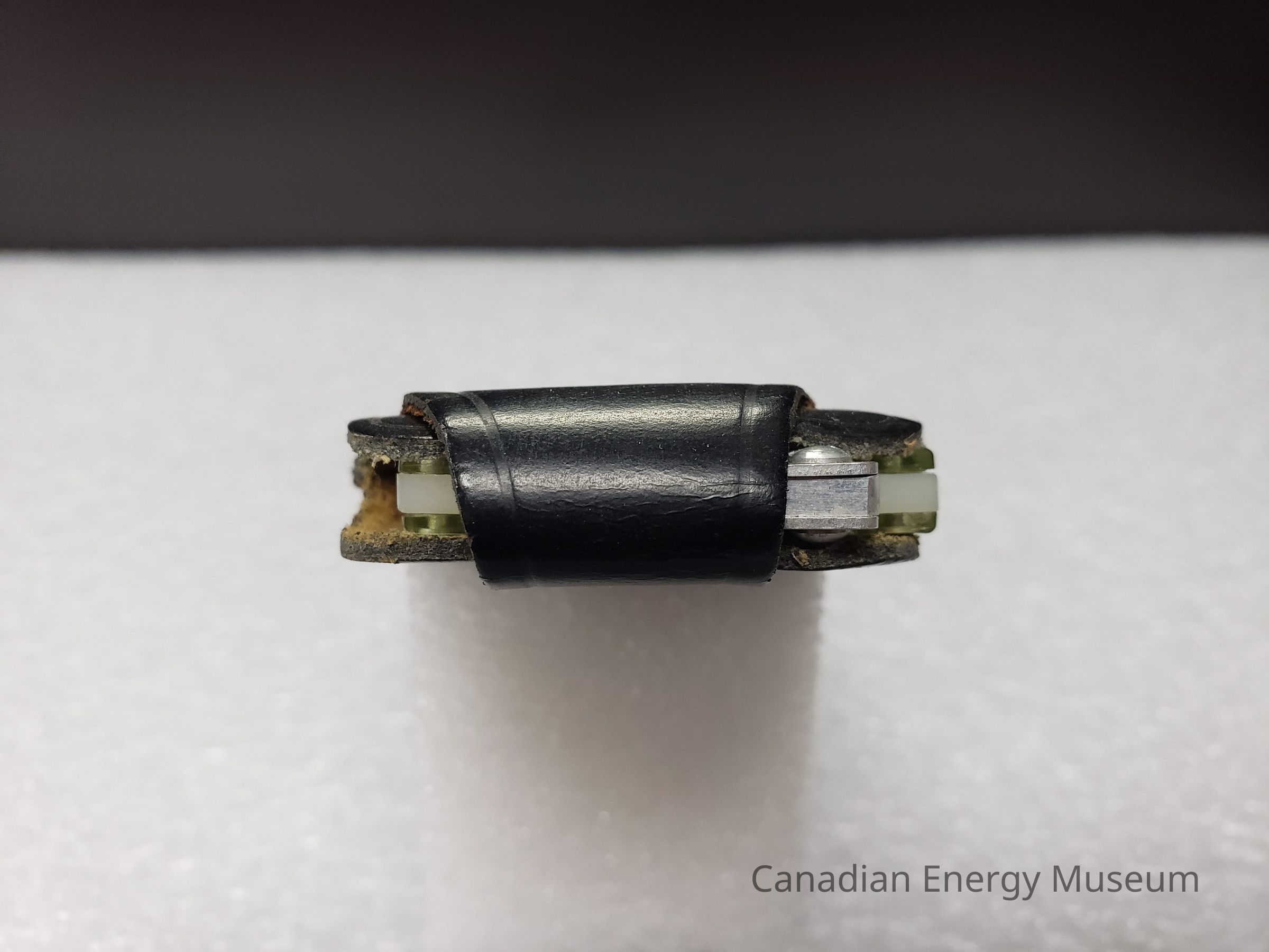 The print of "A. KOWALCHUK" is worn from handling, and has discoloured to green. Unclear what the original colour was, but it may have been gold.Materials