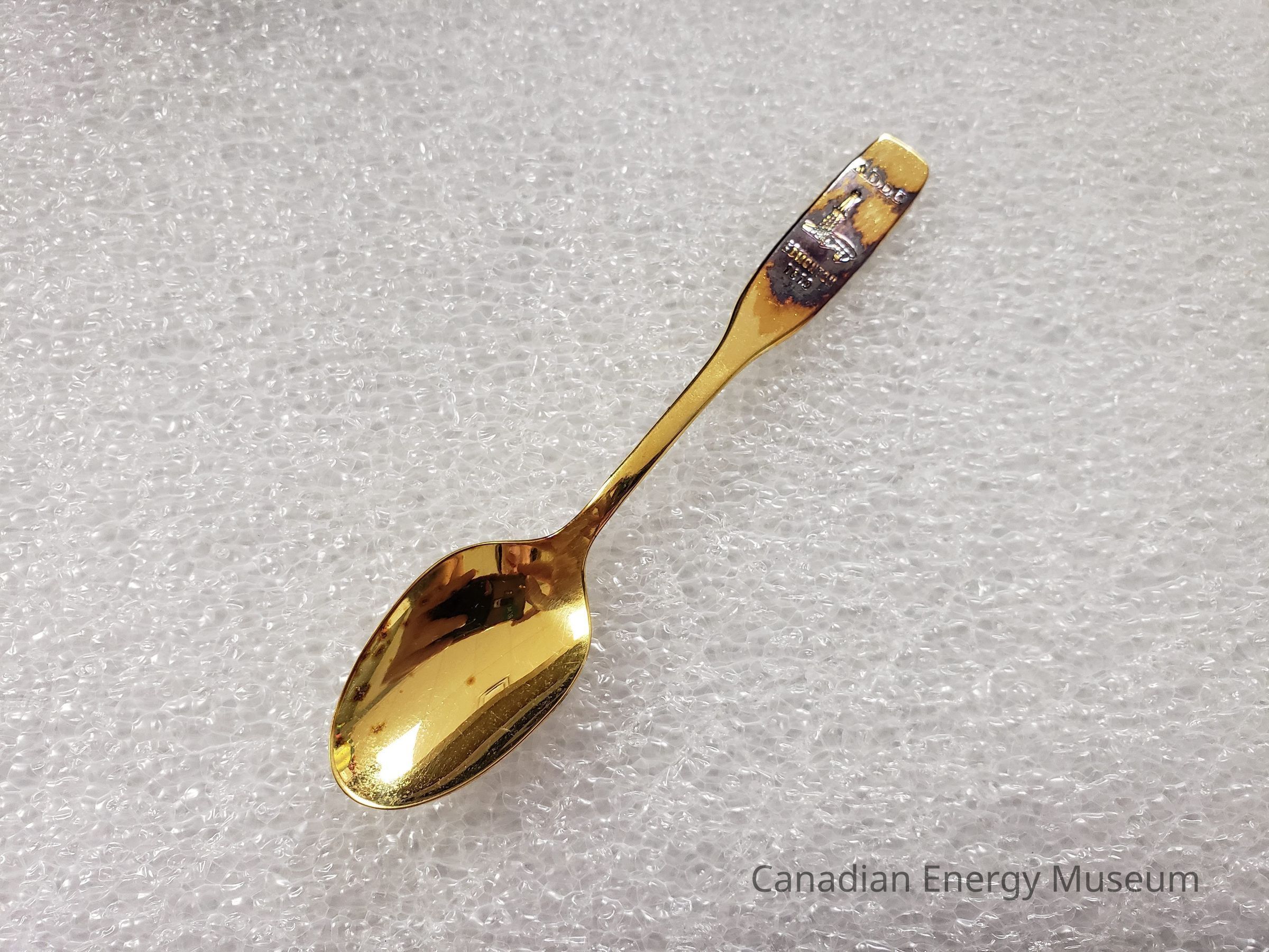1970s, Teaspoon, Spoon, Commemorative, Collectable, Desk and Derrick Club, Edmonton, Alberta, Gold, MetalDescription