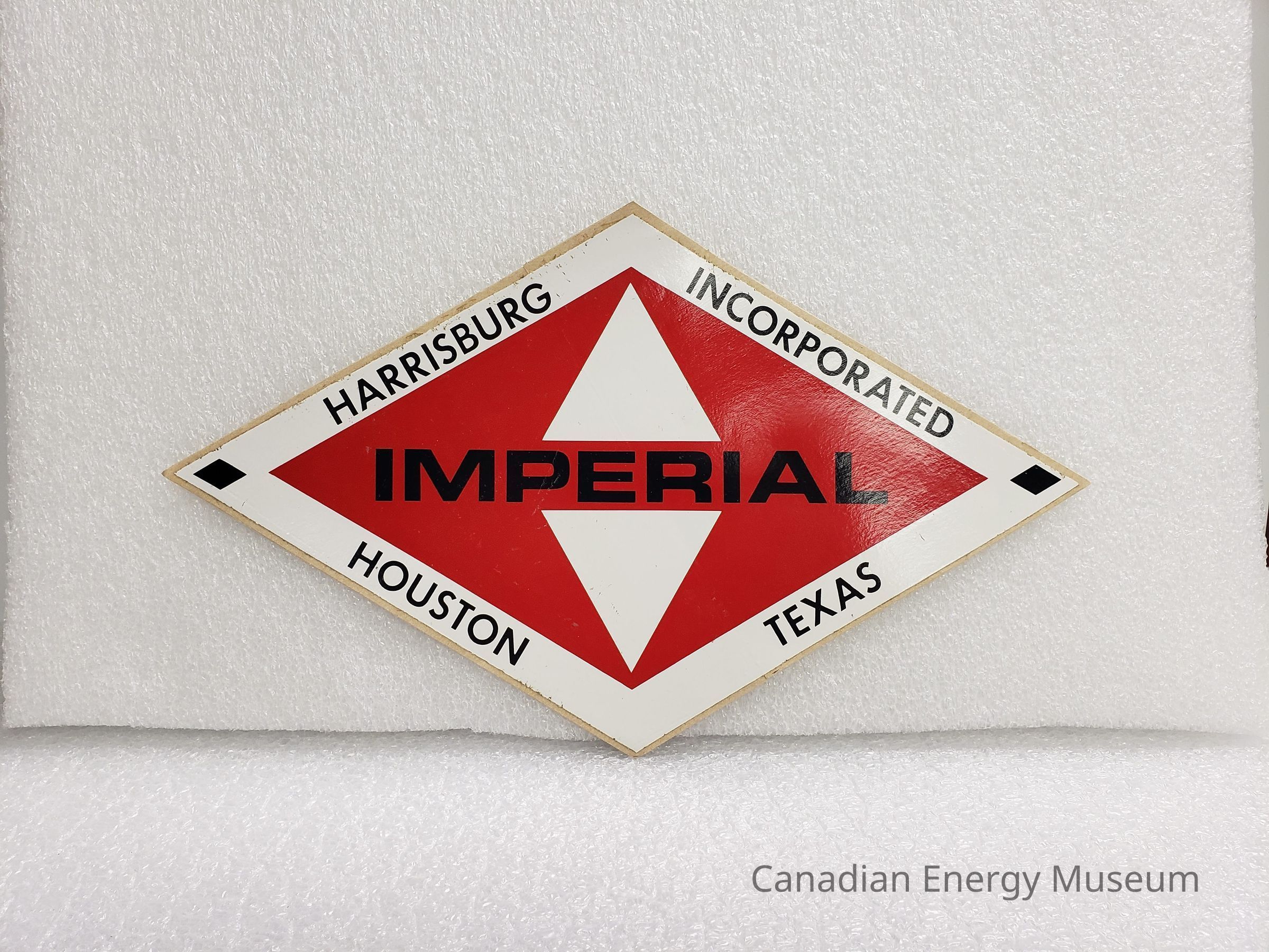 A large-sized diamond-shaped sticker/decal, branded to Imperial Harrisburg Inc. (Houston, Texas). White background, red fill, black text.Collection