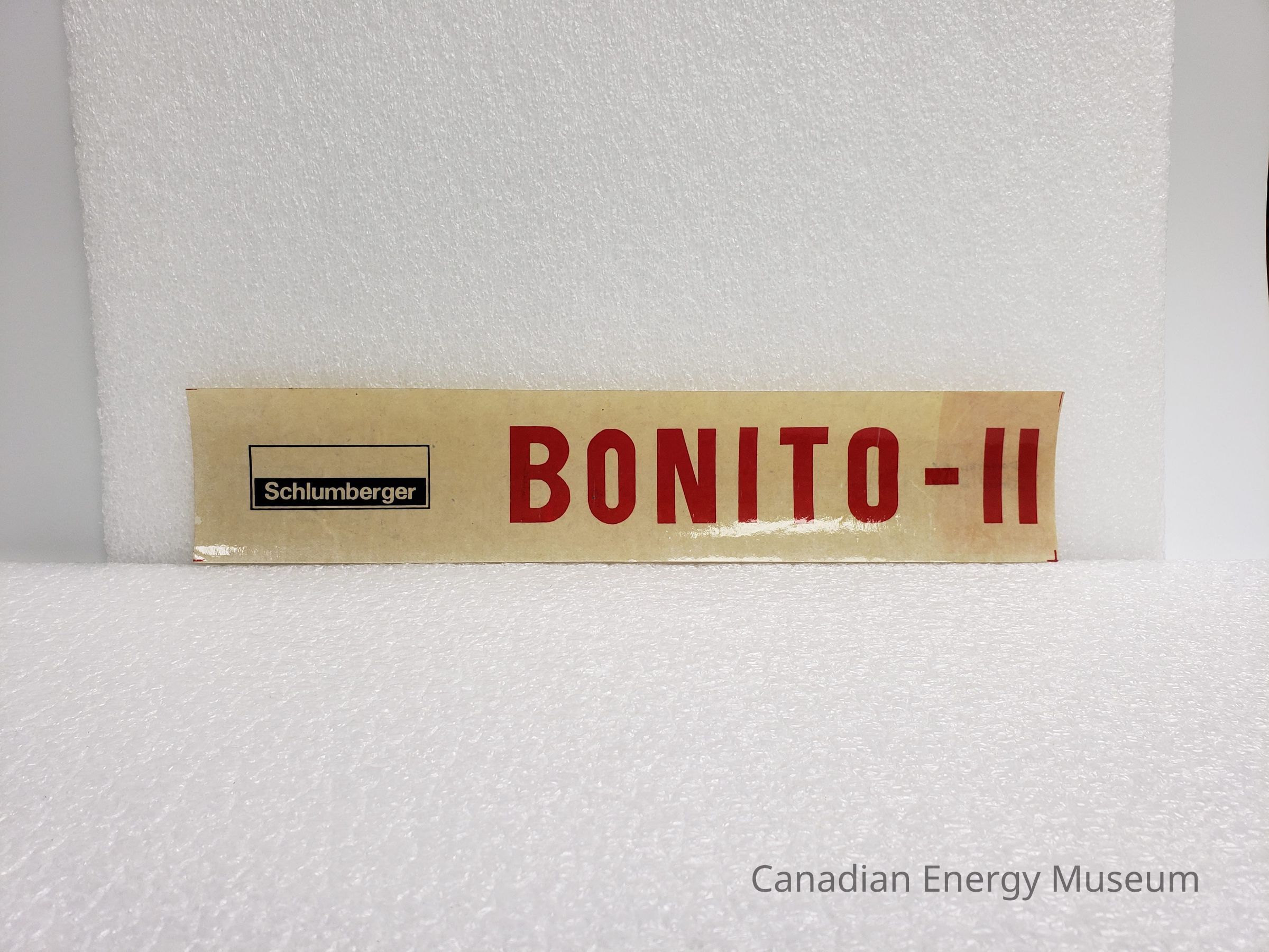 A large-sized rectangular sticker/decal, branded to Schlumberger, with text "BONITO-II". White backgrounds, with red text and black logo.Collection