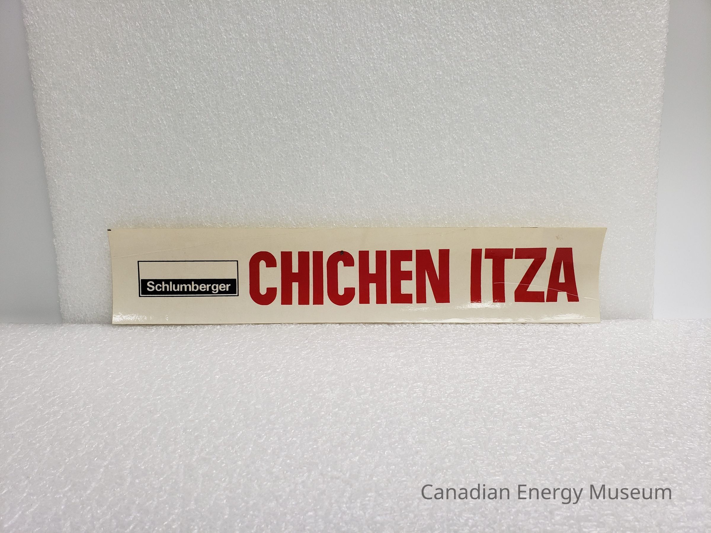 A large-sized rectangular sticker/decal, branded to Schlumberger, with text "CHICHEN ITZA". White backgrounds, with red text and black logo.Collection