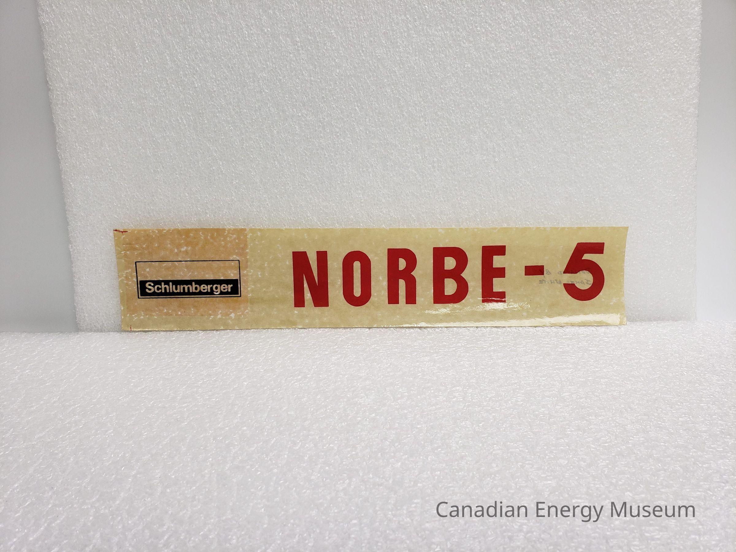 A large-sized rectangular sticker/decal, branded to Schlumberger, with text "NORBE-5". White backgrounds, with red text and black logo.Collection