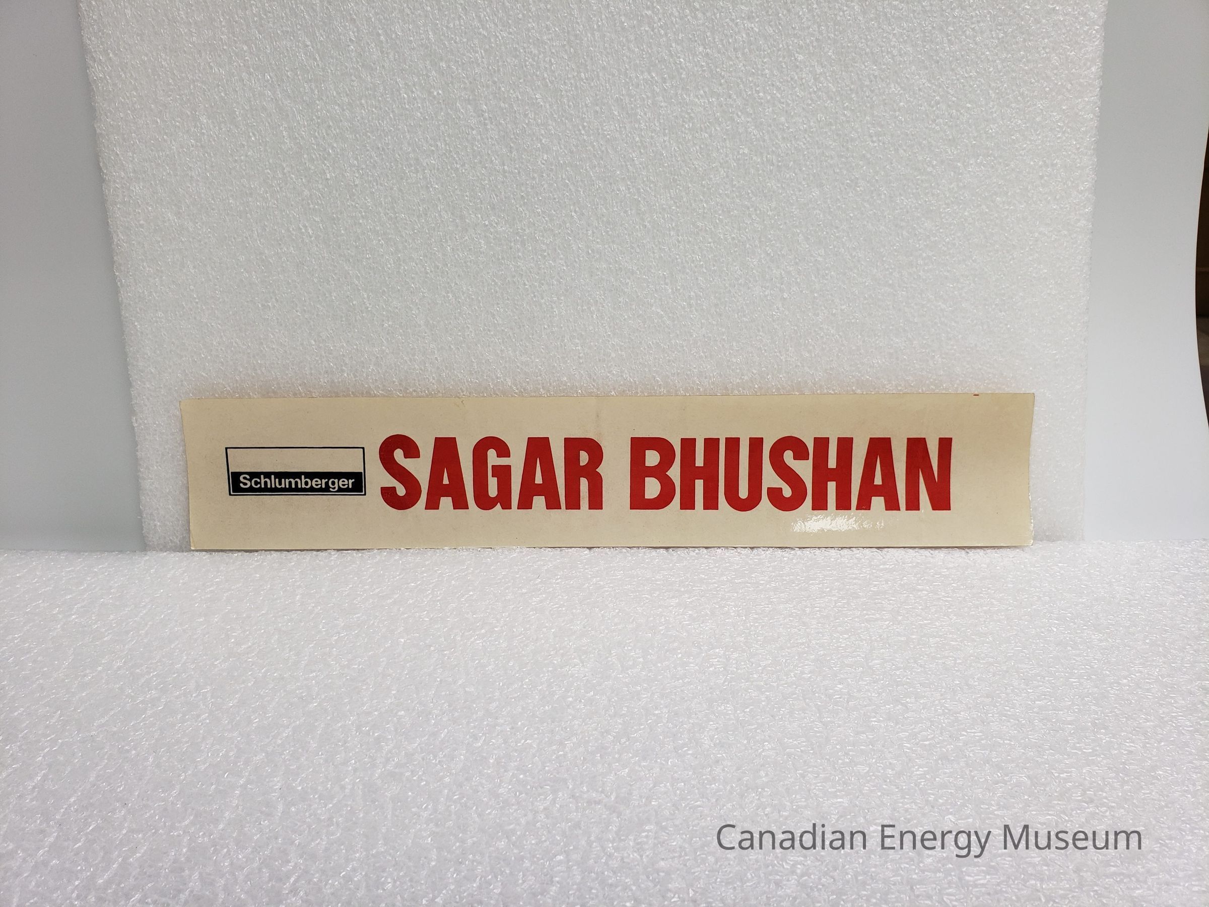 A large-sized rectangular sticker/decal, branded to Schlumberger, with text "SAGAR BHUSHAN". White backgrounds, with red text and black logo.Collection