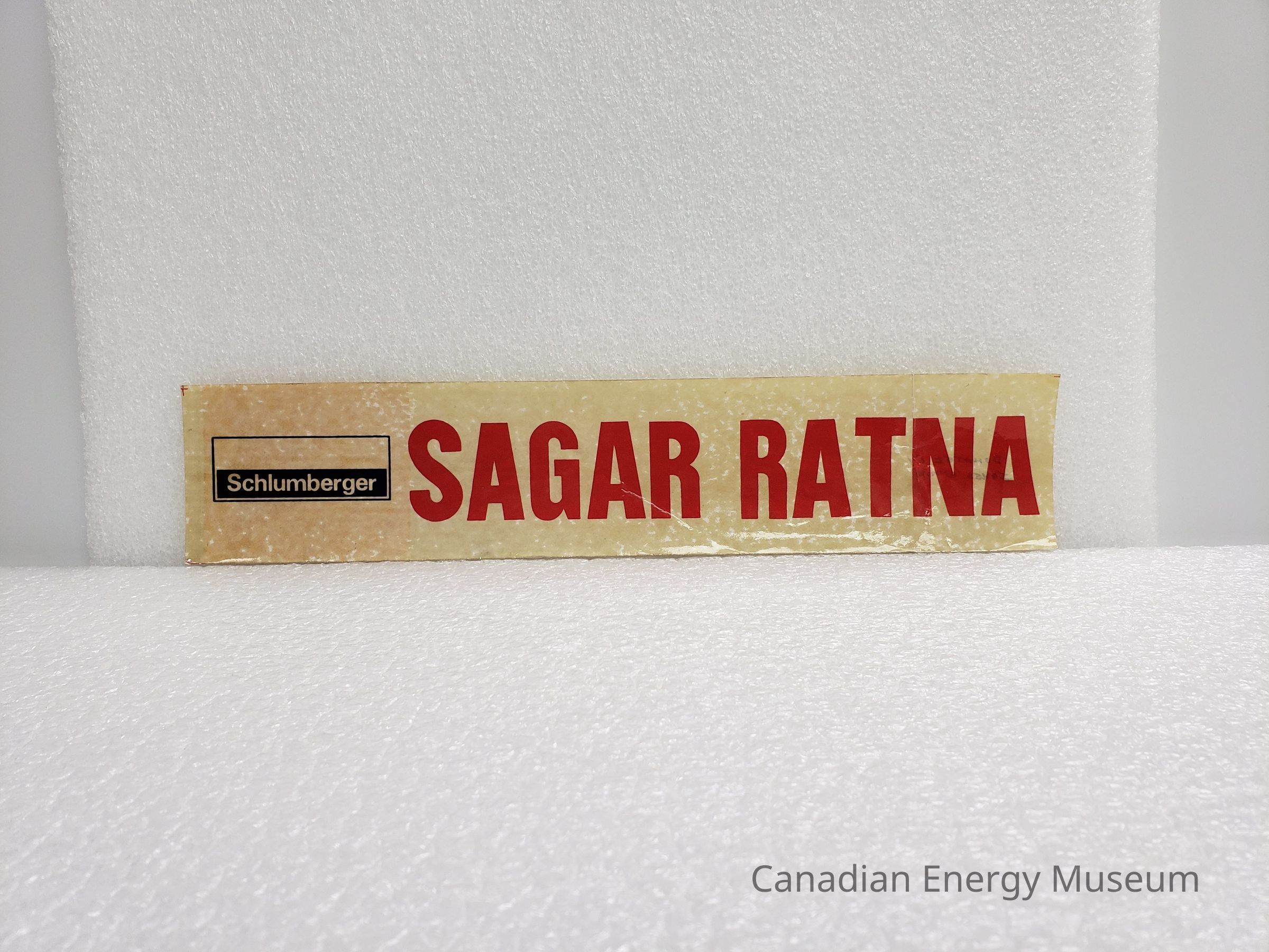 A large-sized rectangular sticker/decal, branded to Schlumberger, with text "SAGAR RATNA". White backgrounds, with red text and black logo.Collection