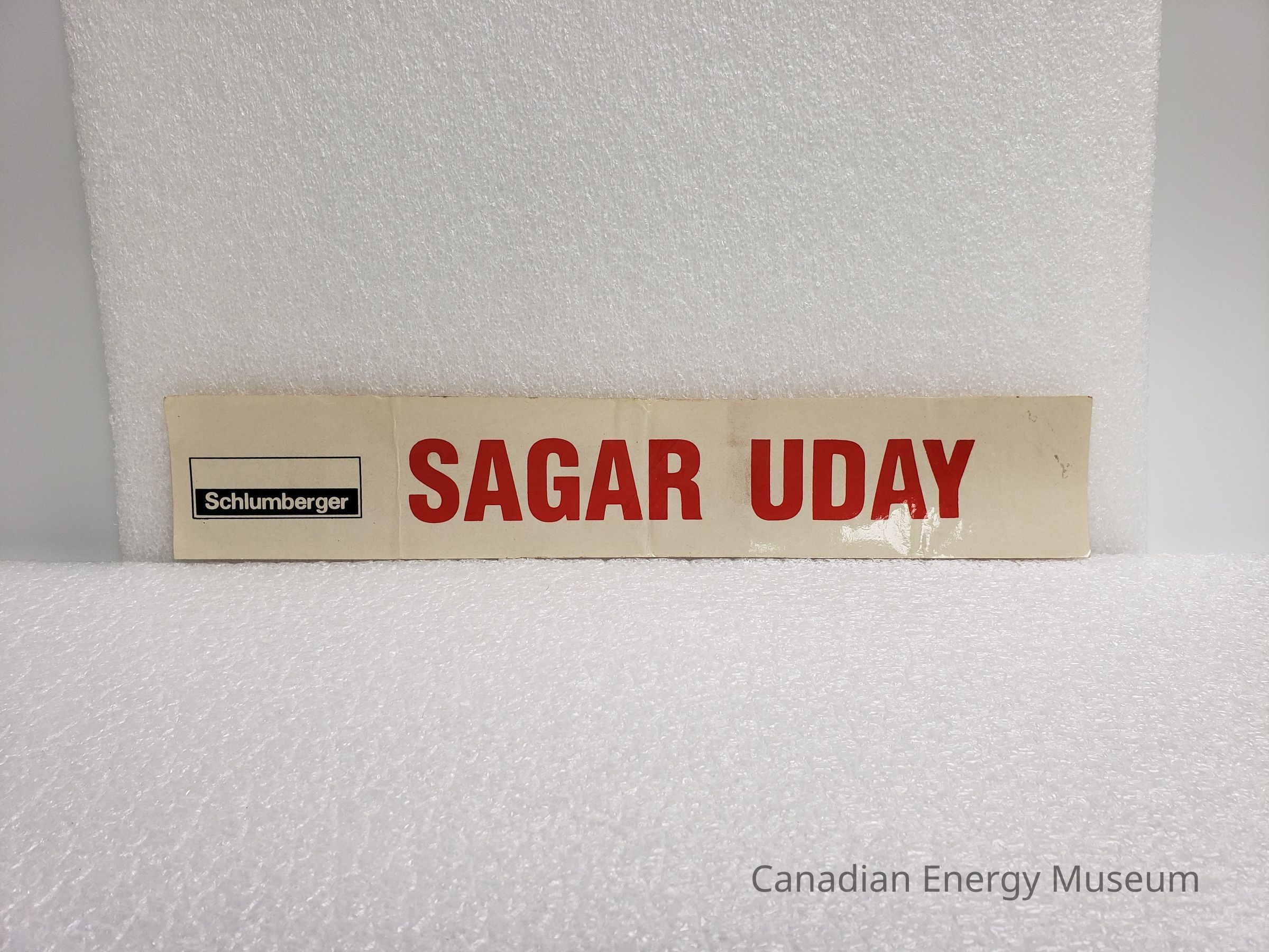 A large-sized rectangular sticker/decal, branded to Schlumberger, with text "SAGAR UDAY". White backgrounds, with red text and black logo.Collection