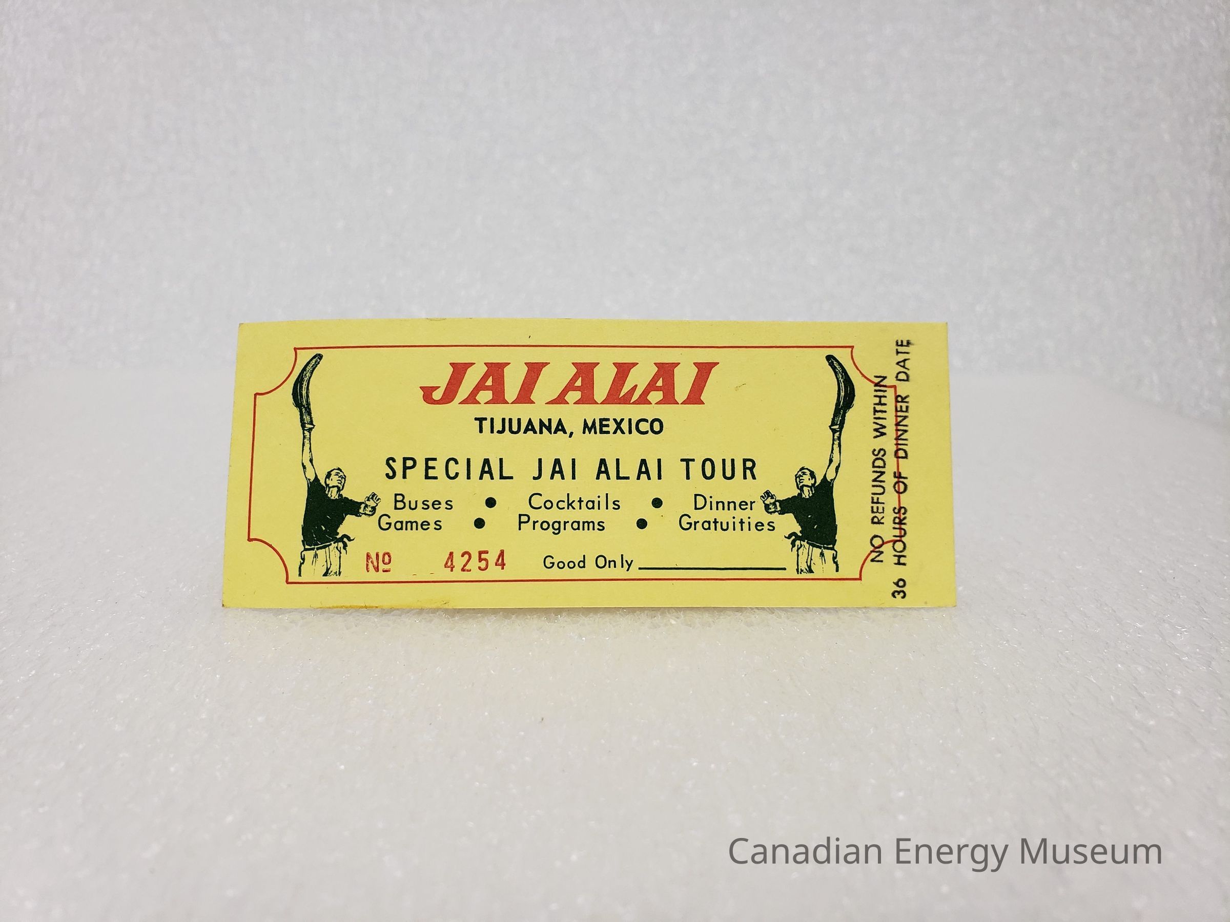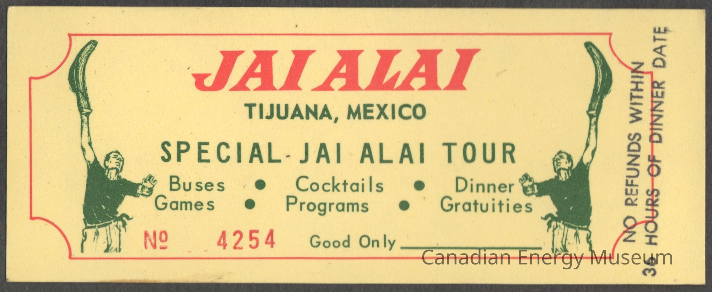 [Ticket] Special Jai Alai Tour, Tijuana Mexico, Yellow, c.1971Entry/Object ID