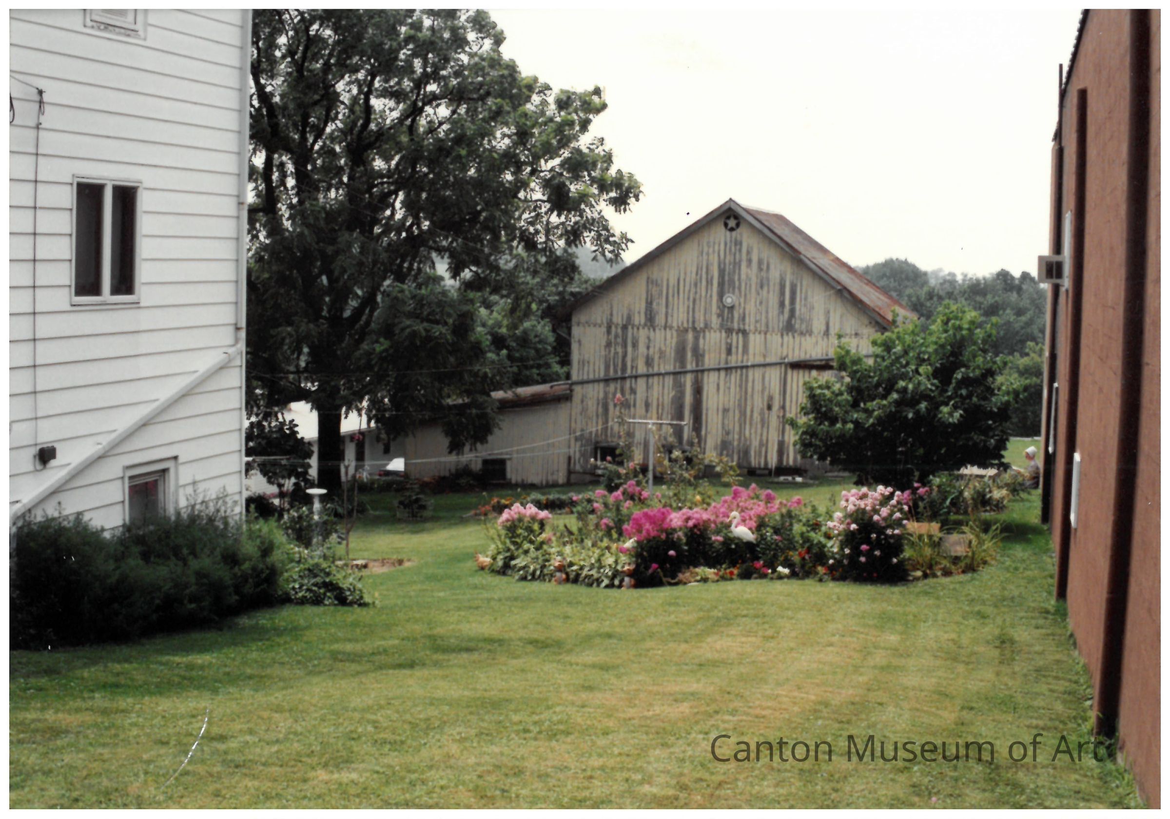 Corning’s watercolor depicts an Amish garden in Sugar Creek in Canton, Ohio. Though Corning lived in Solvang, California, he was in Ohio in 1989 for an exhibit of his work here at the Canton Museum of Art titled "Gameday." While visiting, he stopped with museum staff to see some sights of Ohio that he found captivating for his future paintings, such as this Amish Garden.
