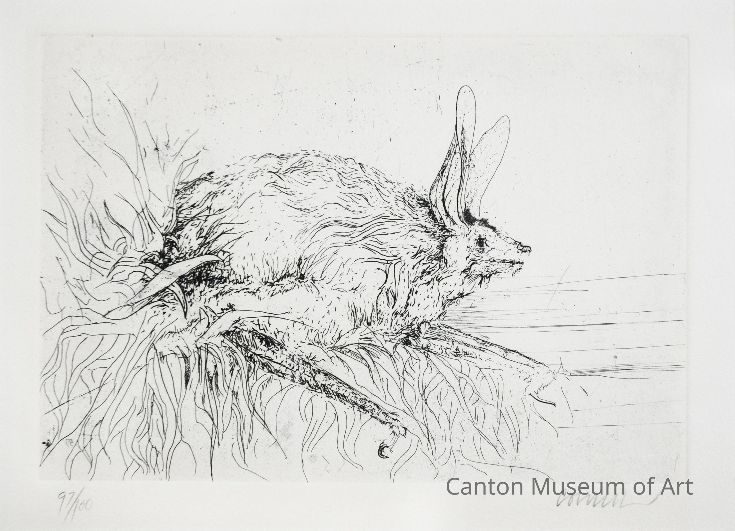 "Bat" is an etching made in 1959 while Cornell was in his final months at Amherst College or the summer thereafter. Just before "Bat" was made, Cornell produced a fine arts book, "The Monkey," which depicted etchings of primates. Both "Bat" and "The Monkey" etchings came from Cornell's passion to see nature closely. The idea of learning about the natural world and its complexities was important to Cornell. He believed from the start that art was not just decorative. Cornell’s art, what he thought crucial for our time, was humankind’s dependency on nature, our need to care for it, and each other. He used art to inspire an emotional response to nature’s beauty and to confirm the environment as essential to a flourishing society. He said: