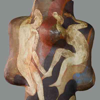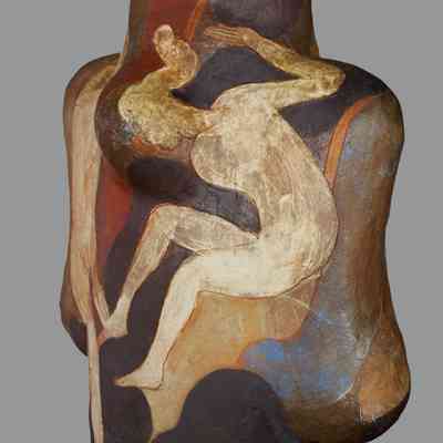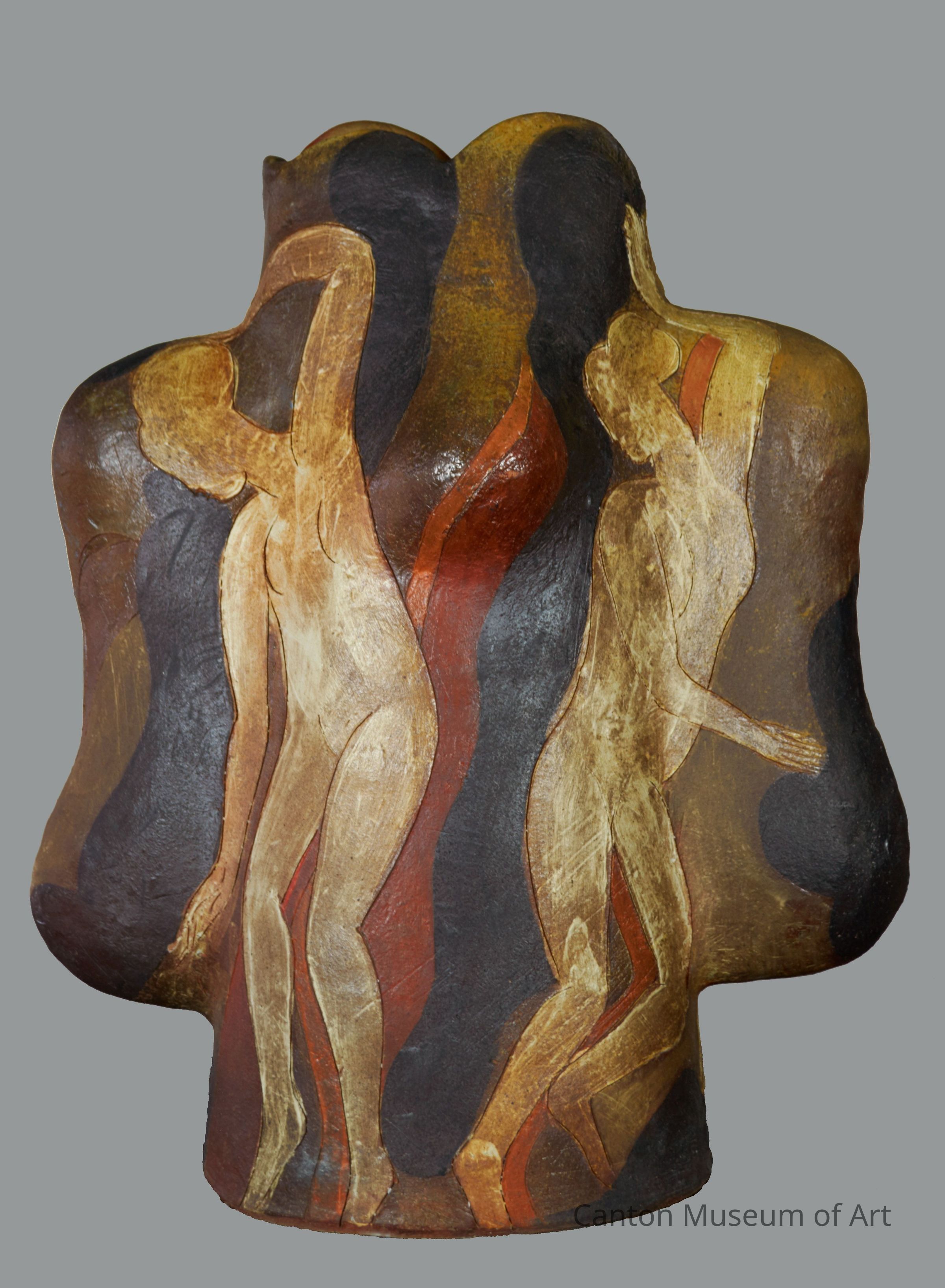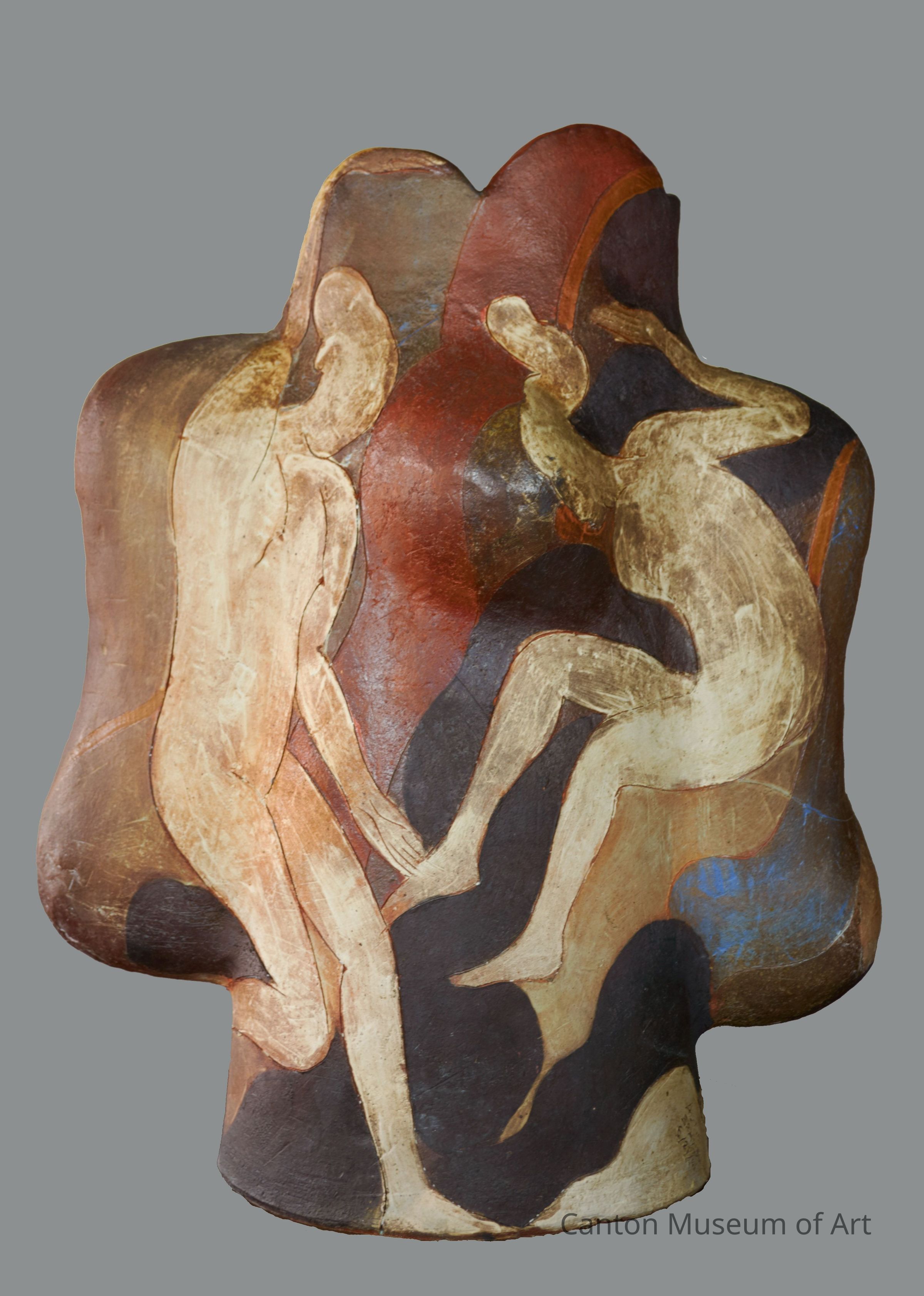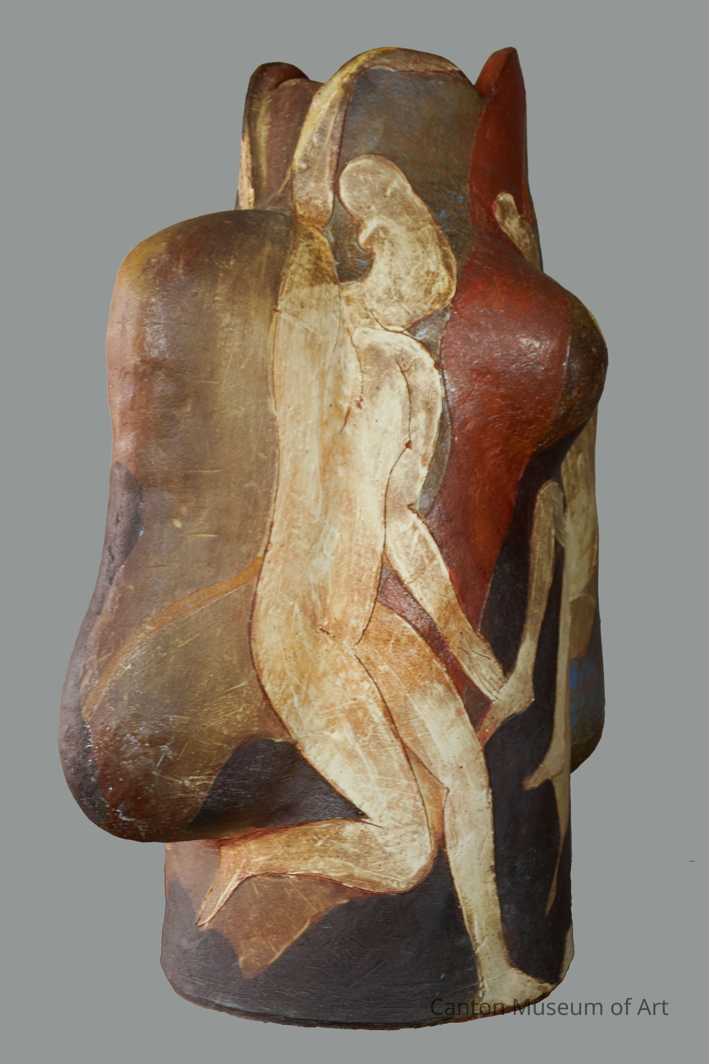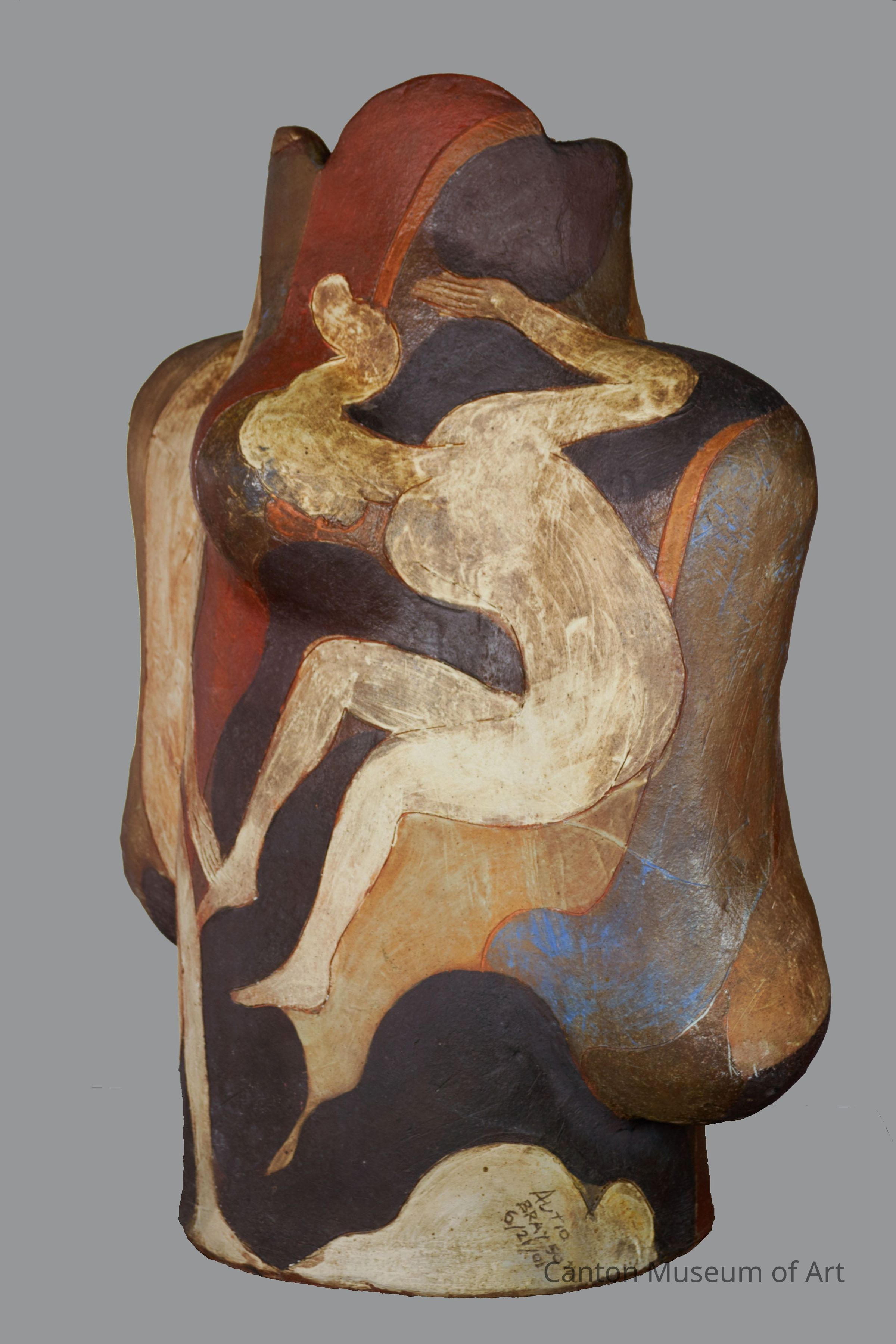 Benediction was made during Archie Bray’s 50th anniversary in 2001, titled “Clay Odyssey.” Autio was one of the artists invited to participate. The piece was later wood fired at Lubrecht nearby, then fired again in Autio’s electric kiln. The piece was never exhibited before coming to the Canton Museum of Art.
